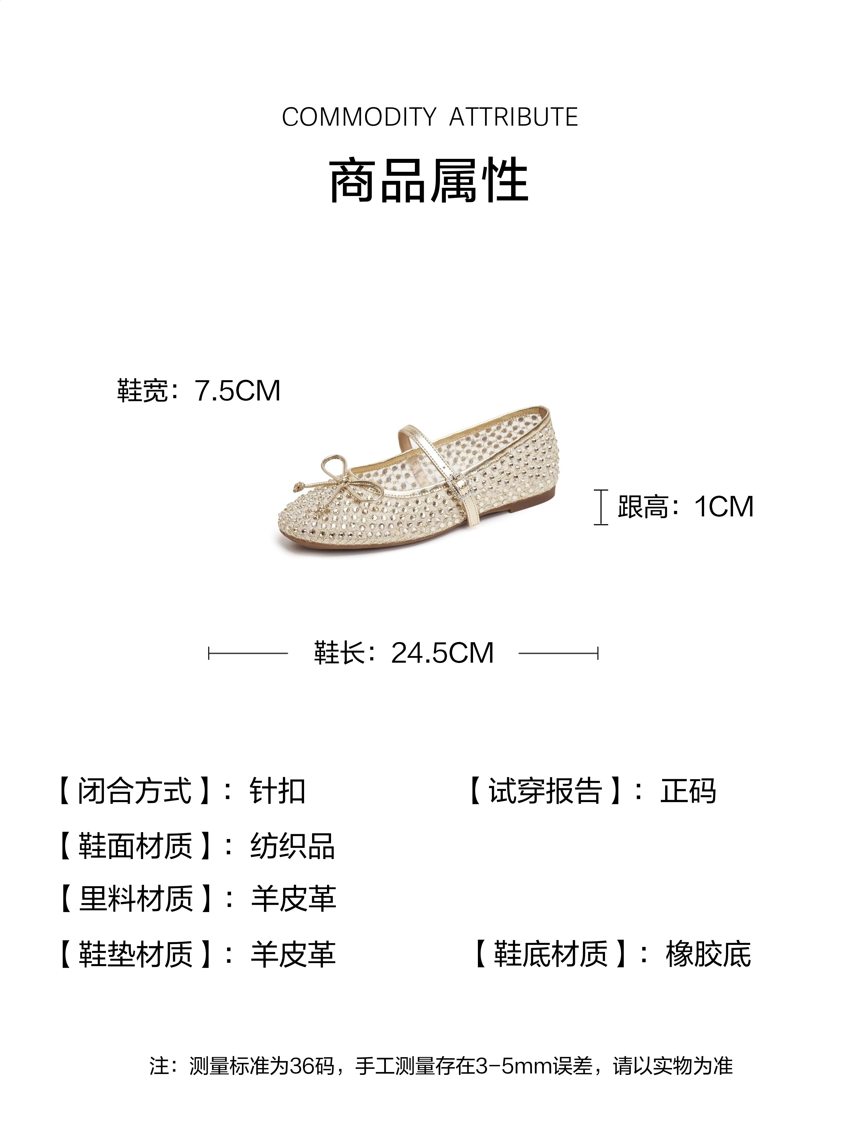 | 色系:金色 | 跟高数值:1CM | 配跟:无 | 性别:女子 | 里料材质:羊皮革 |
