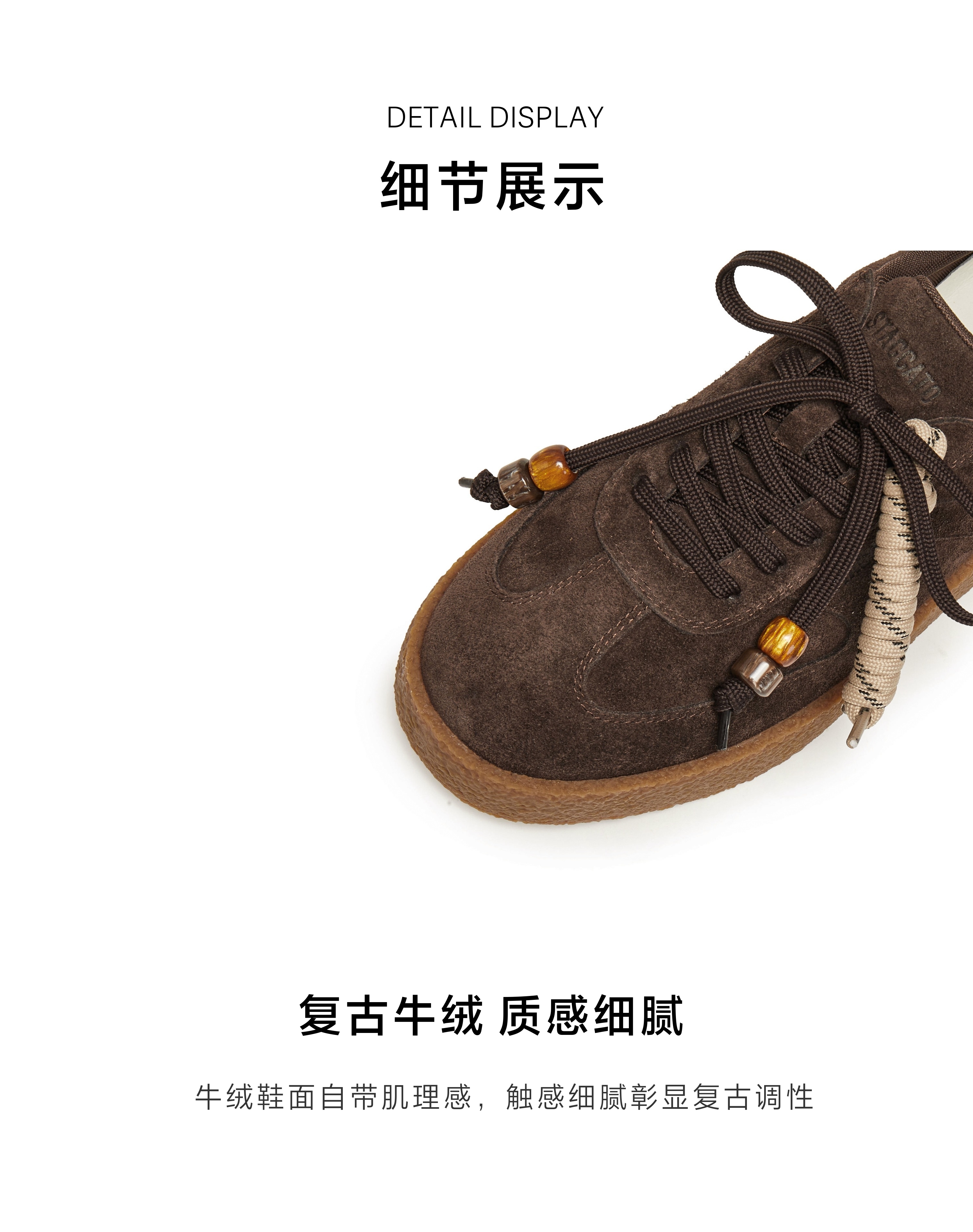 | 鞋面材质:牛剖层革 | 流行元素:串珠 | 参考鞋长(女):25.5CM | 参考鞋宽(女):10CM | 闭合方式:系带 |