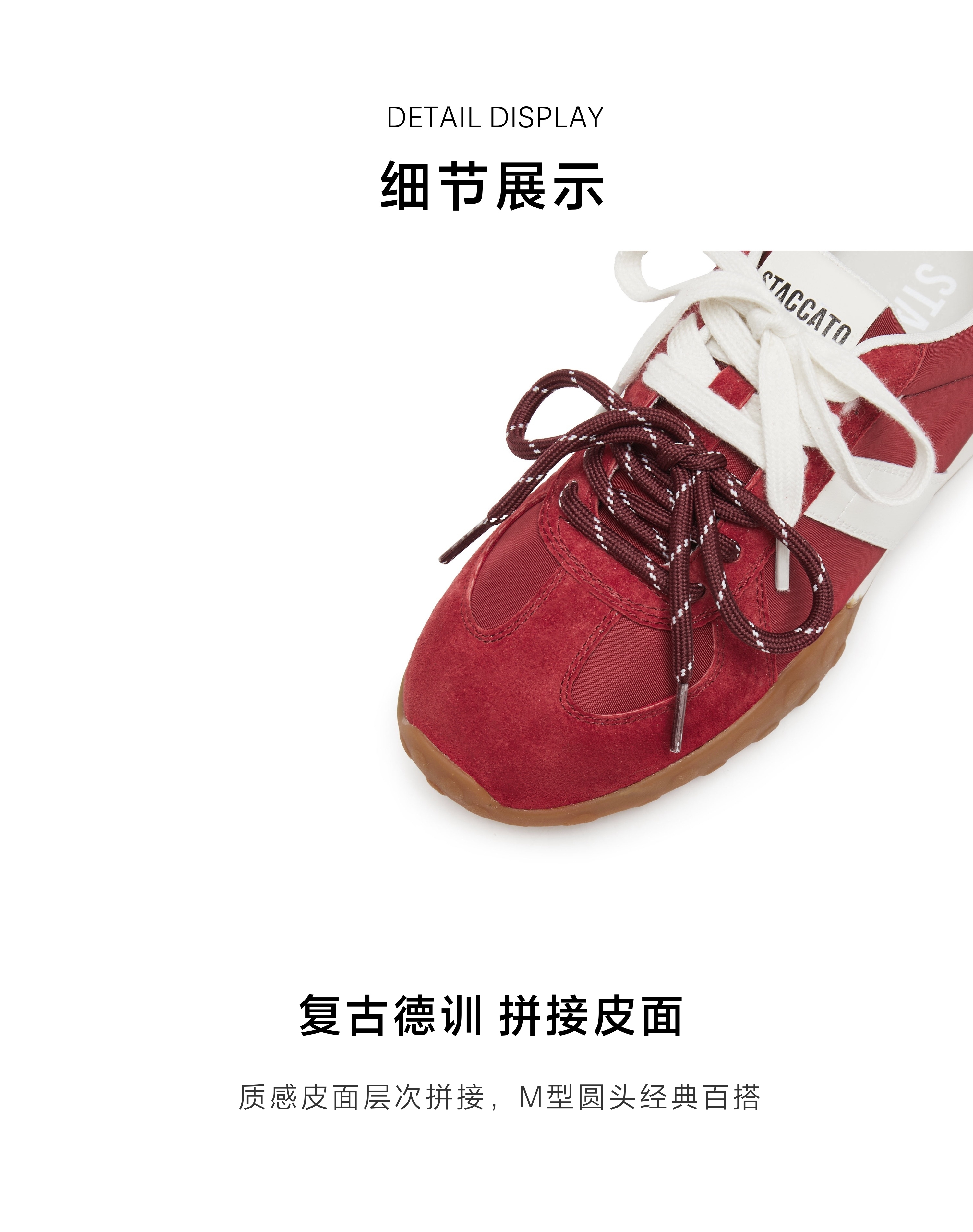 | 闭合方式:系带 | 风格:时尚潮流 | 色系:红色 | 跟高数值:2CM | 配跟:无 |