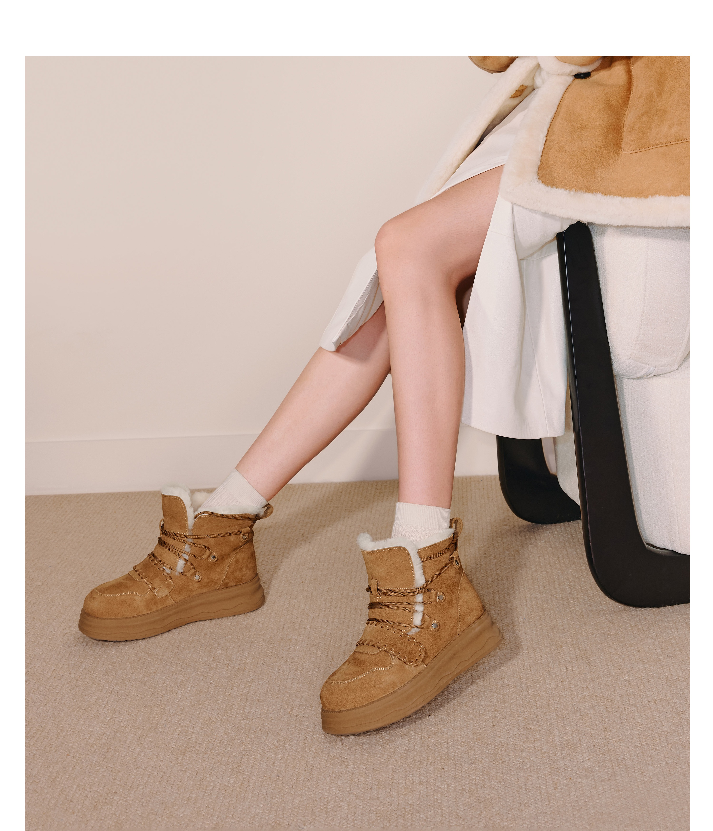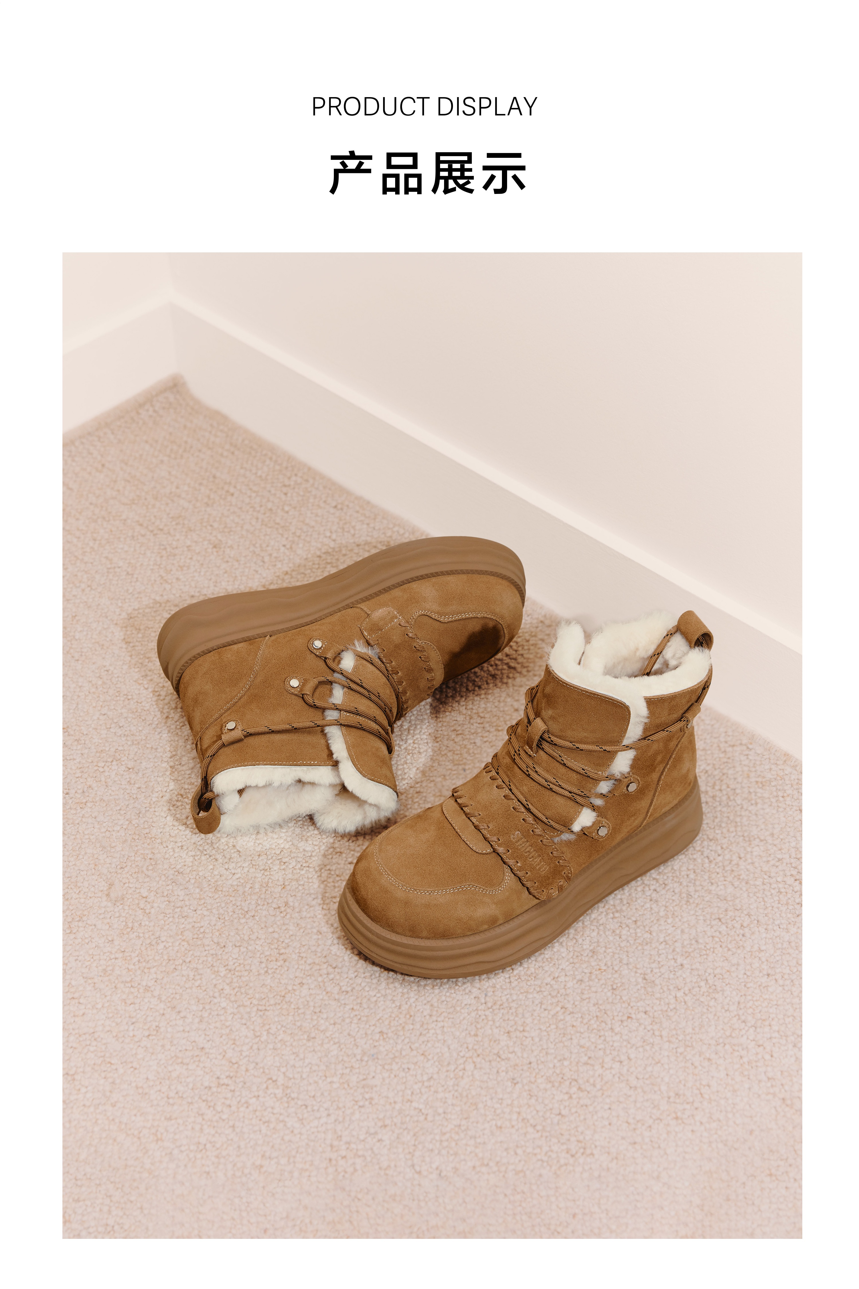 | 帮面材质:牛剖层革 | 配跟:无 | 靴筒口围:27CM | 上市时间:2025年冬季 | 鞋类流行款式:雪地靴 |