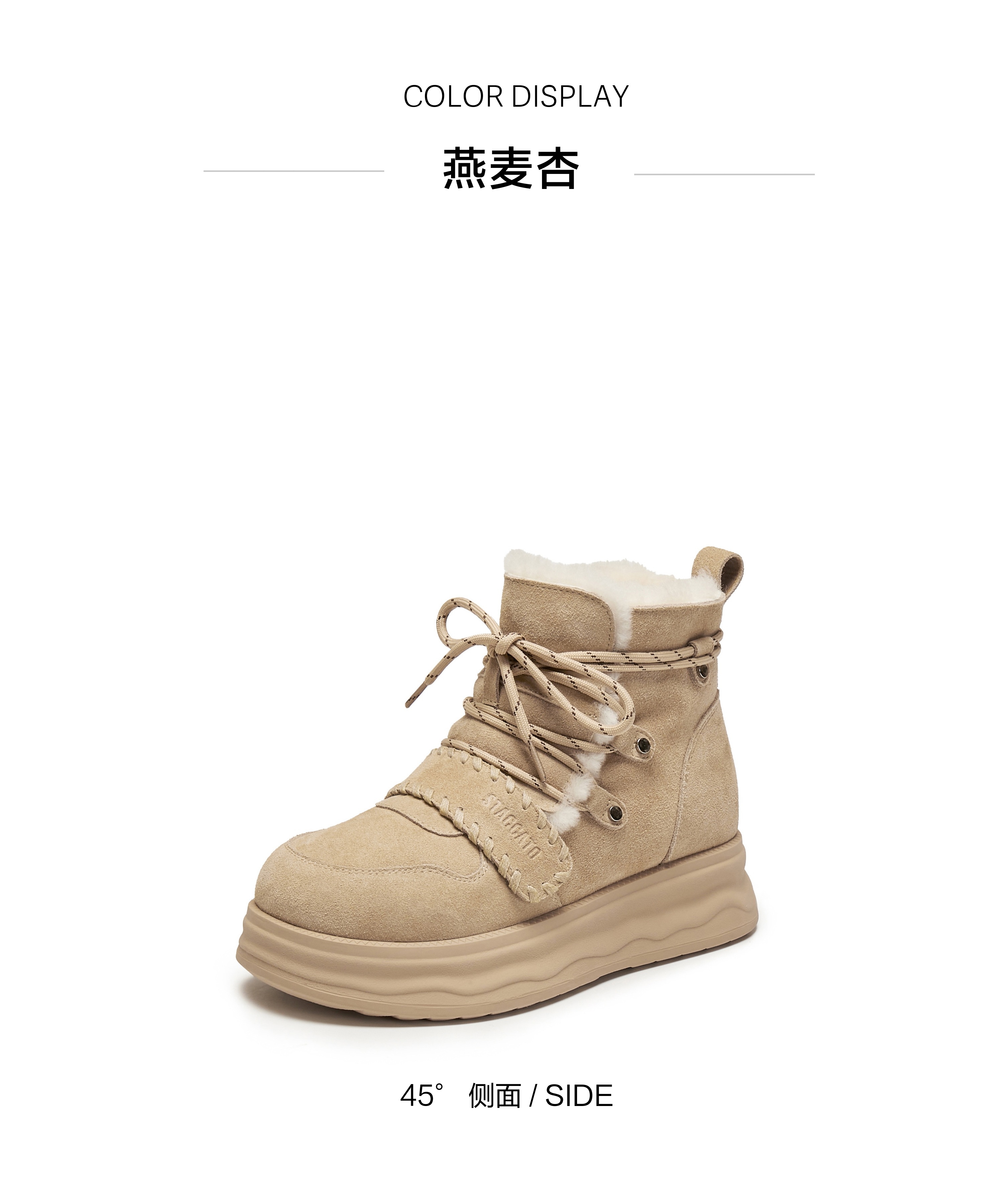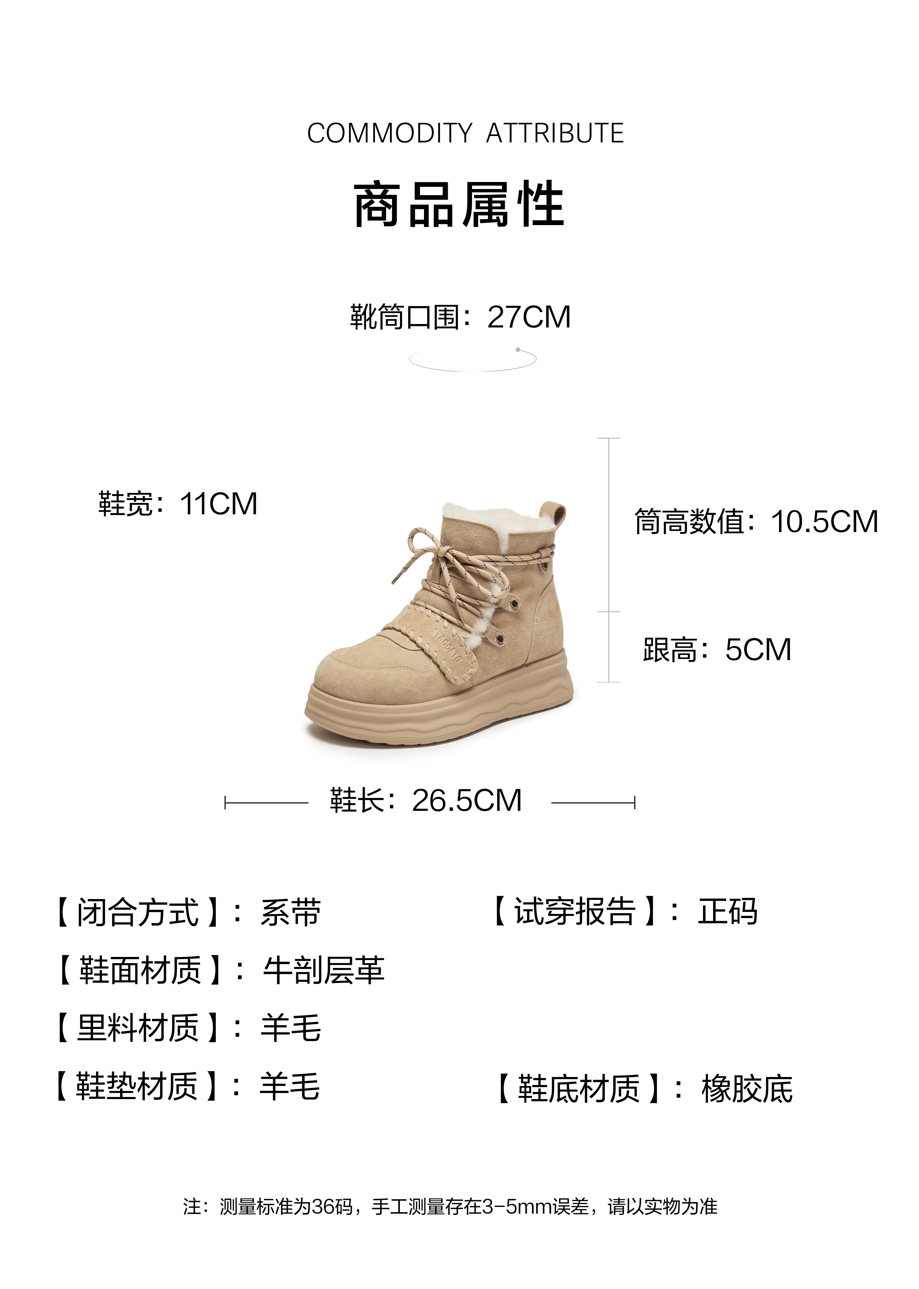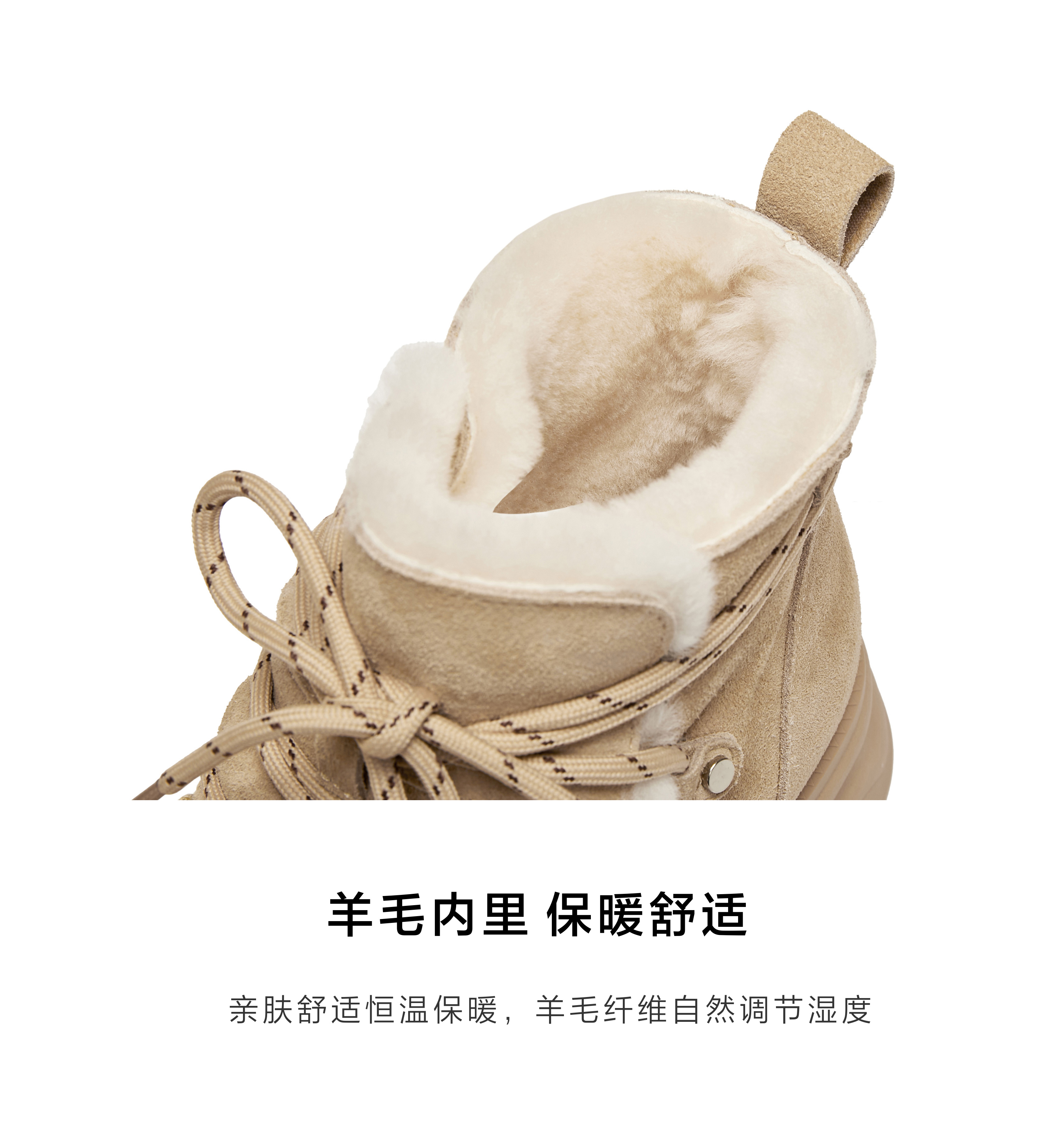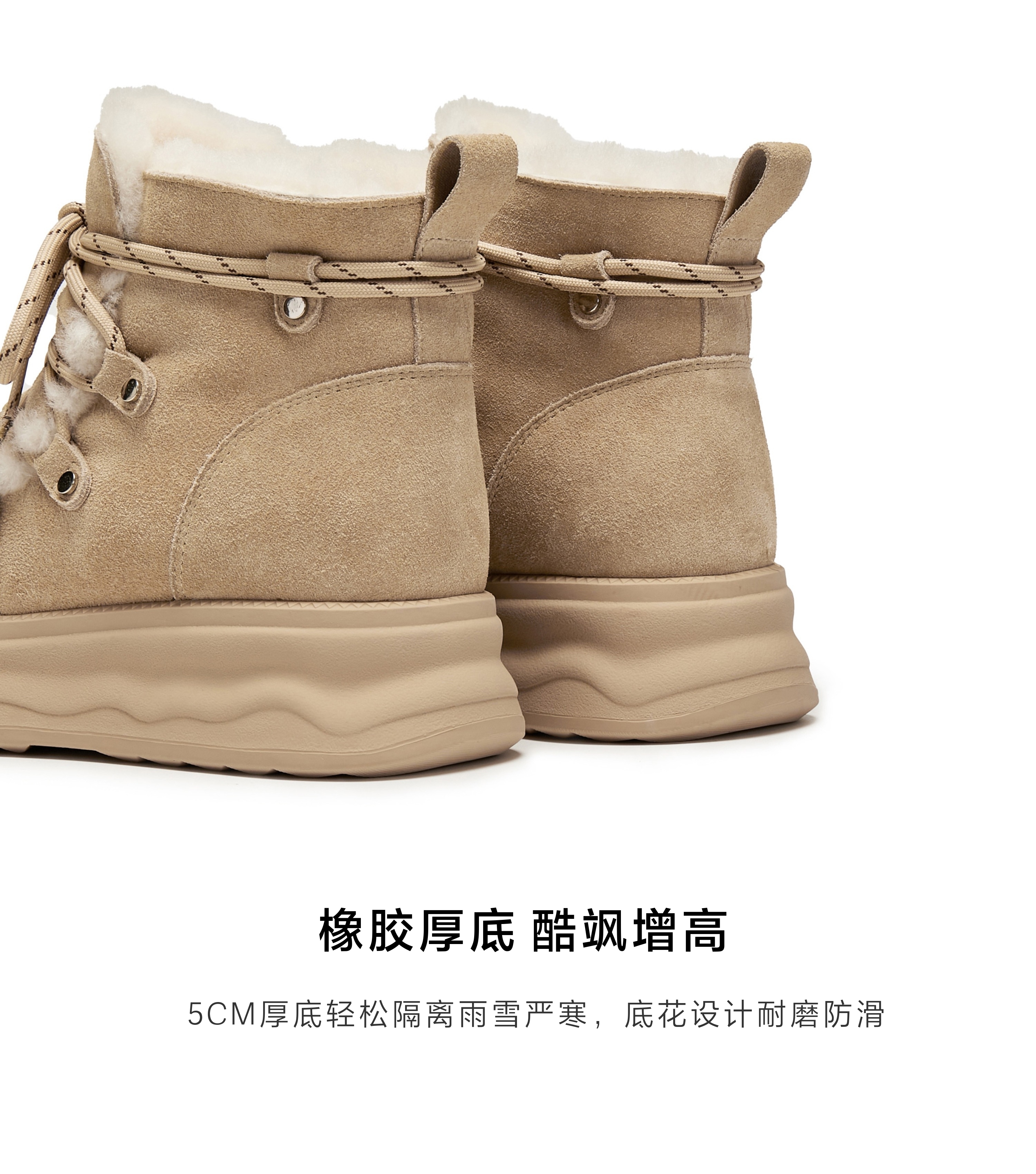 | 参考鞋宽(女):11CM | 风格:时尚潮流 | 鞋面内里材质:羊毛 | 色系:杏色 | 跟高数值:5CM |