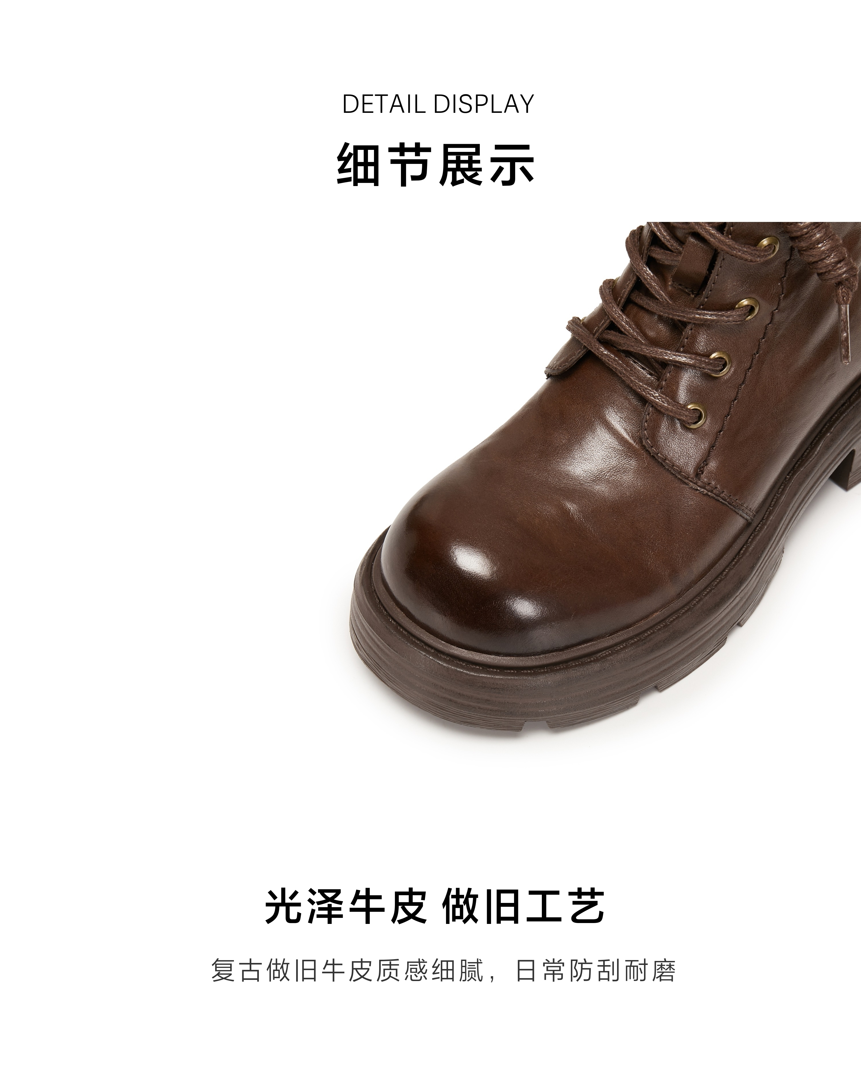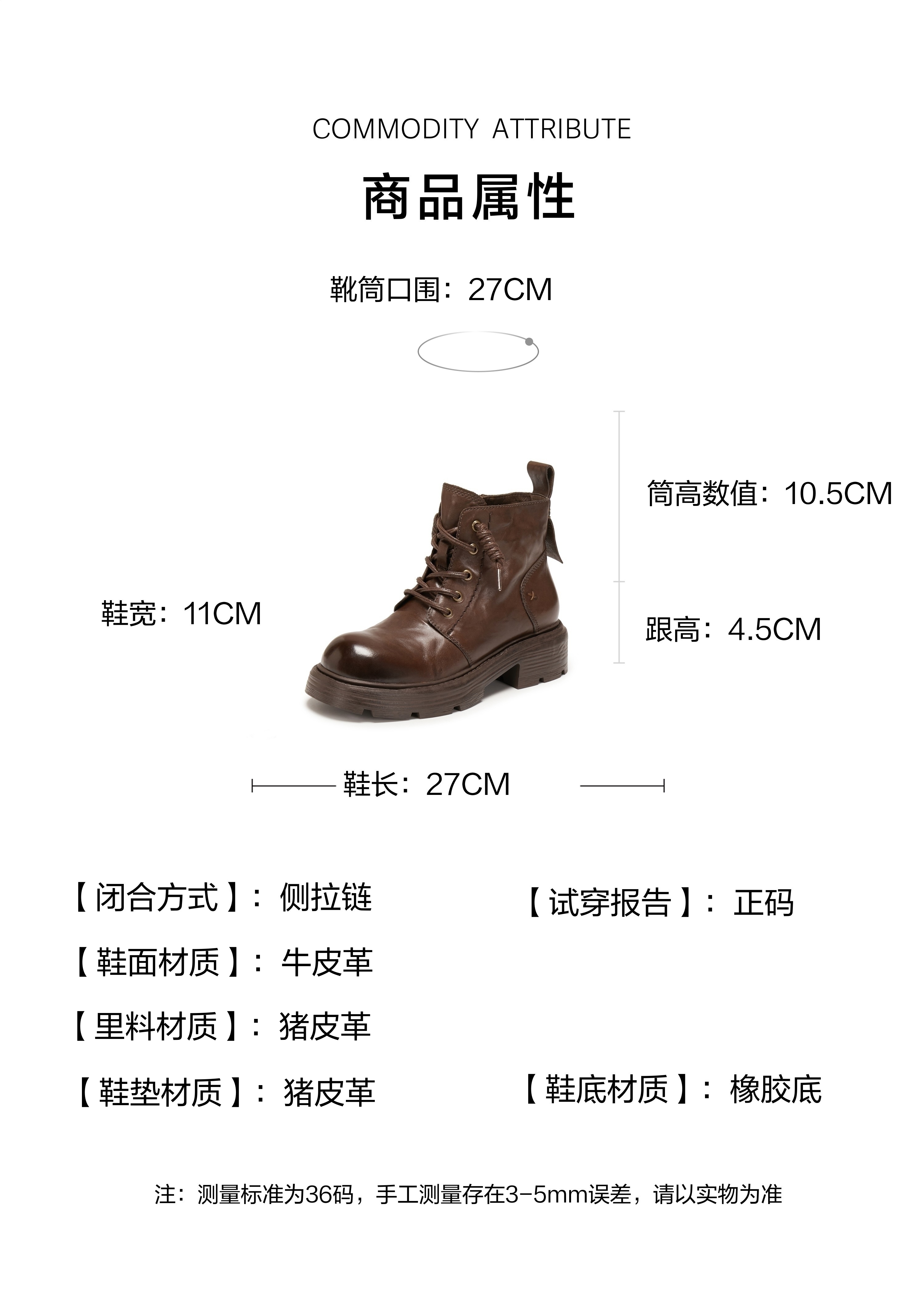 | 参考鞋宽(女):11CM | 风格:时尚潮流 | 鞋面内里材质:猪皮革 | 色系:棕色 | 跟高数值:4.5CM |