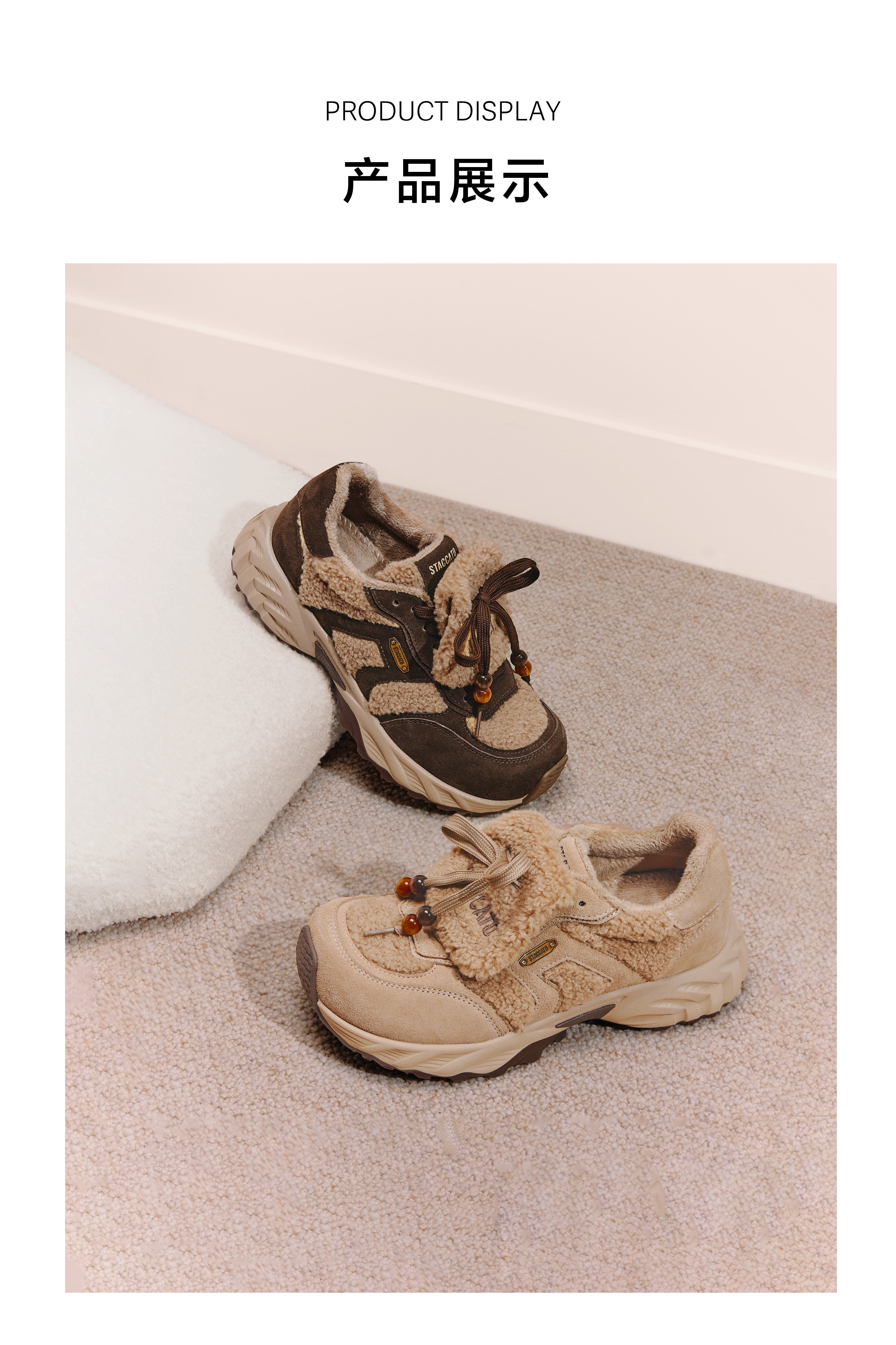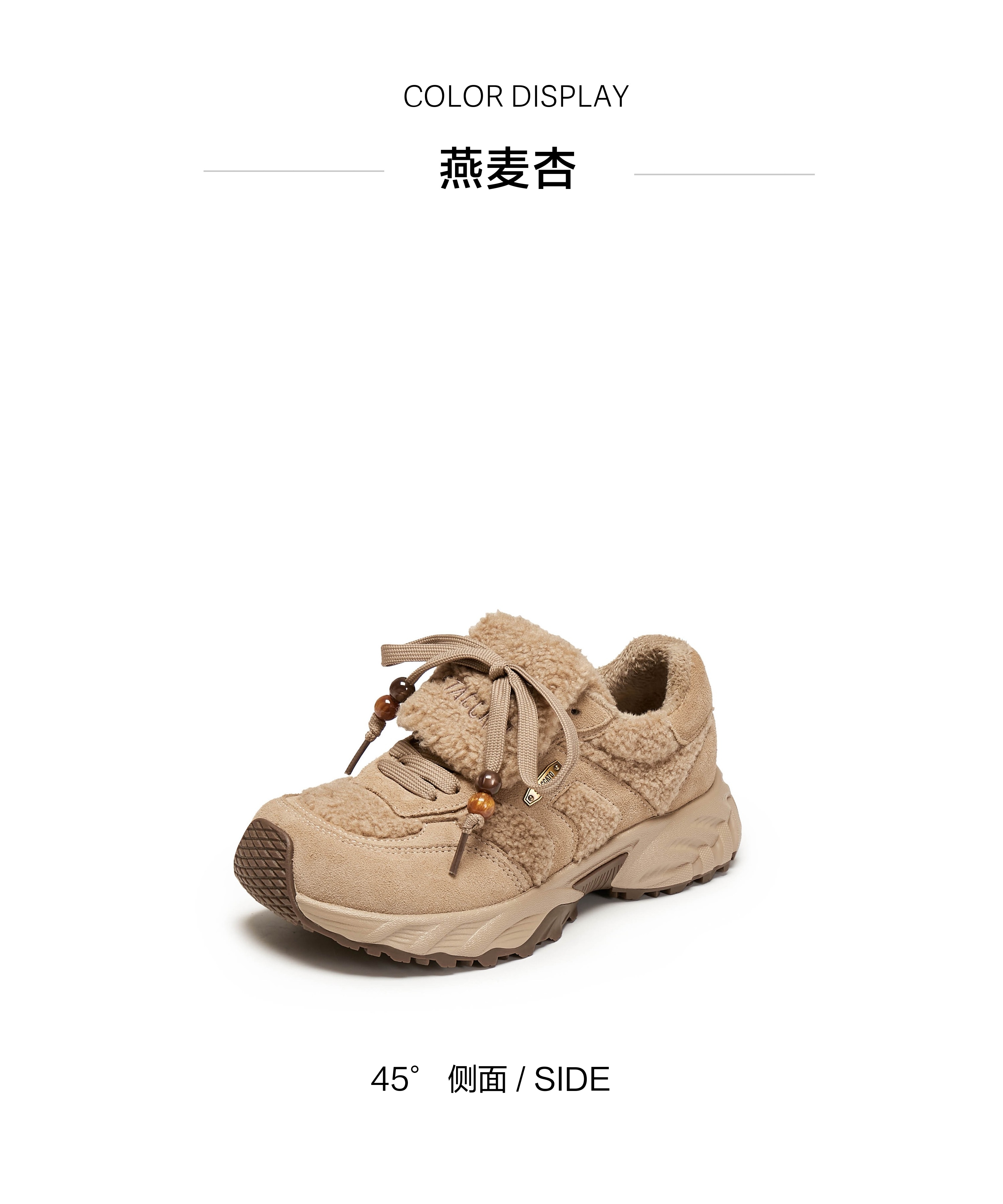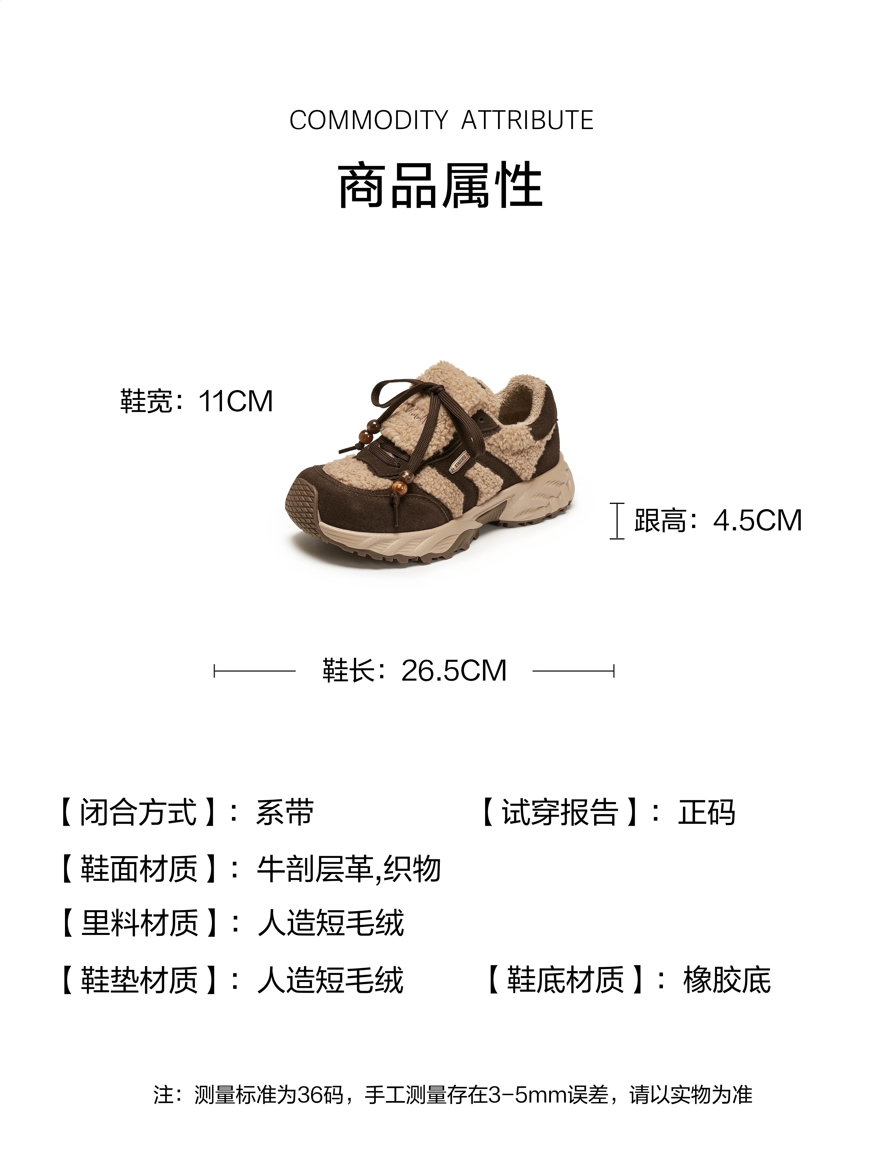 | 鞋帮:低帮 | 鞋底材质:橡胶底 | 靴筒内里材质:人造毛绒 | 内增高:无 | 鞋面材质:织物牛剖层革 |
