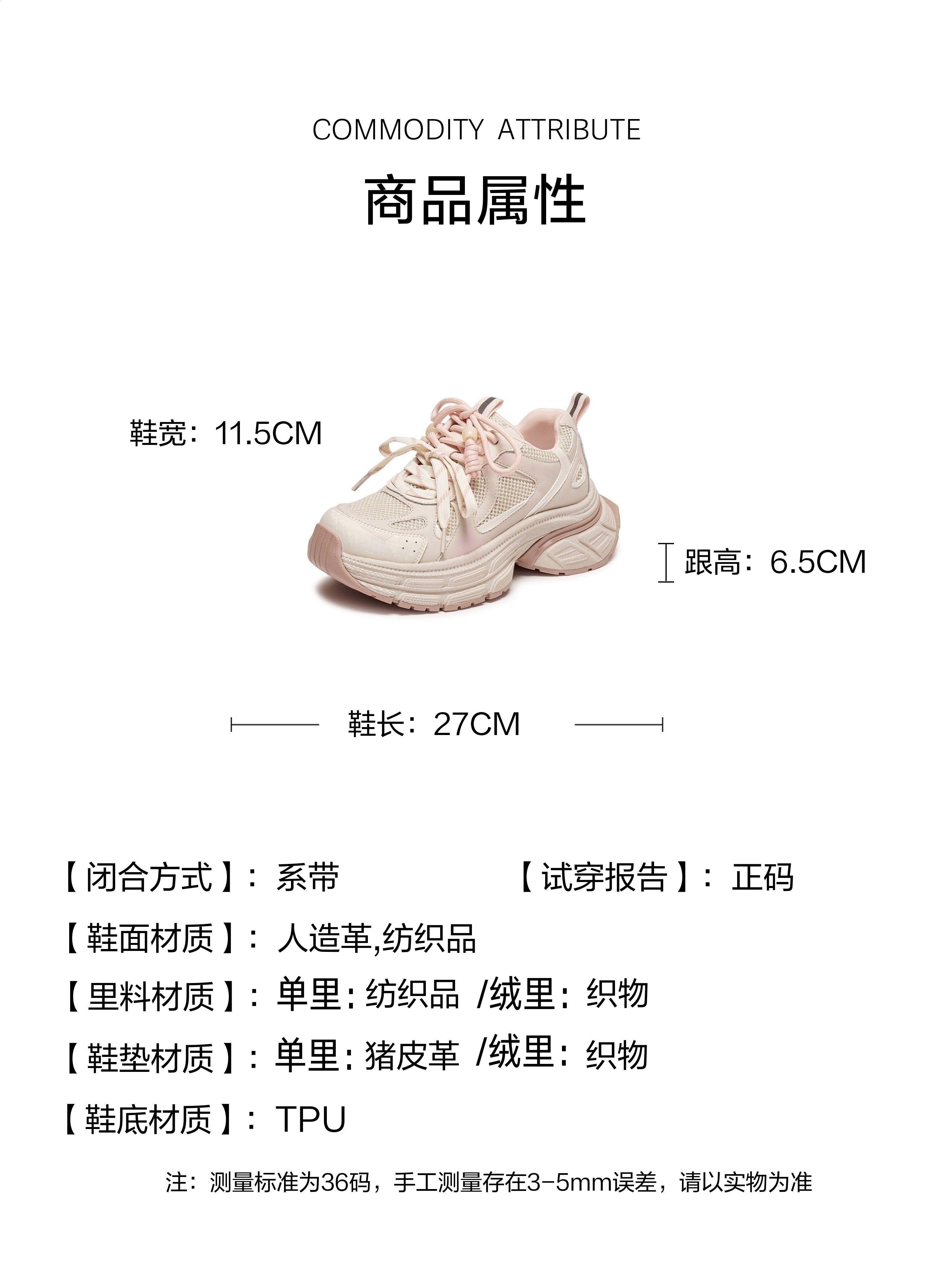 | 款式季节:春季 | 鞋垫材质:猪皮革 | 皮质特征:织物/人造革 | 鞋类流行款式:老爹鞋 |