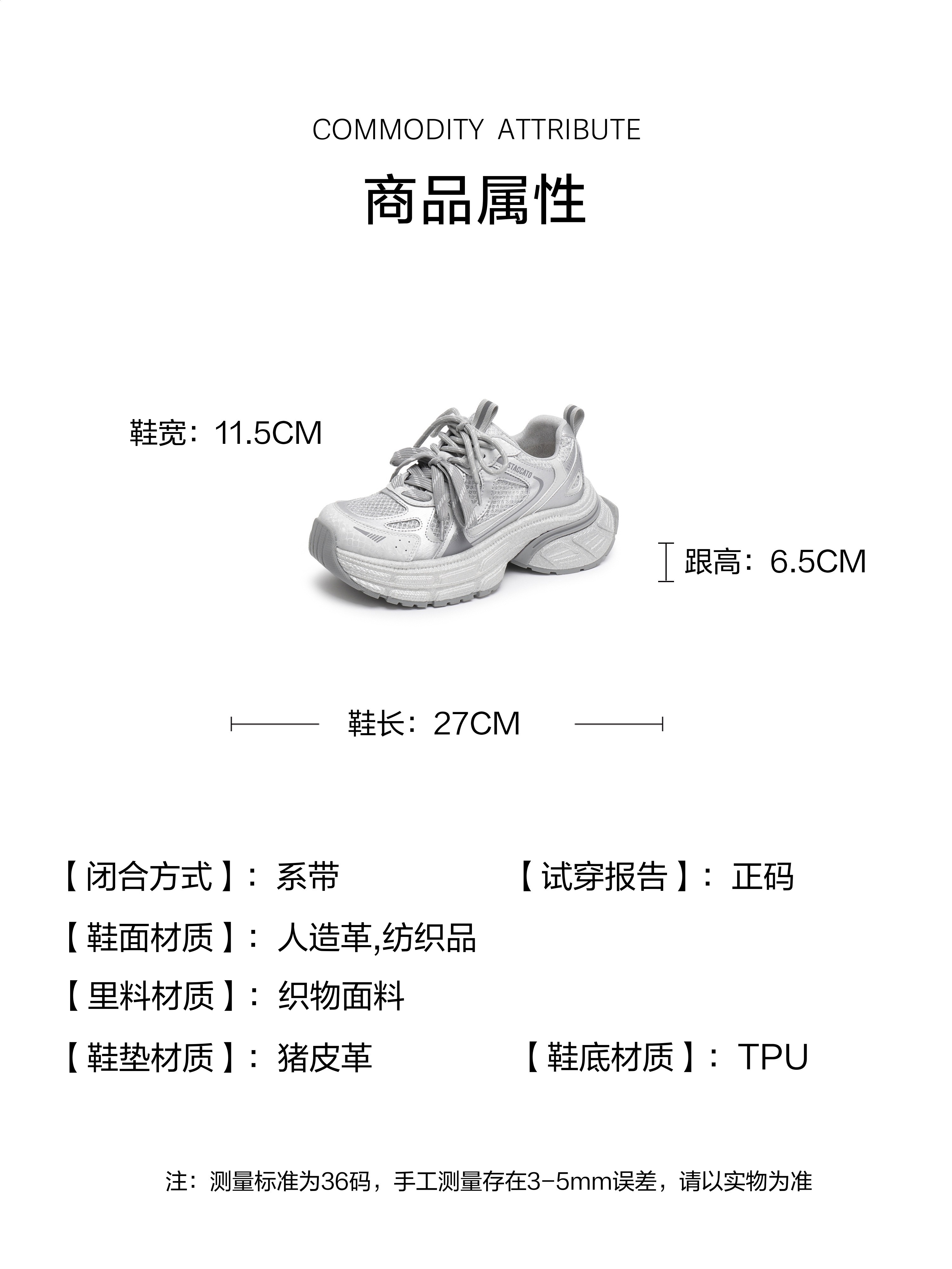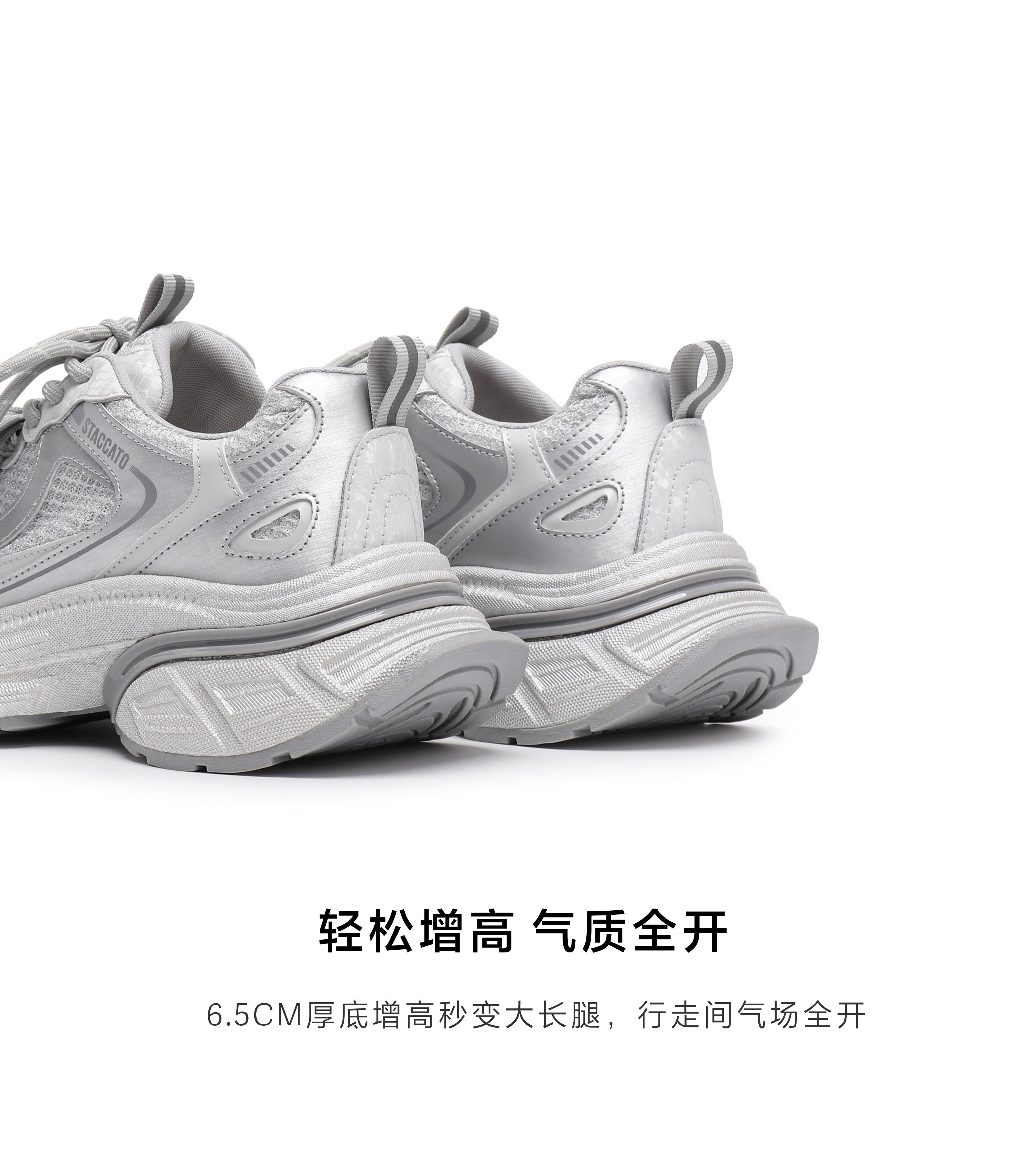| 风格:时尚潮流 | 色系:银色 | 跟高数值:6.5CM | 配跟:无 | 性别:女子 |