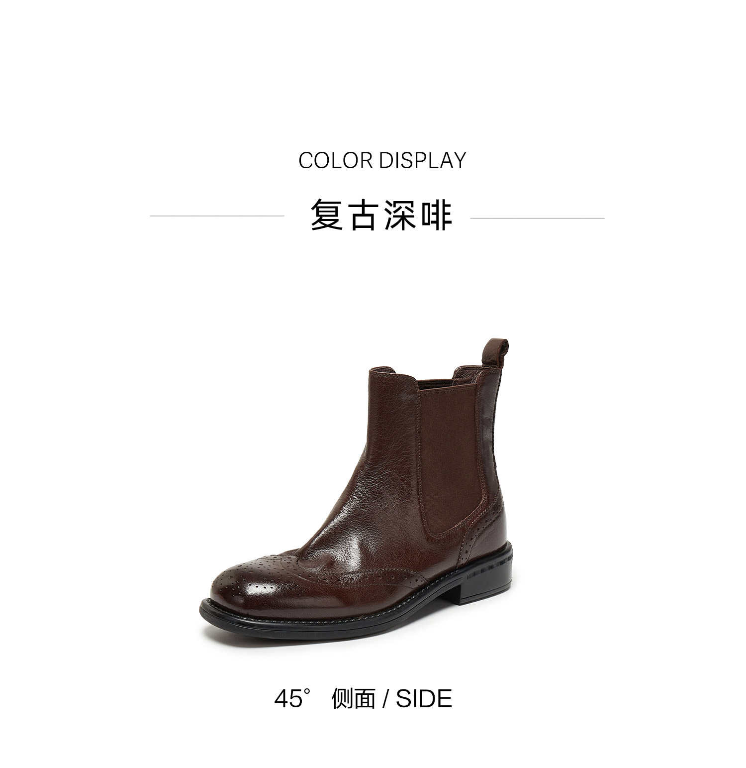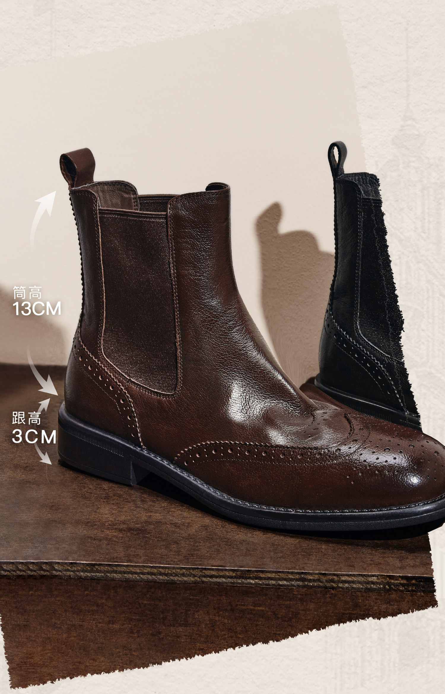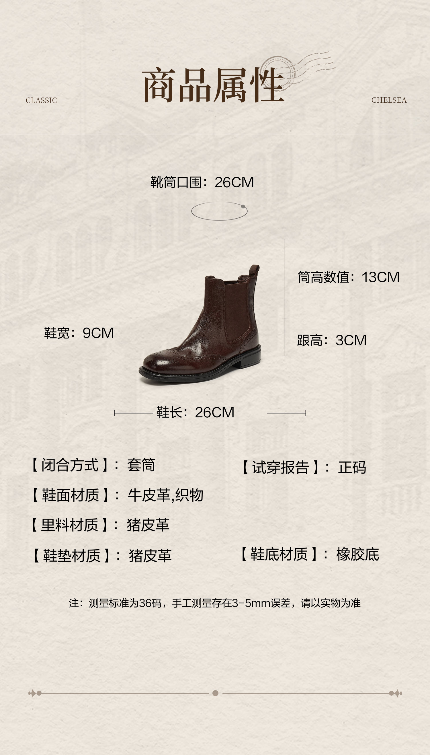 | 帮面材质:织物牛皮革 | 配跟:无 | 靴筒口围:26CM | 上市时间:2025年冬季 | 鞋类流行款式:切尔西靴 |