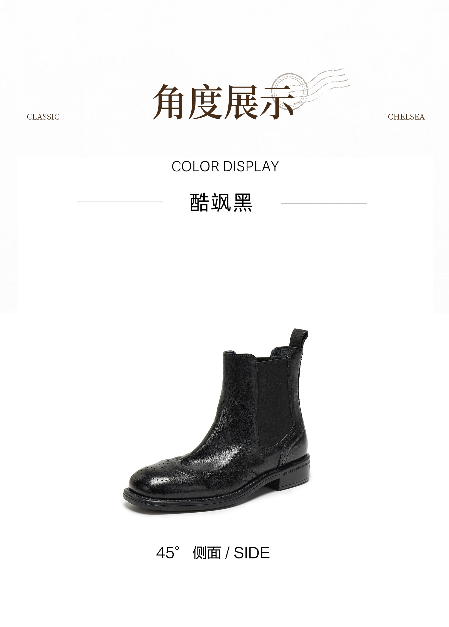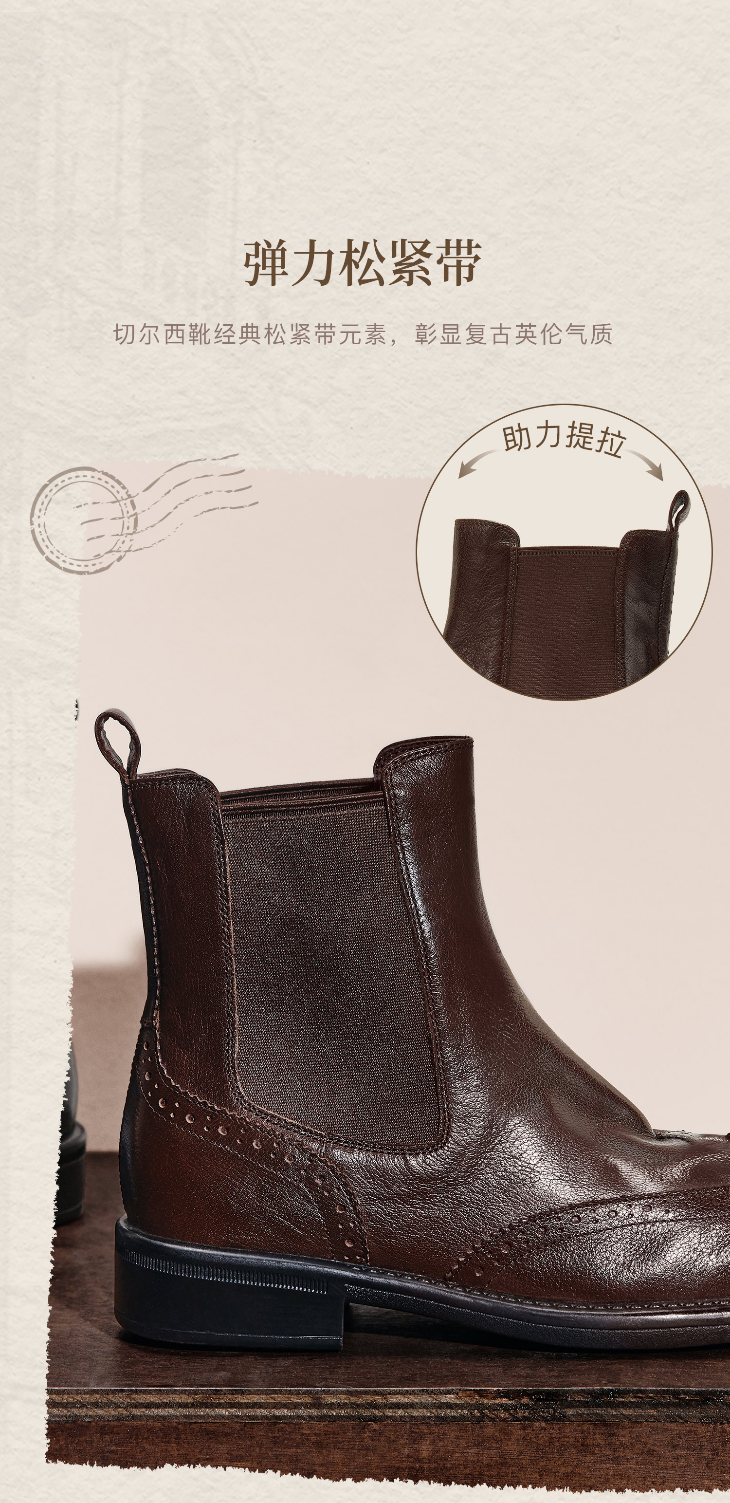 | 帮面材质:织物牛皮革 | 配跟:无 | 靴筒口围:26CM | 上市时间:2025年冬季 | 鞋类流行款式:切尔西靴 |