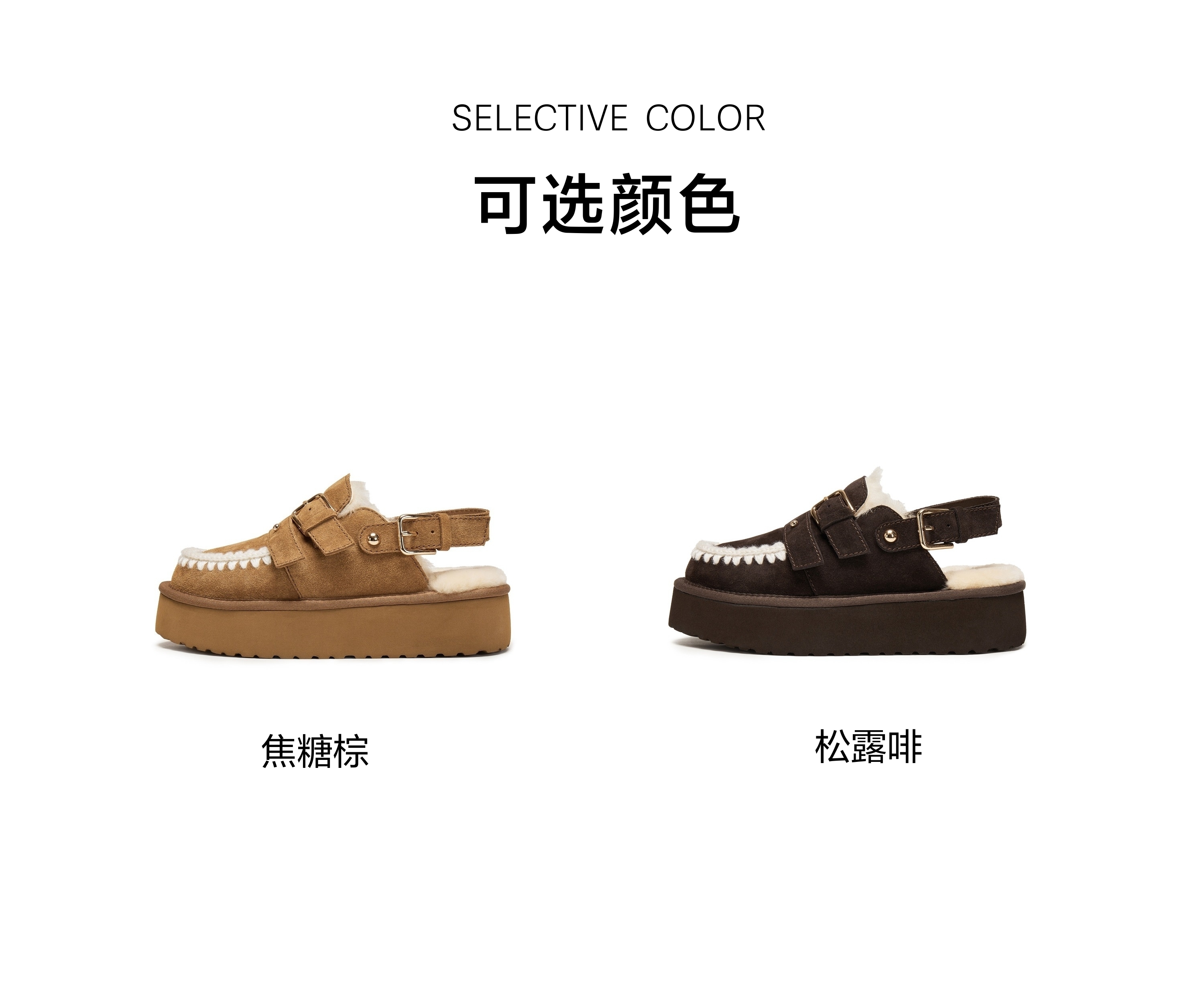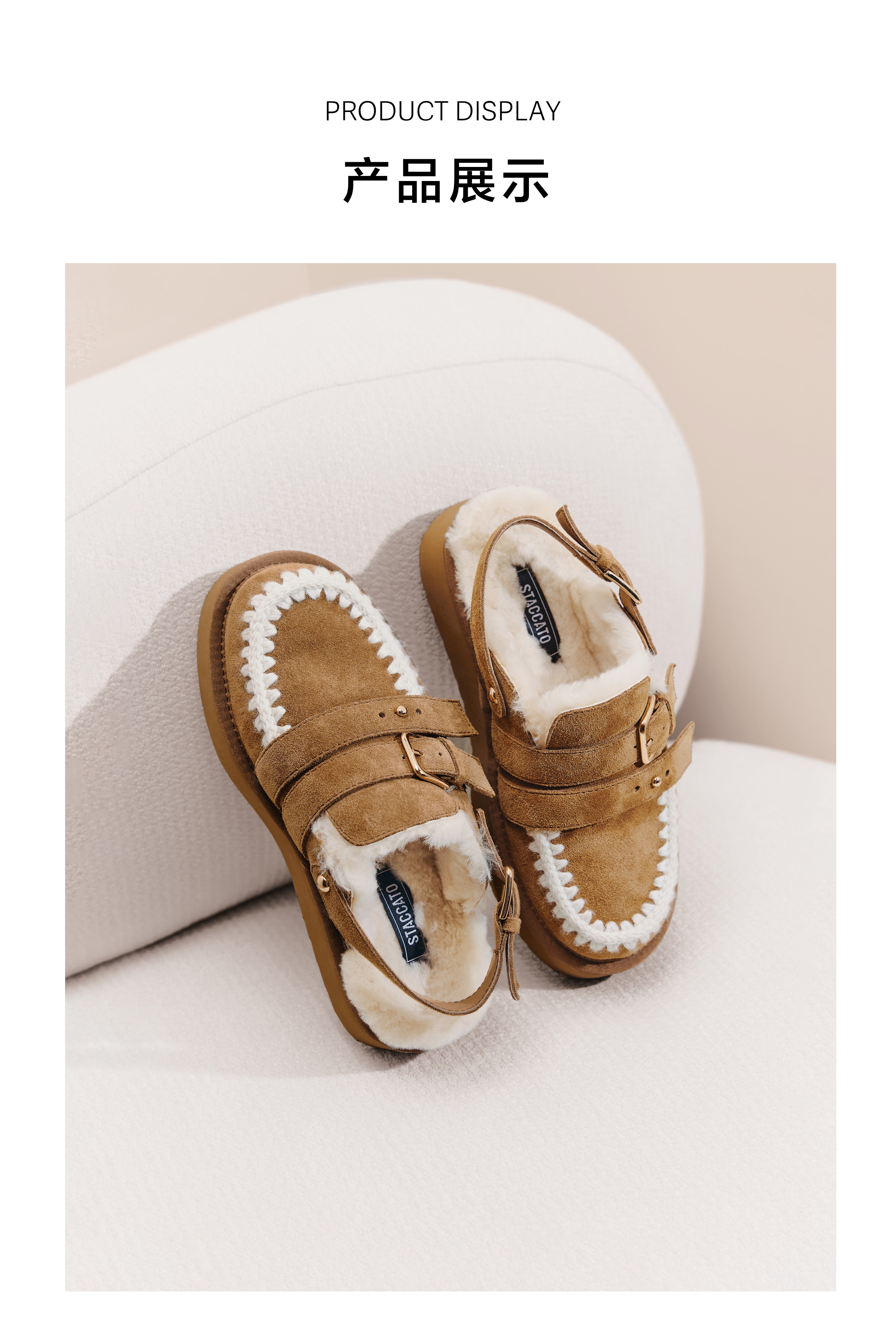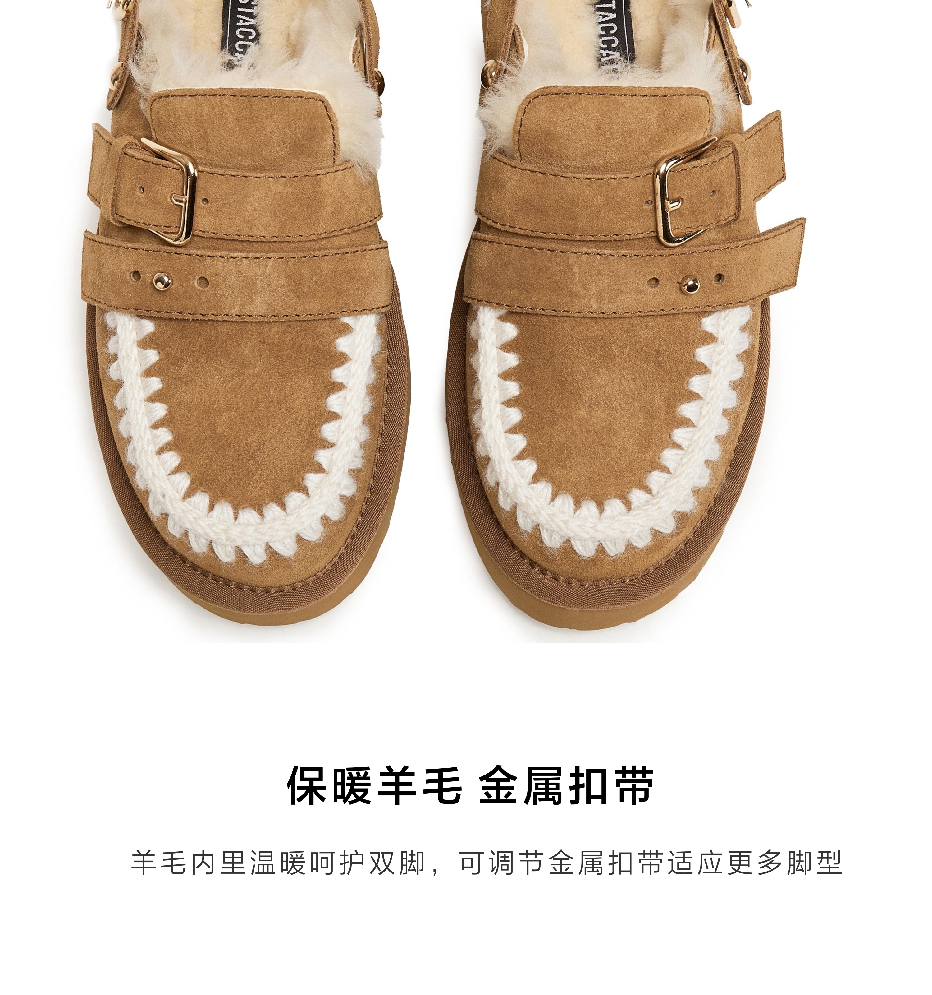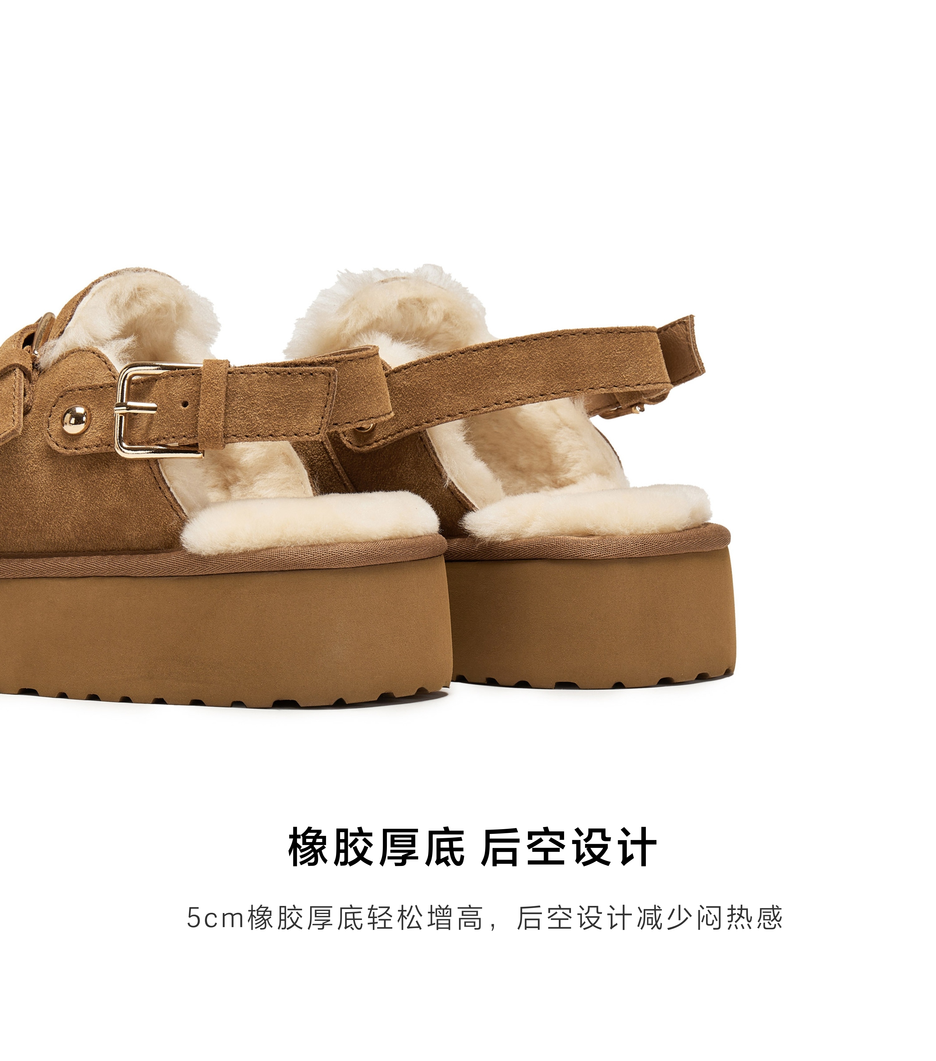 | 鞋面内里材质:羊毛 | 色系:棕色 | 跟高数值:5CM | 配跟:无 | 性别:女子 |
