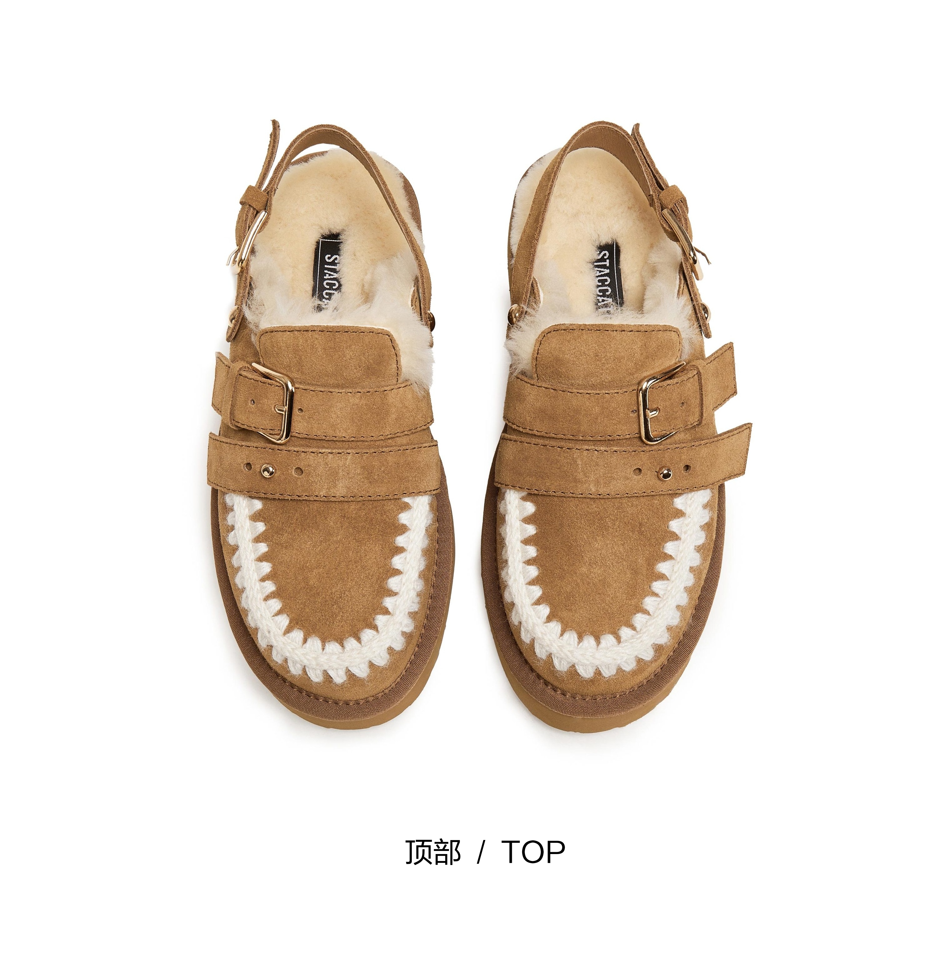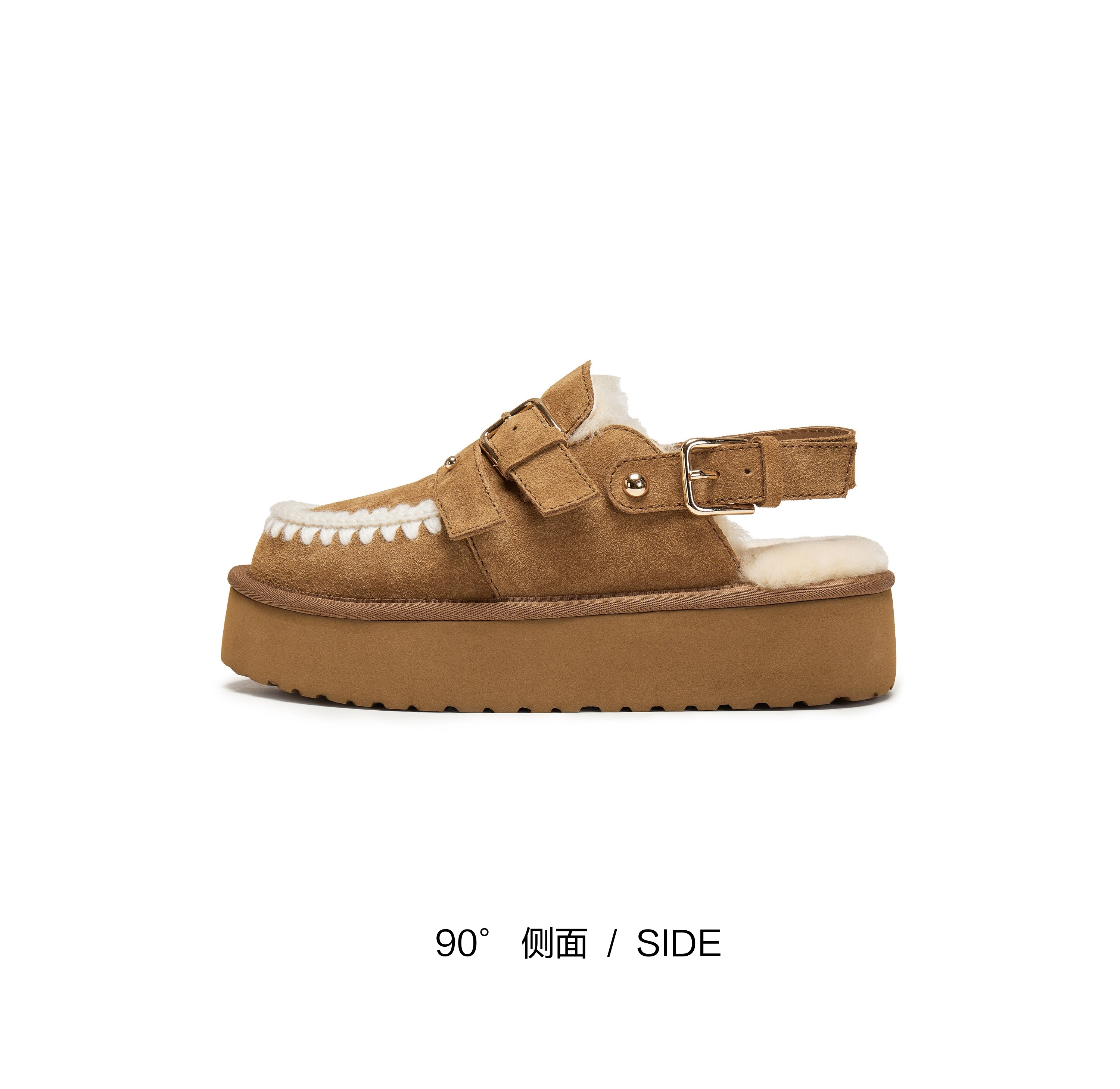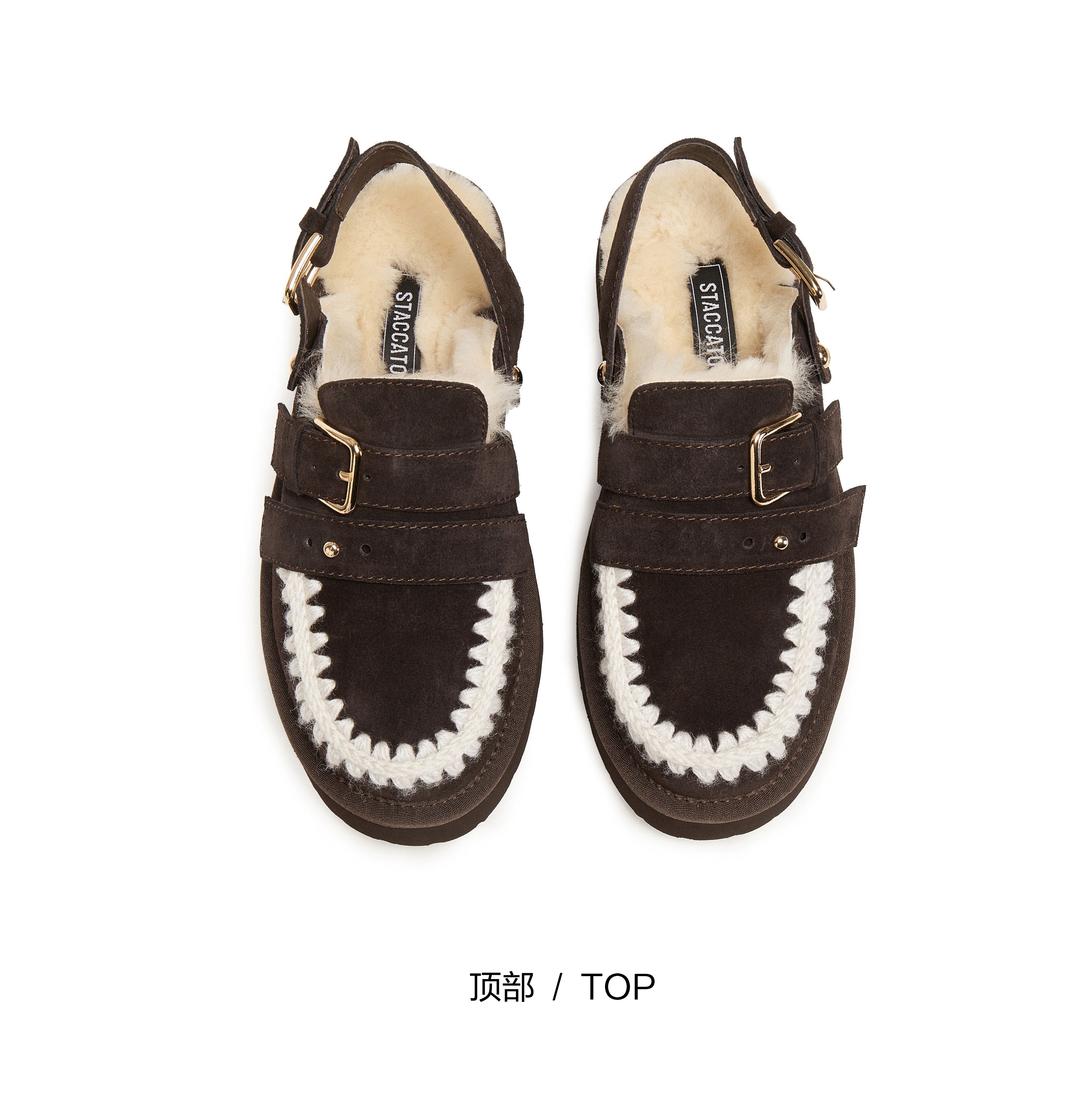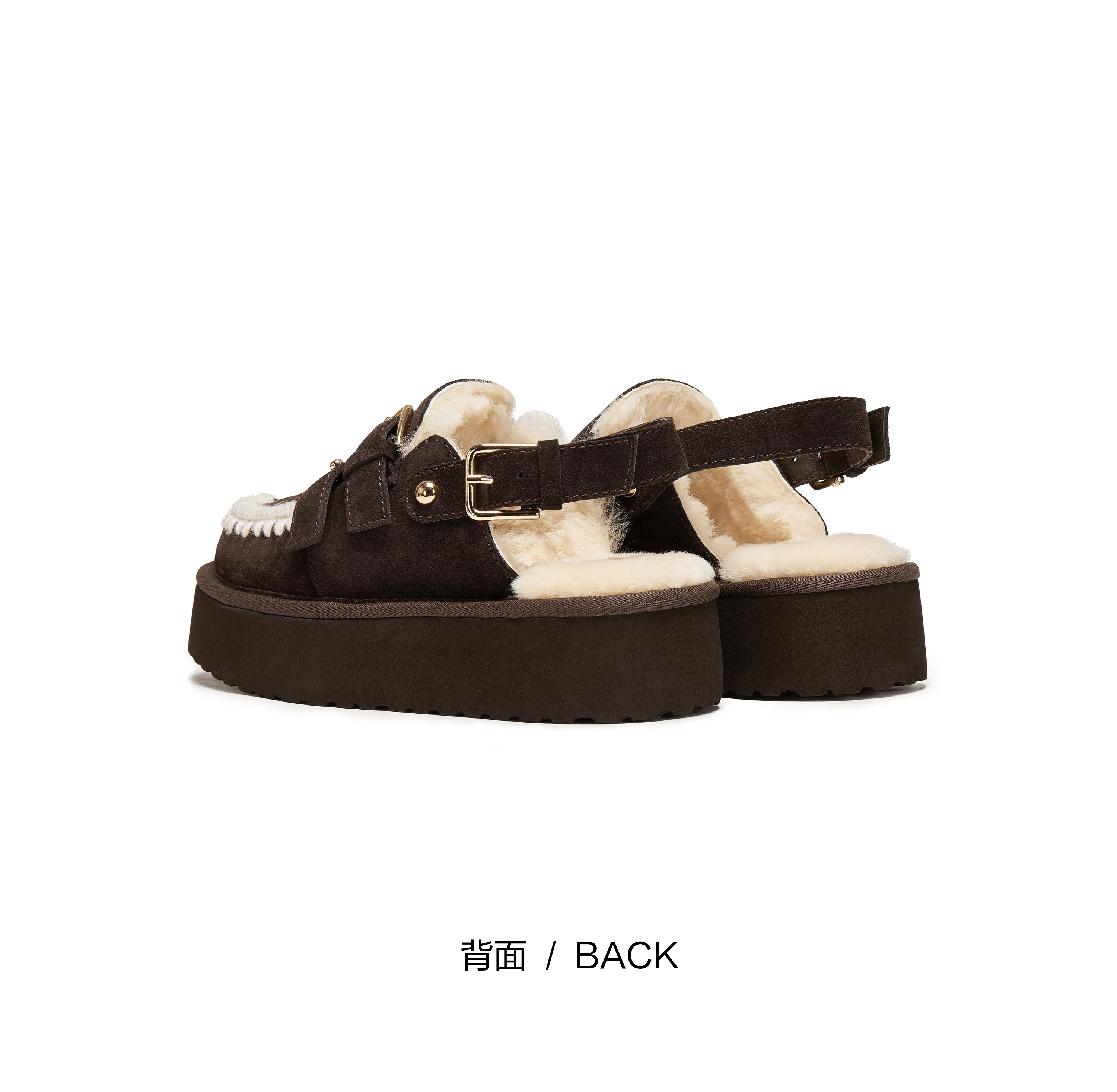 | 鞋面内里材质:羊毛 | 色系:棕色 | 跟高数值:5CM | 配跟:无 | 性别:女子 |