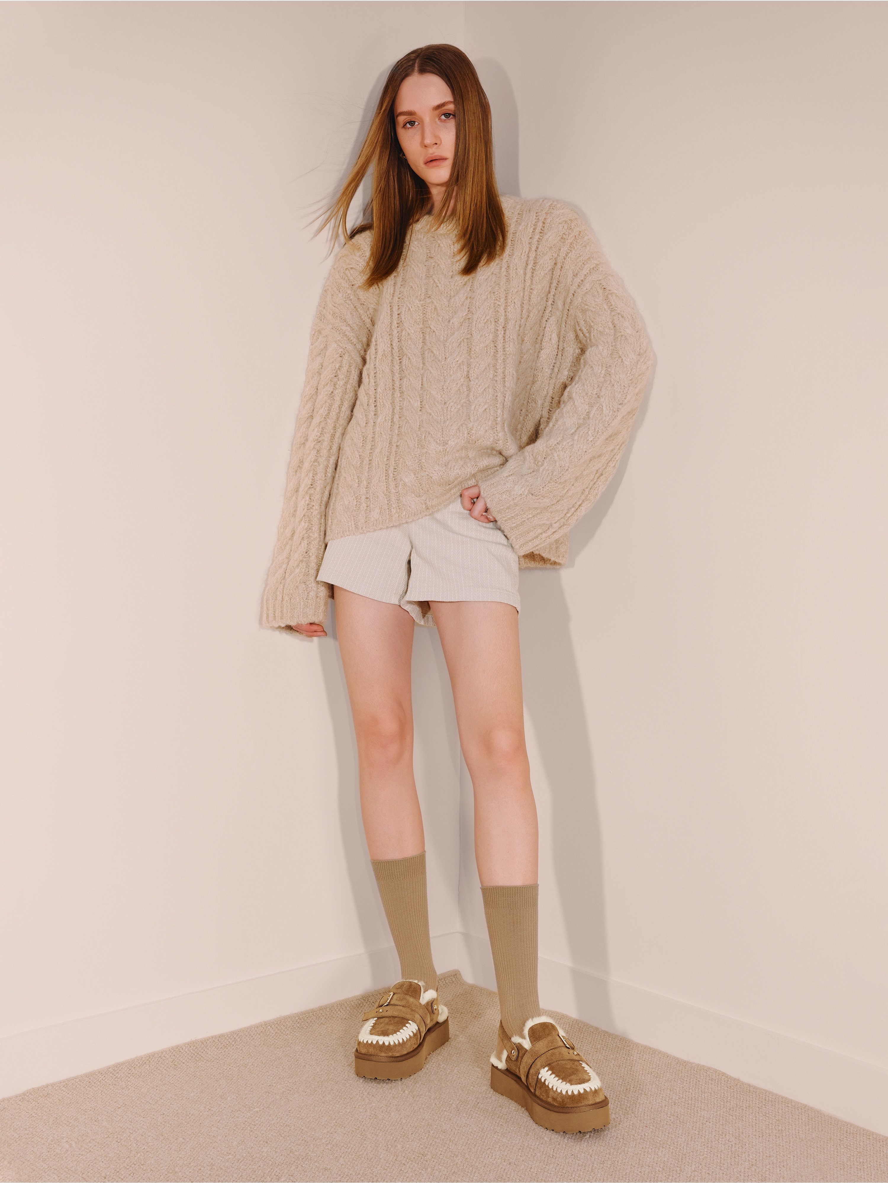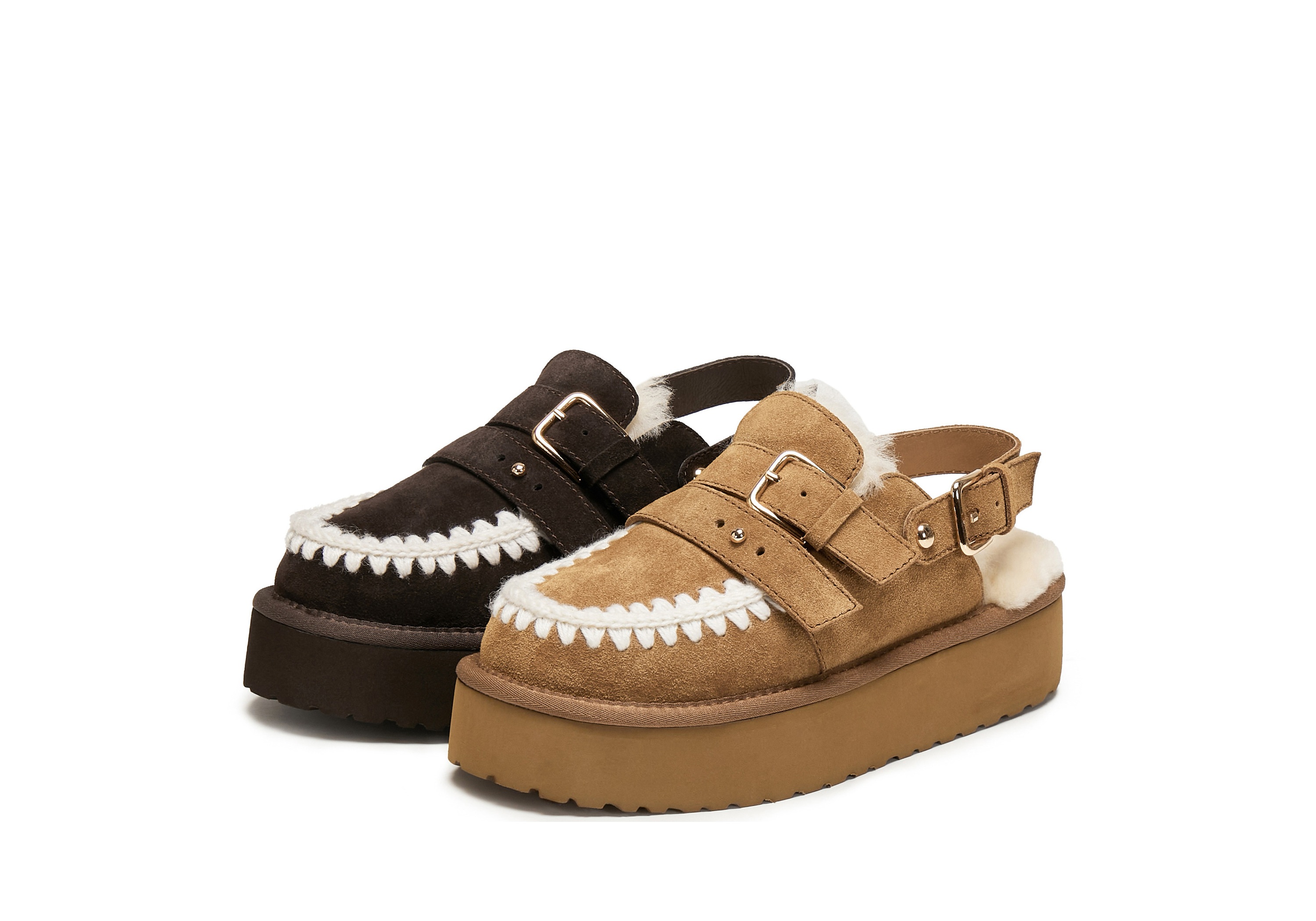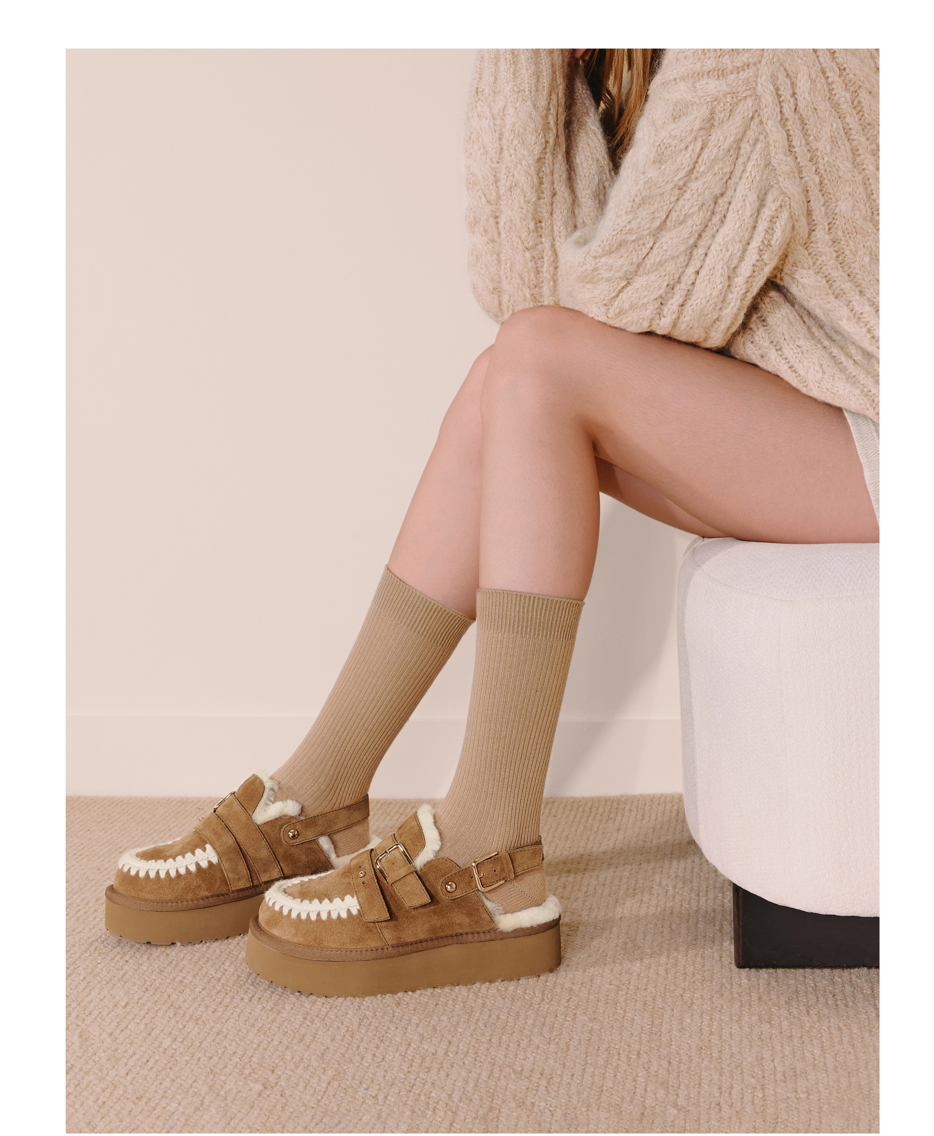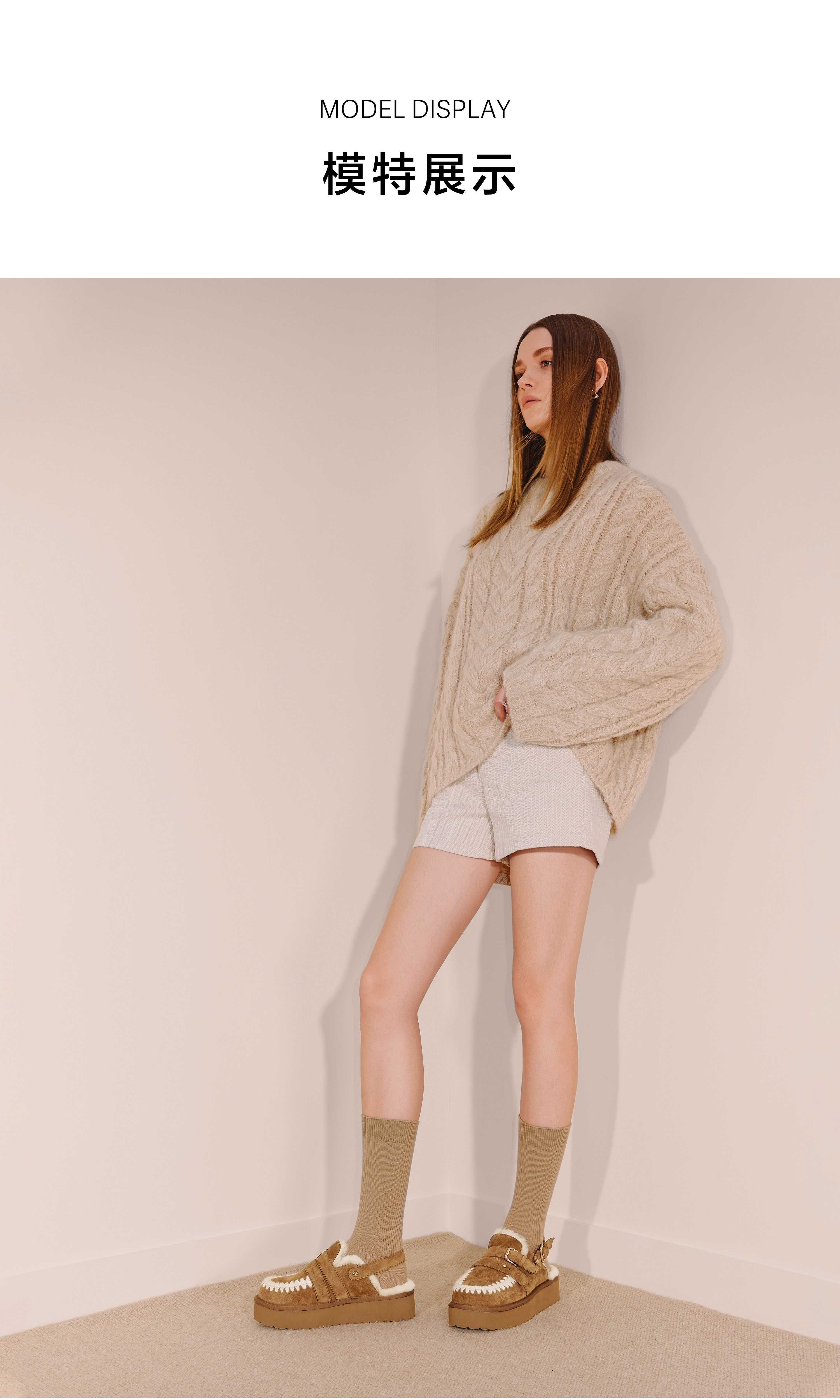 | 鞋面内里材质:羊毛 | 色系:棕色 | 跟高数值:5CM | 配跟:无 | 性别:女子 |