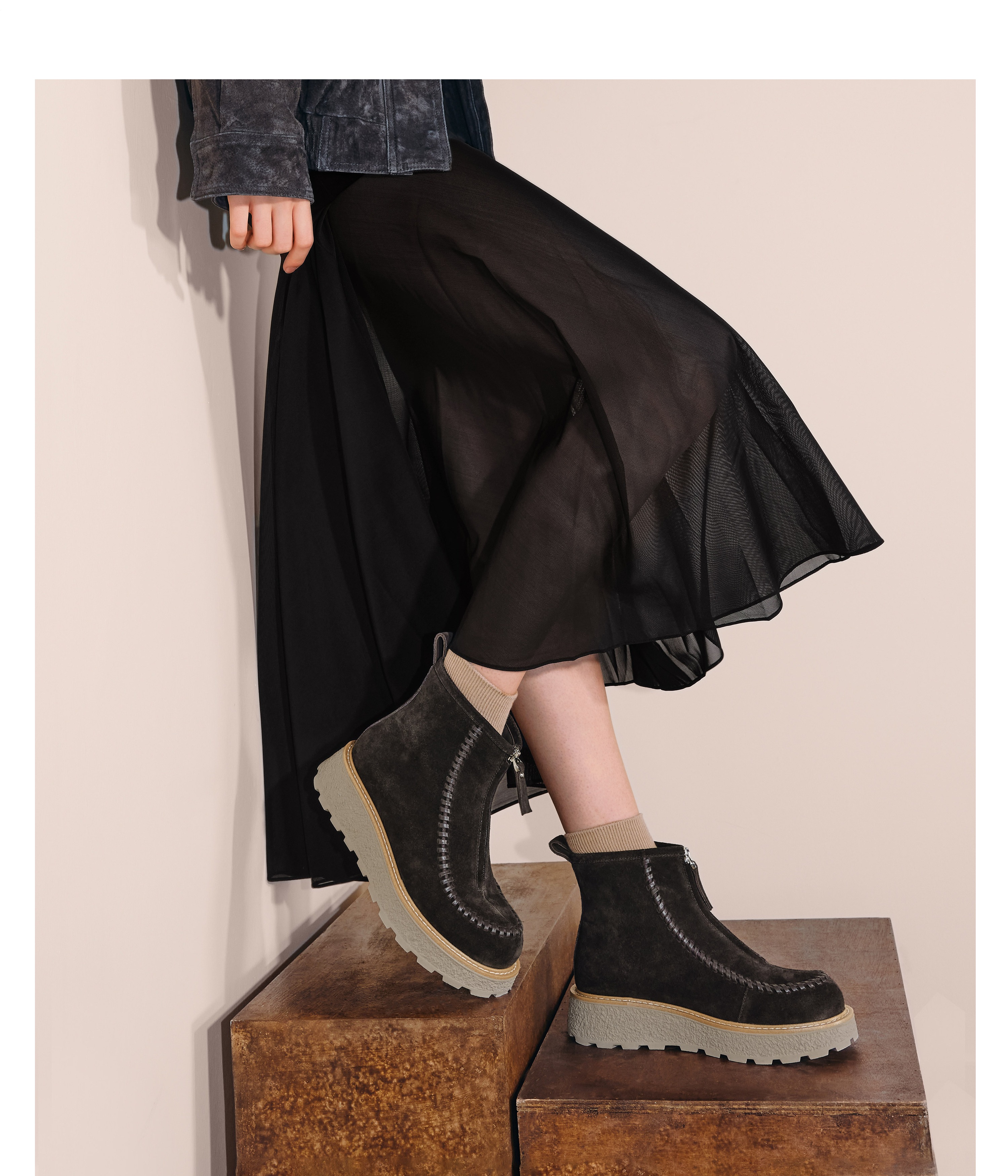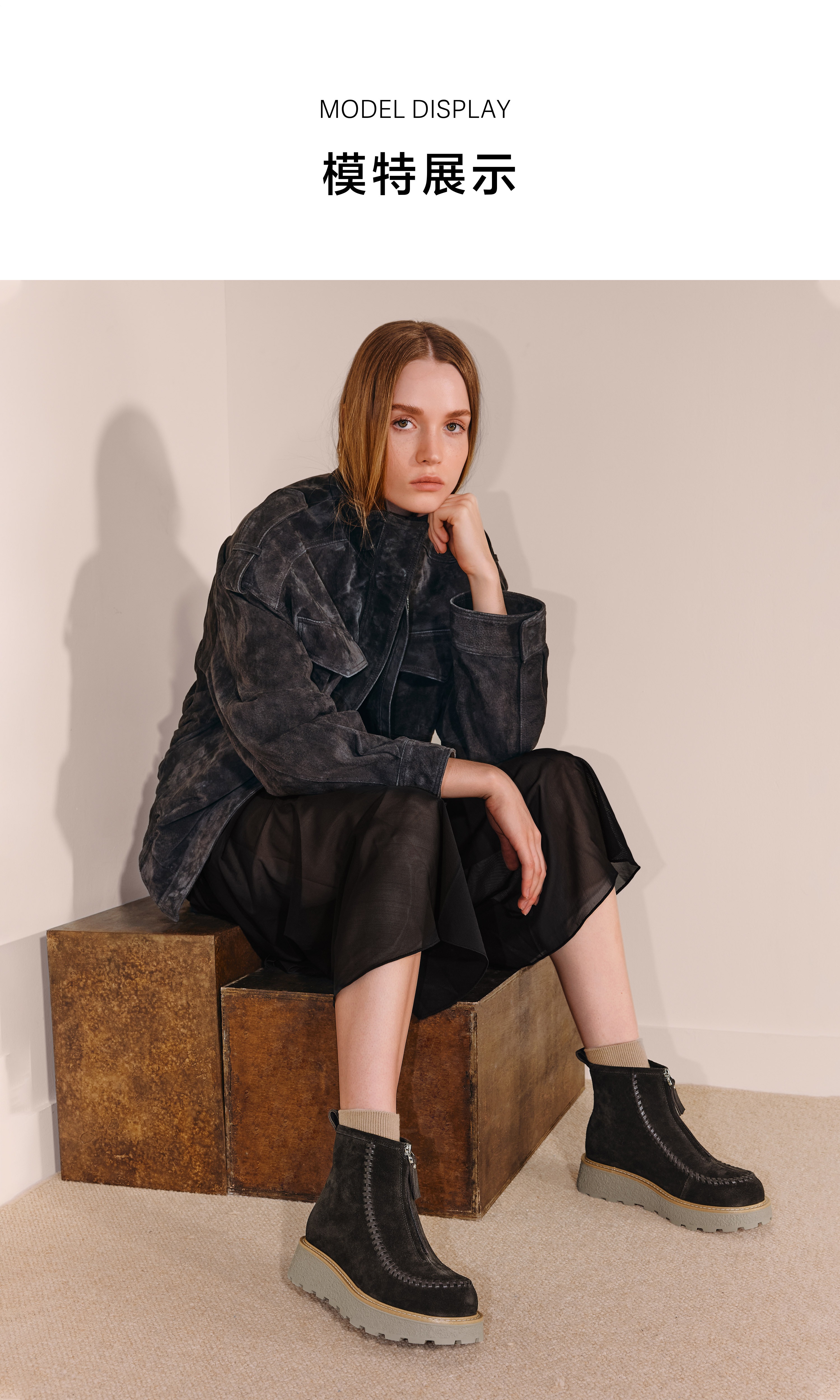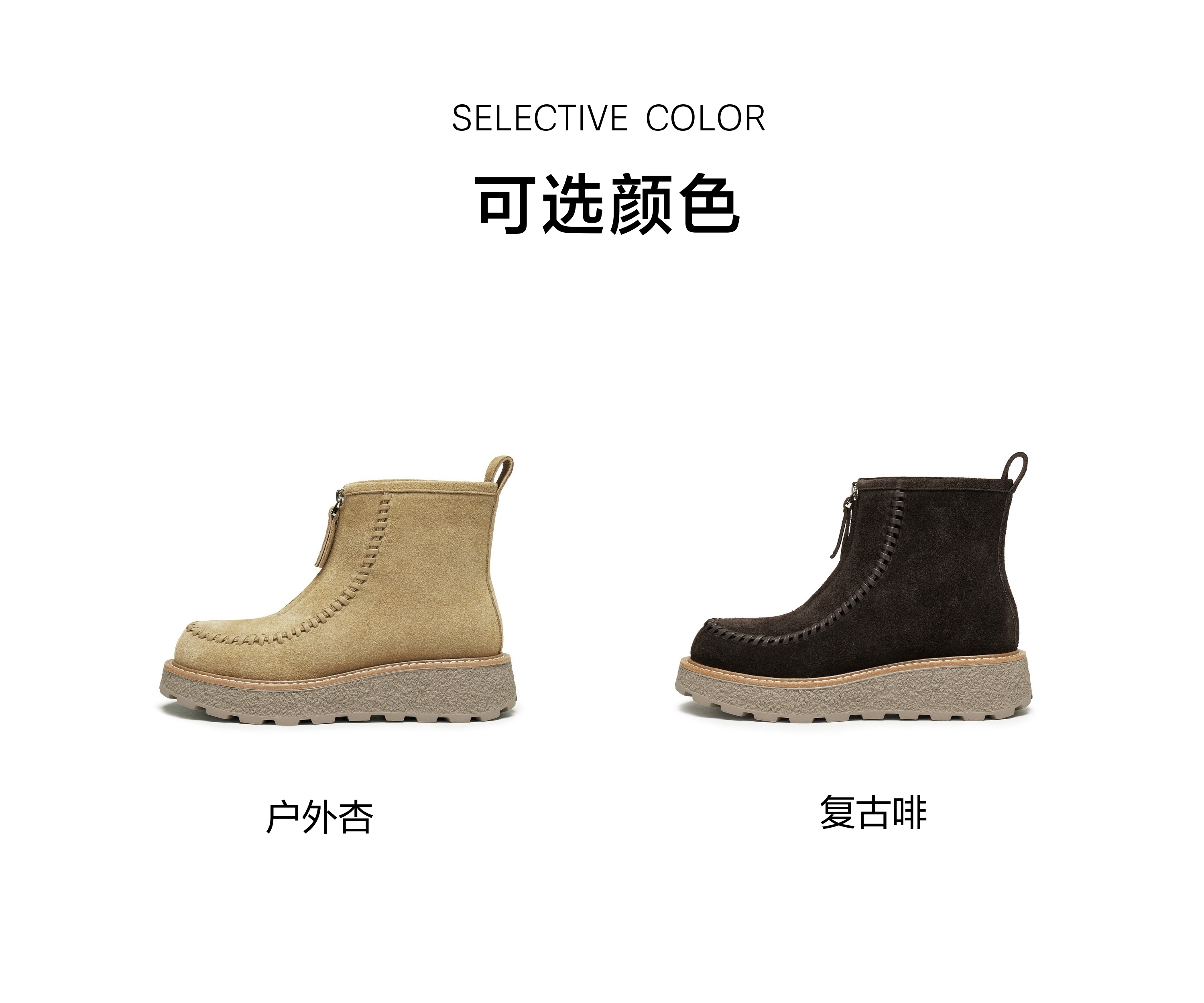 | 鞋底材质:橡胶底 | 靴筒内里材质:织物 | 内增高:无 | 鞋面材质:牛剖层革 | 闭合方式:前拉链 |
