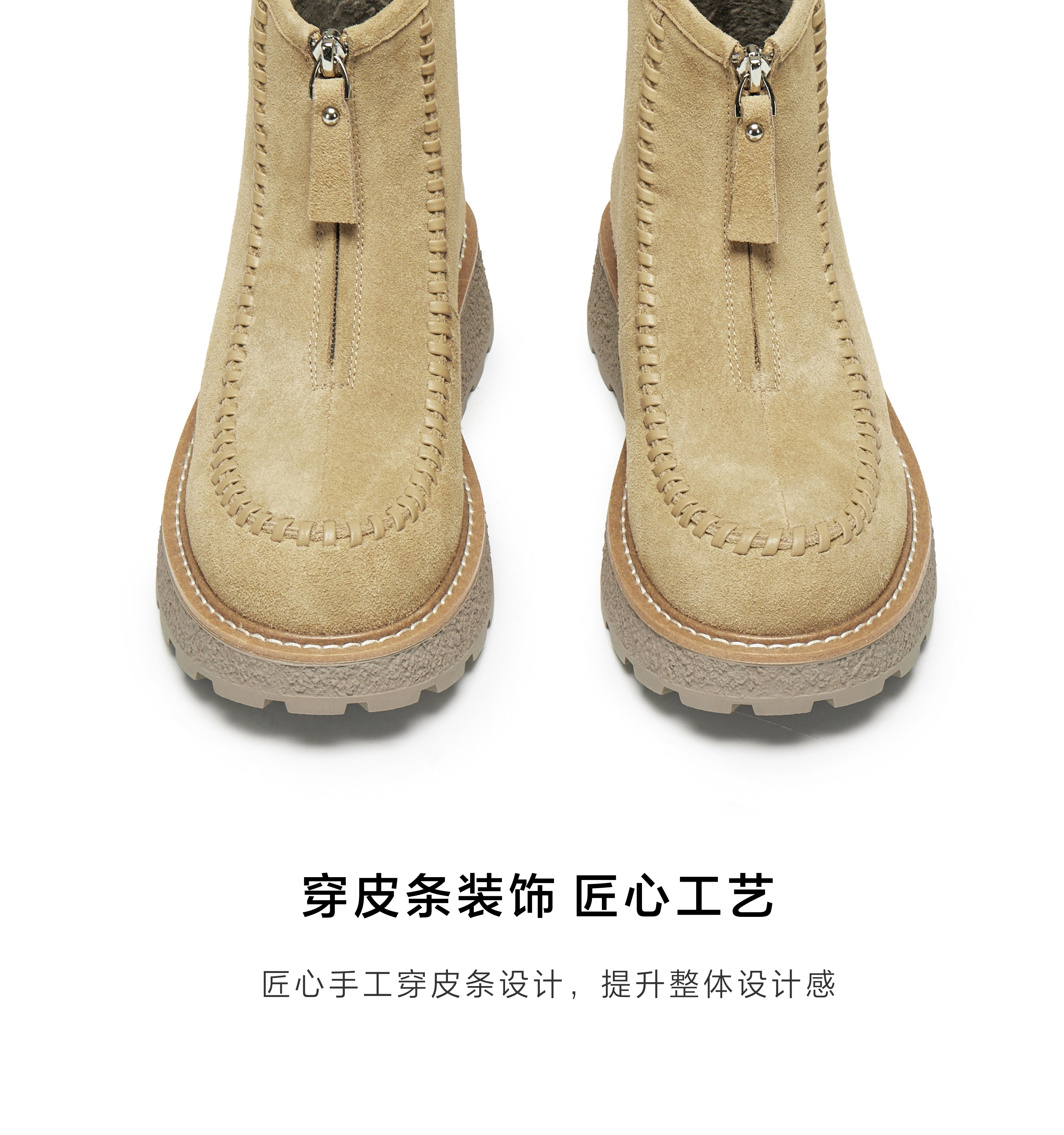 | 帮面材质:牛剖层革 | 配跟:无 | 靴筒口围:28CM | 上市时间:2025年冬季 | 鞋类流行款式:雪地靴 |