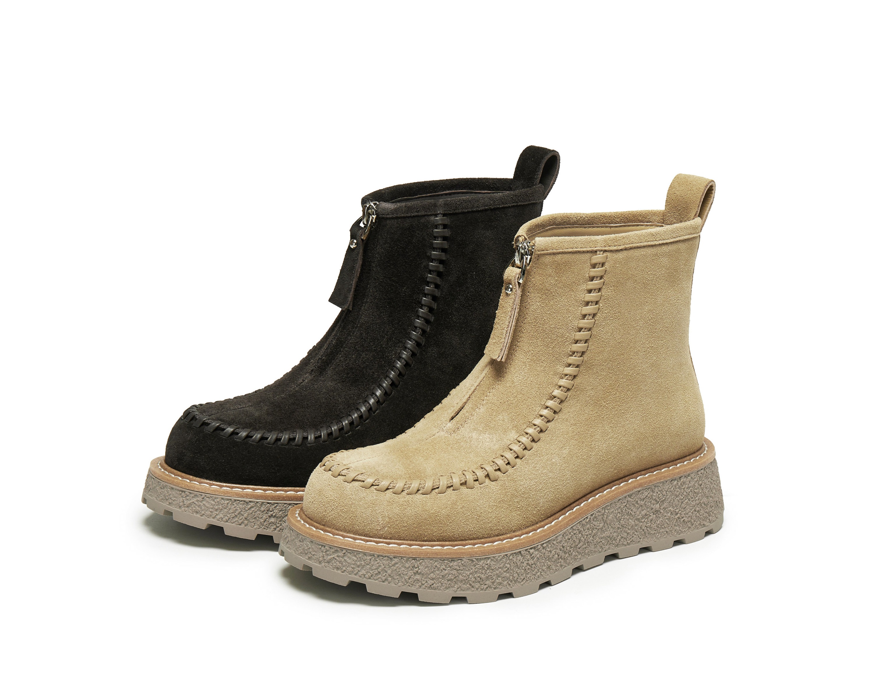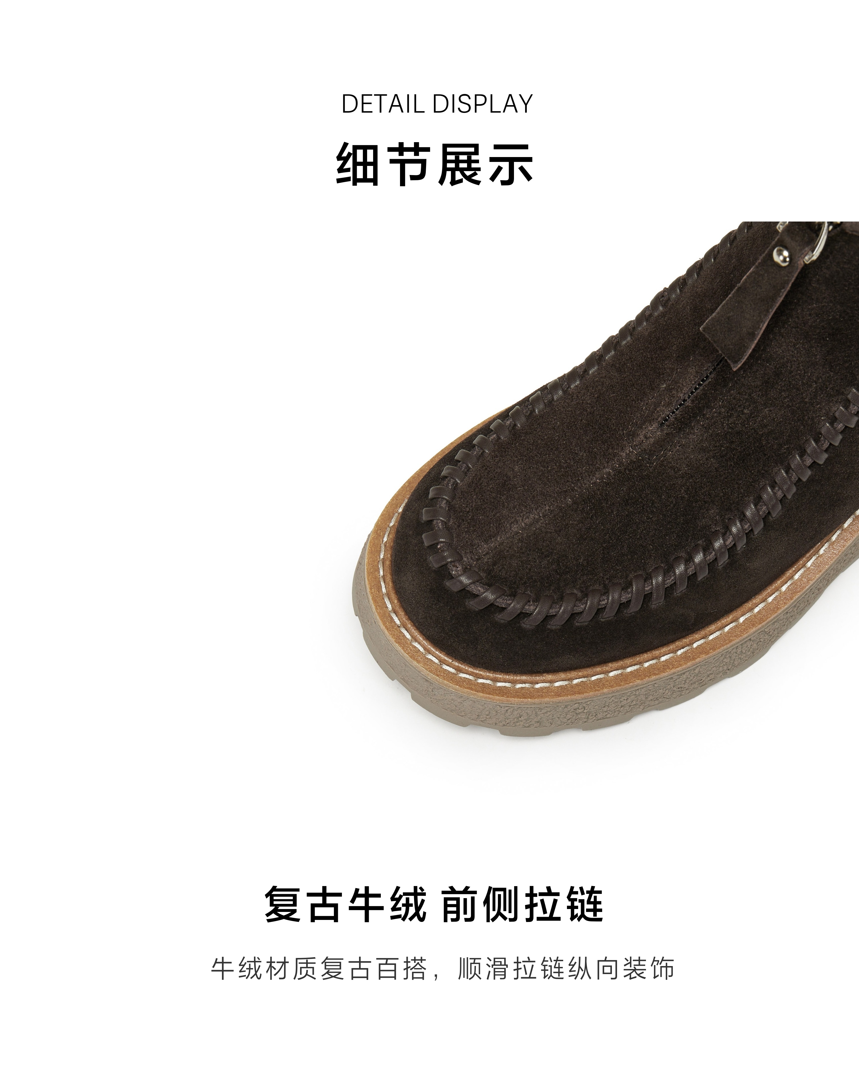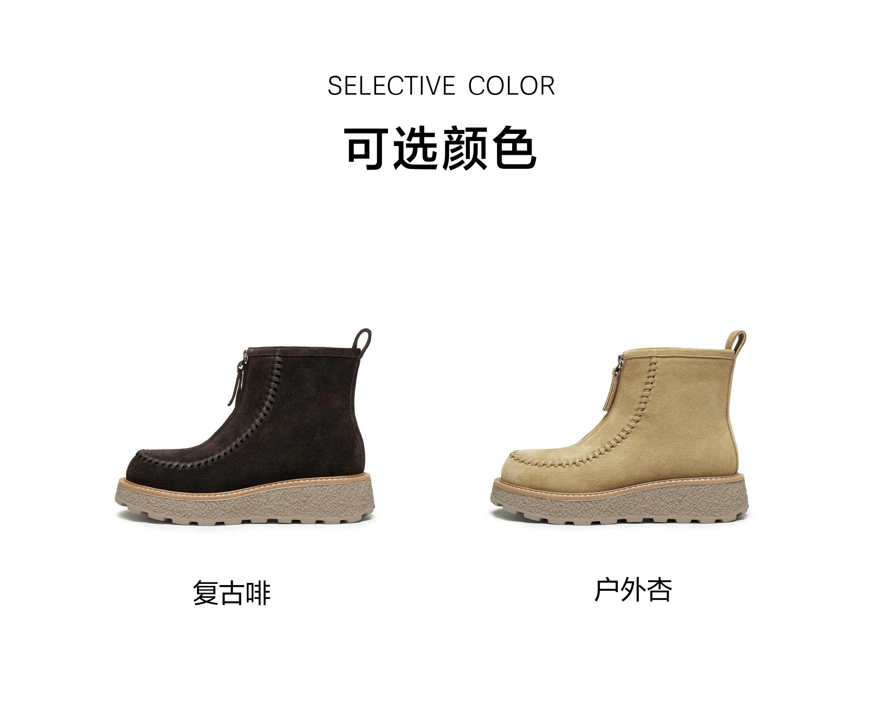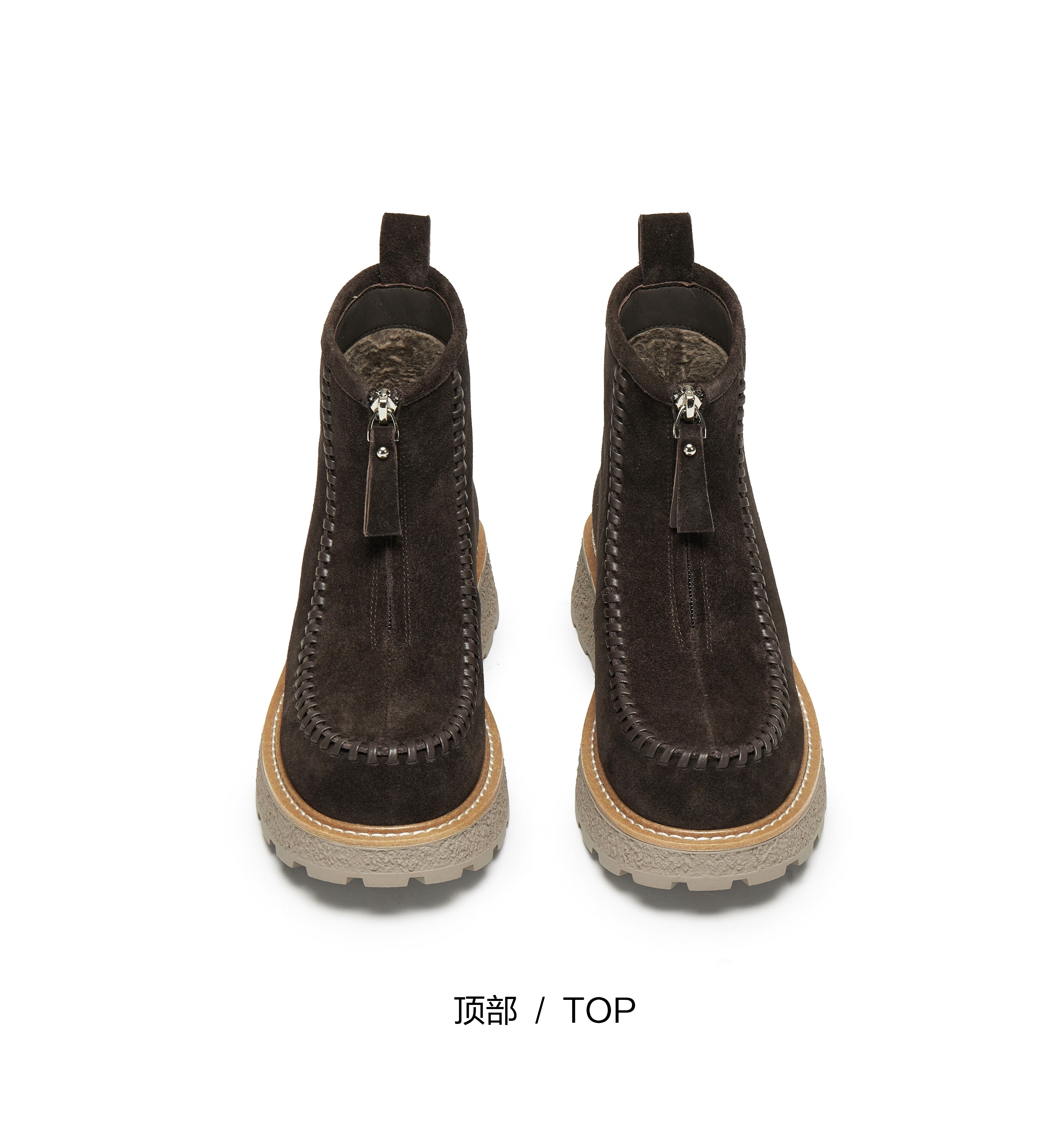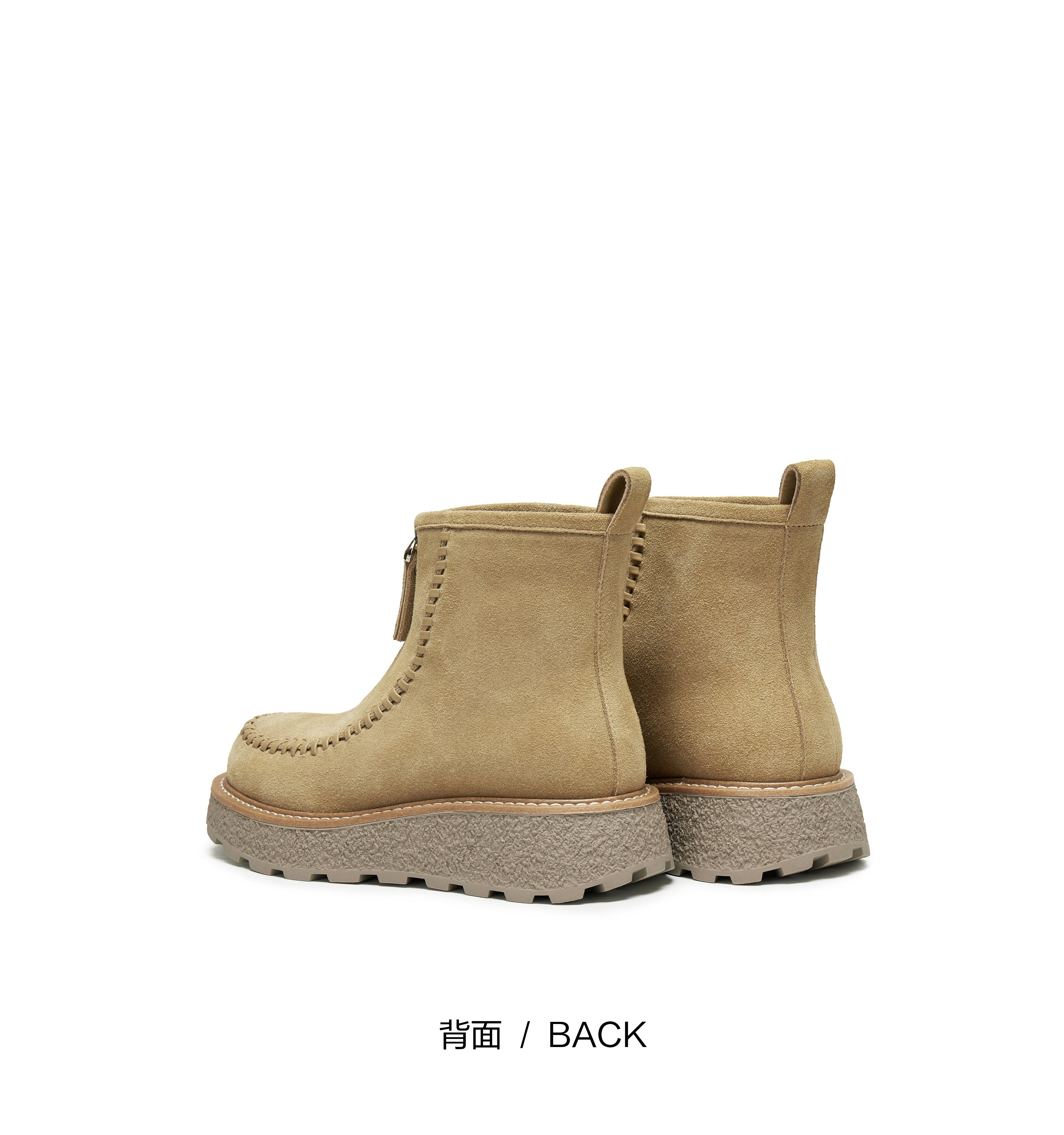 | 鞋底材质:橡胶底 | 靴筒内里材质:织物 | 内增高:无 | 鞋面材质:牛剖层革 | 闭合方式:前拉链 |