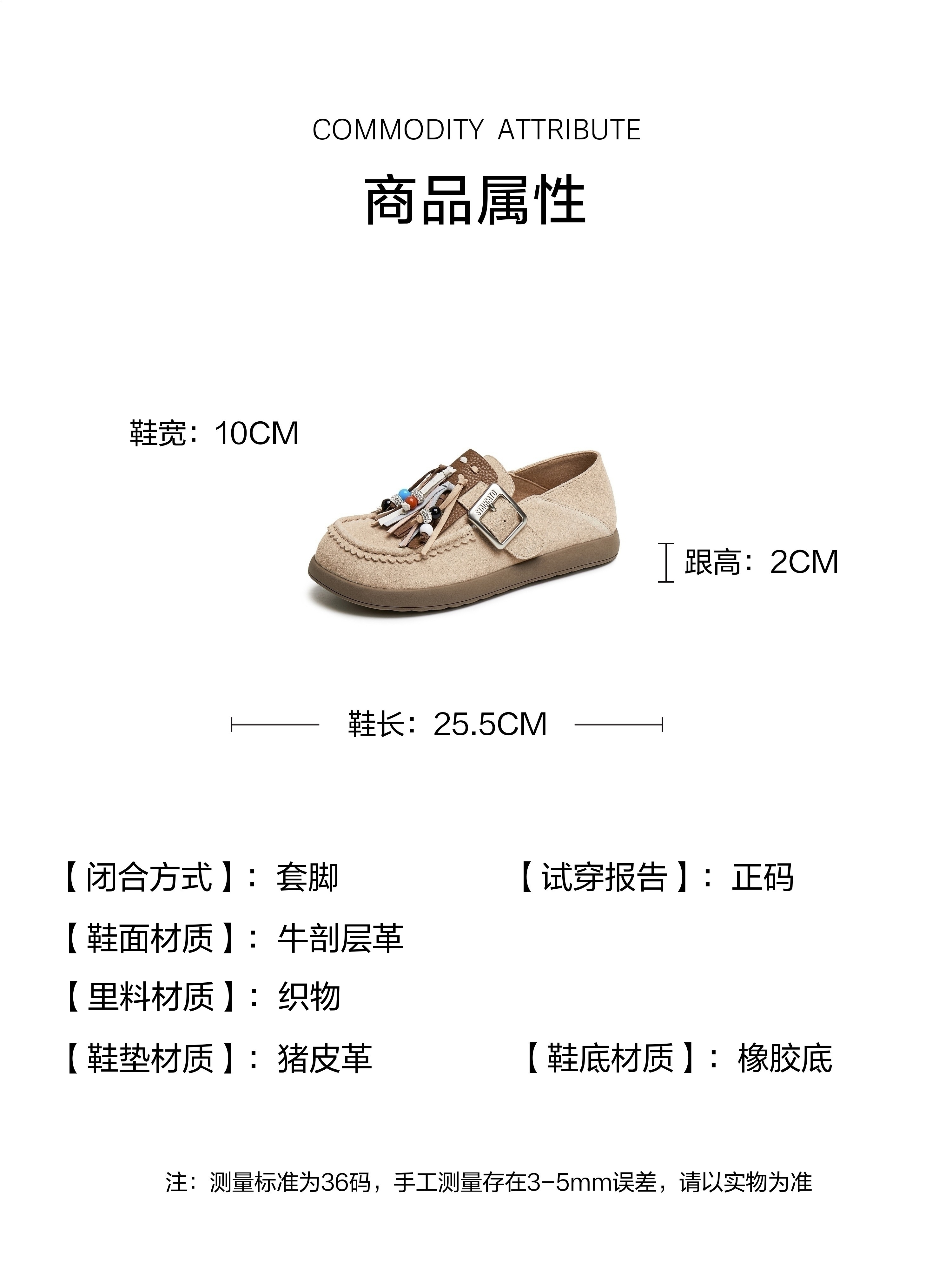 | 鞋帮:低帮 | 鞋底材质:橡胶底 | 内增高:无 | 鞋面材质:牛剖层革 | 闭合方式:套脚 |