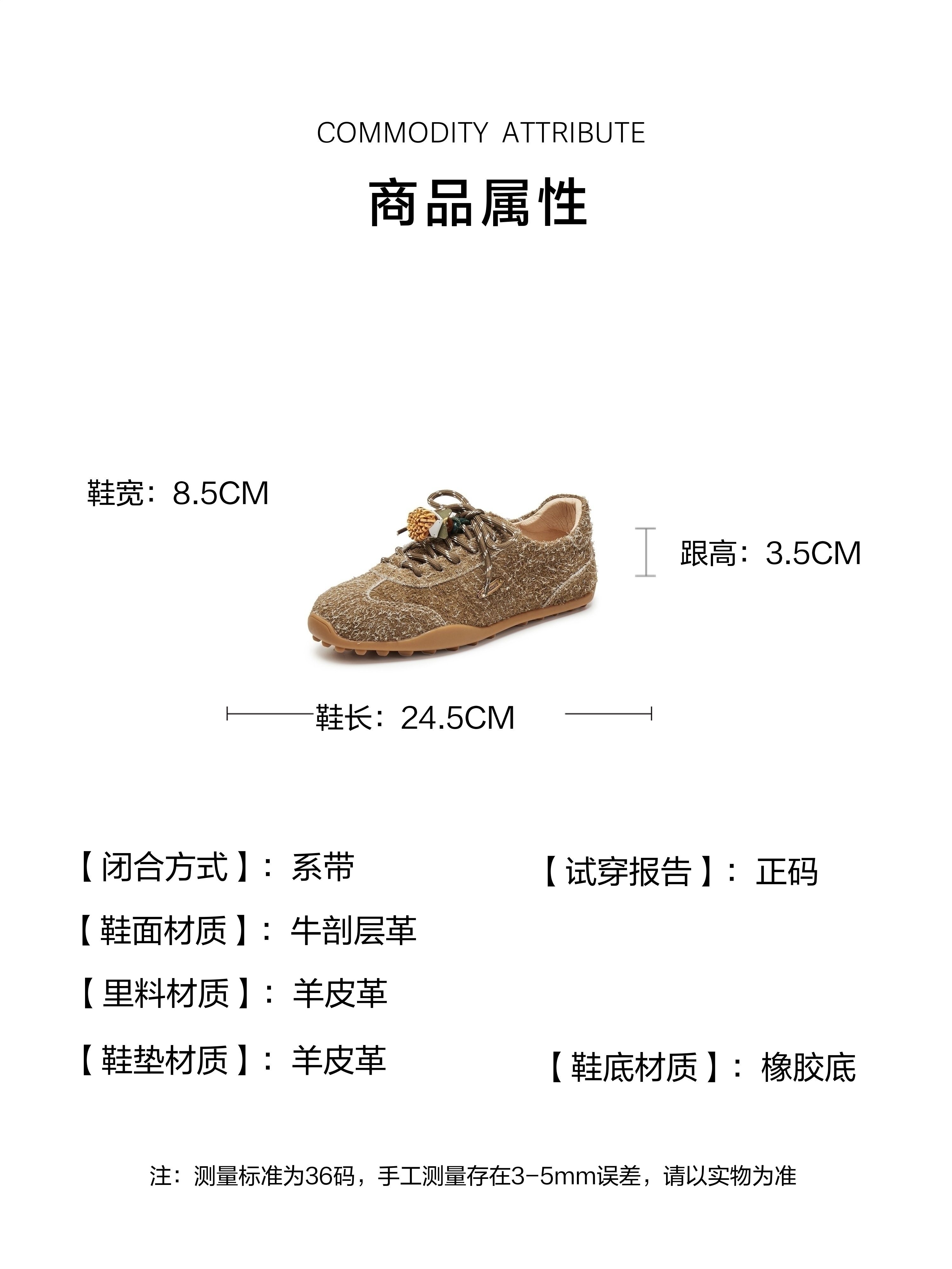 | 闭合方式:系带 | 风格:时尚潮流 | 色系:杏色 | 跟高数值:3.5CM | 配跟:无 |