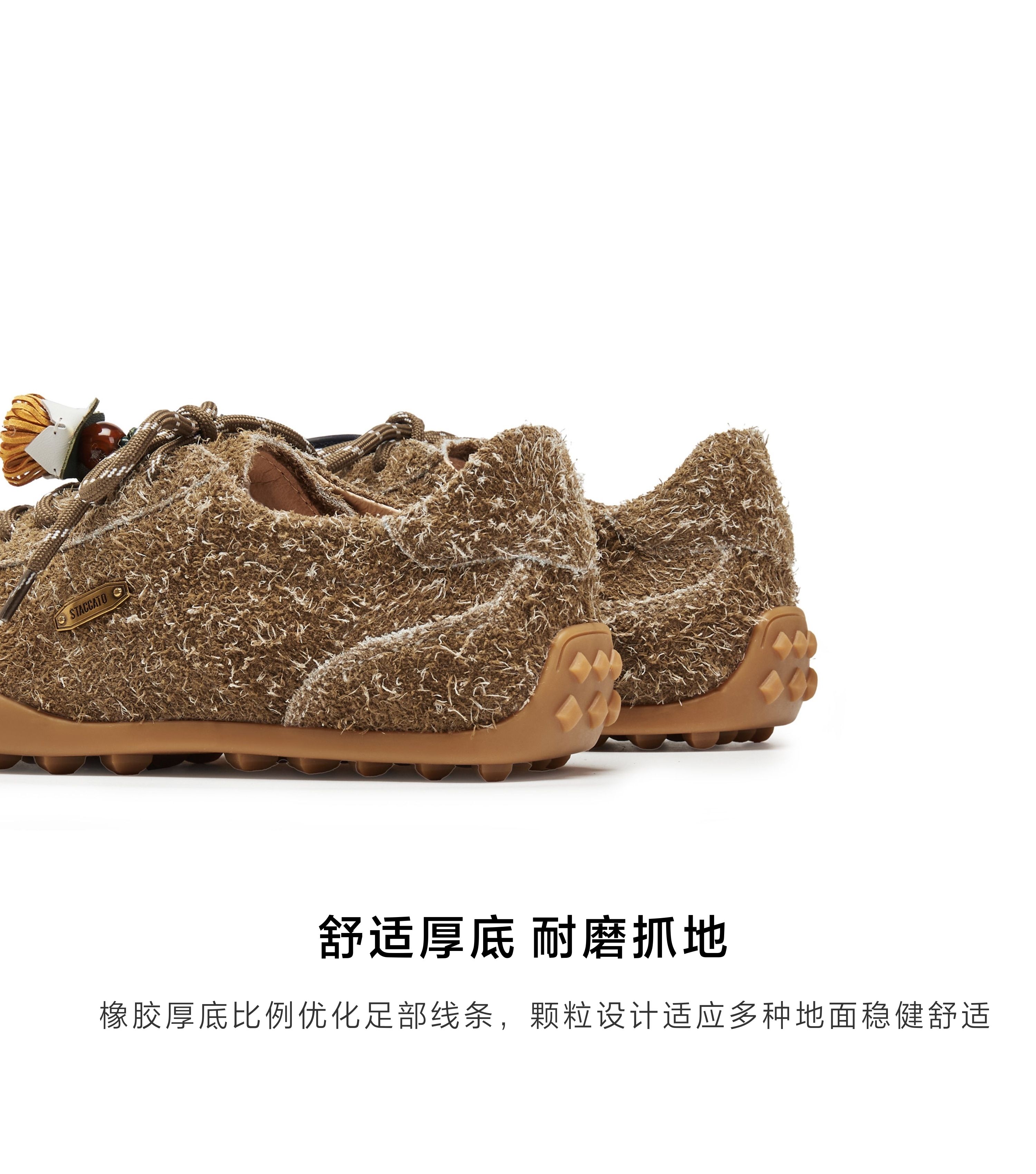 思加图(STACCATO),一个代表着年轻时尚、多元化的时装鞋履品牌,目标将时尚潮流带到女性的现实生活中。“STACCATO”是乐章上的音符,轻轻一点,谱出优美的旋律,为音乐带来多样性。穿上STACCATO单鞋的时代女性,踏出自信又轻松的脚步,犹如跳跃的音符,反映年轻与时尚的生活态度。目前品牌开设门店已超1100家,遍布中国、韩国、澳洲、新加坡、马来西亚、罗马尼亚、沙特阿拉伯等地。