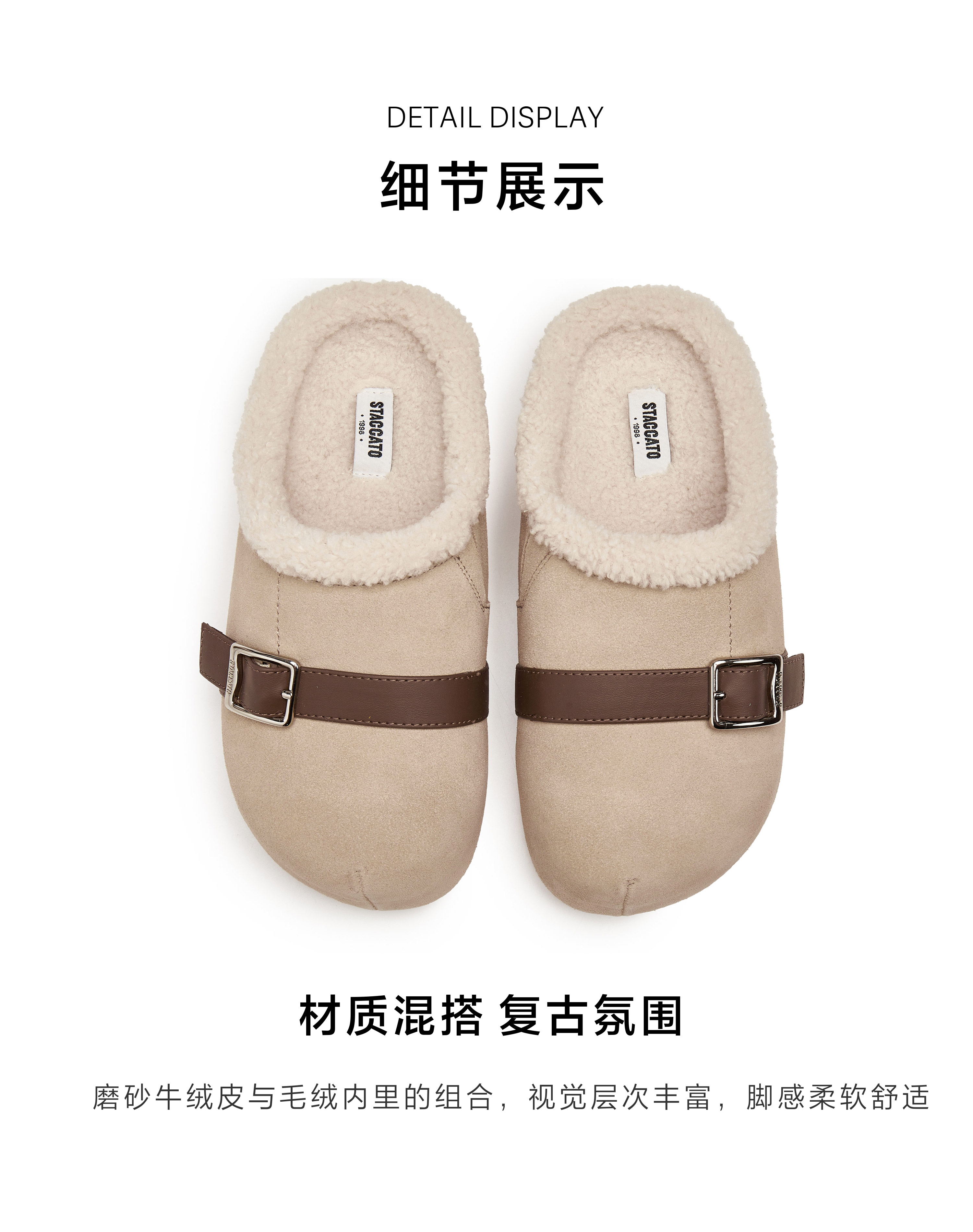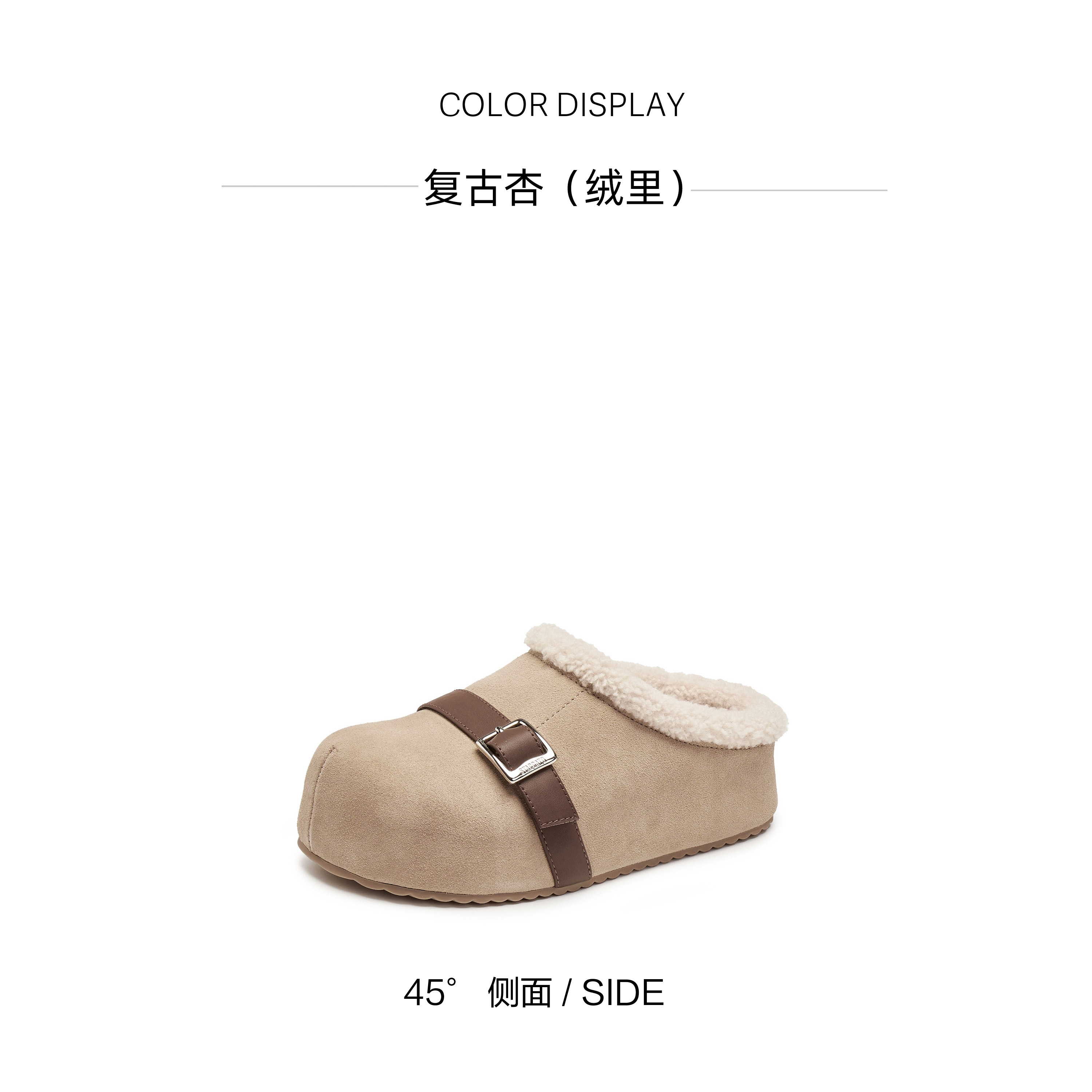 | 风格:时尚潮流 | 鞋面内里材质:人造毛绒 | 色系:杏色 | 跟高数值:4CM | 配跟:无 |