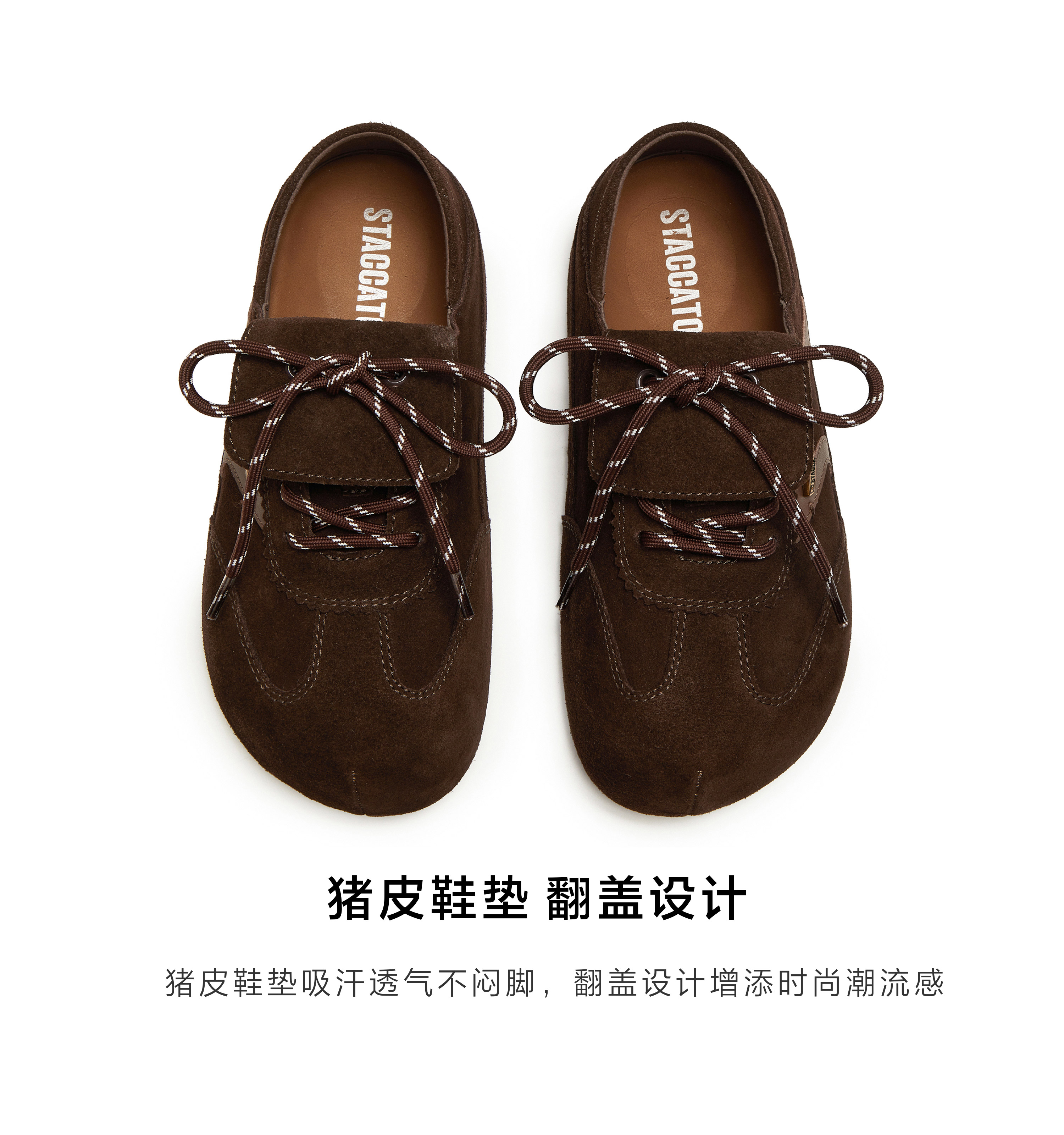 思加图(STACCATO),一个代表着年轻时尚、多元化的时装鞋履品牌,目标将时尚潮流带到女性的现实生活中。“STACCATO”是乐章上的音符,轻轻一点,谱出优美的旋律,为音乐带来多样性。穿上STACCATO单鞋的时代女性,踏出自信又轻松的脚步,犹如跳跃的音符,反映年轻与时尚的生活态度。目前品牌开设门店已超1100家,遍布中国、韩国、澳洲、新加坡、马来西亚、罗马尼亚、沙特阿拉伯等地。