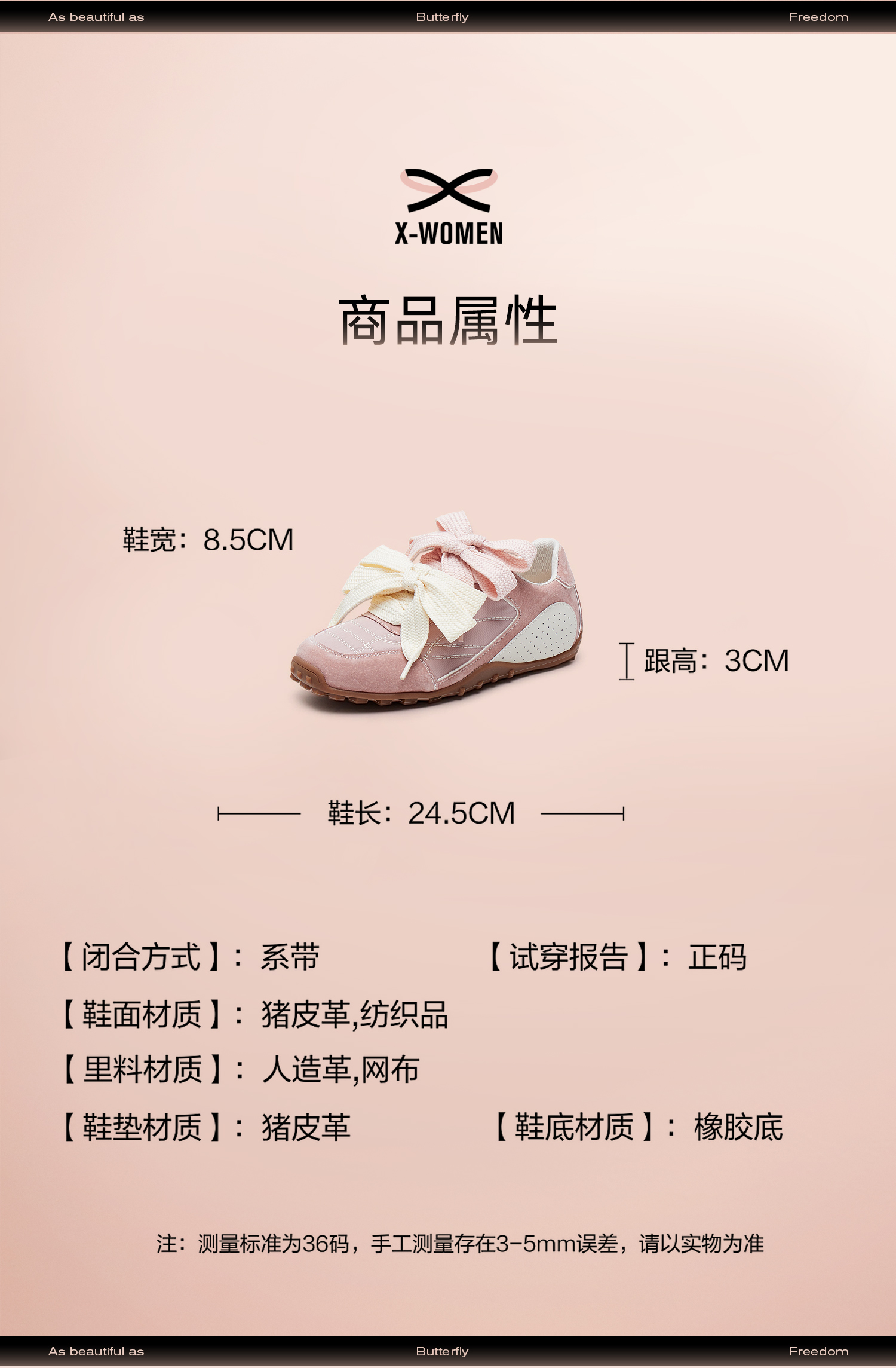 | 鞋面材质:纺织品猪皮革 | 流行元素:蝴蝶结 | 参考鞋长(女):24.5CM | 参考鞋宽(女):8.5CM | 闭合方式:系带 |
