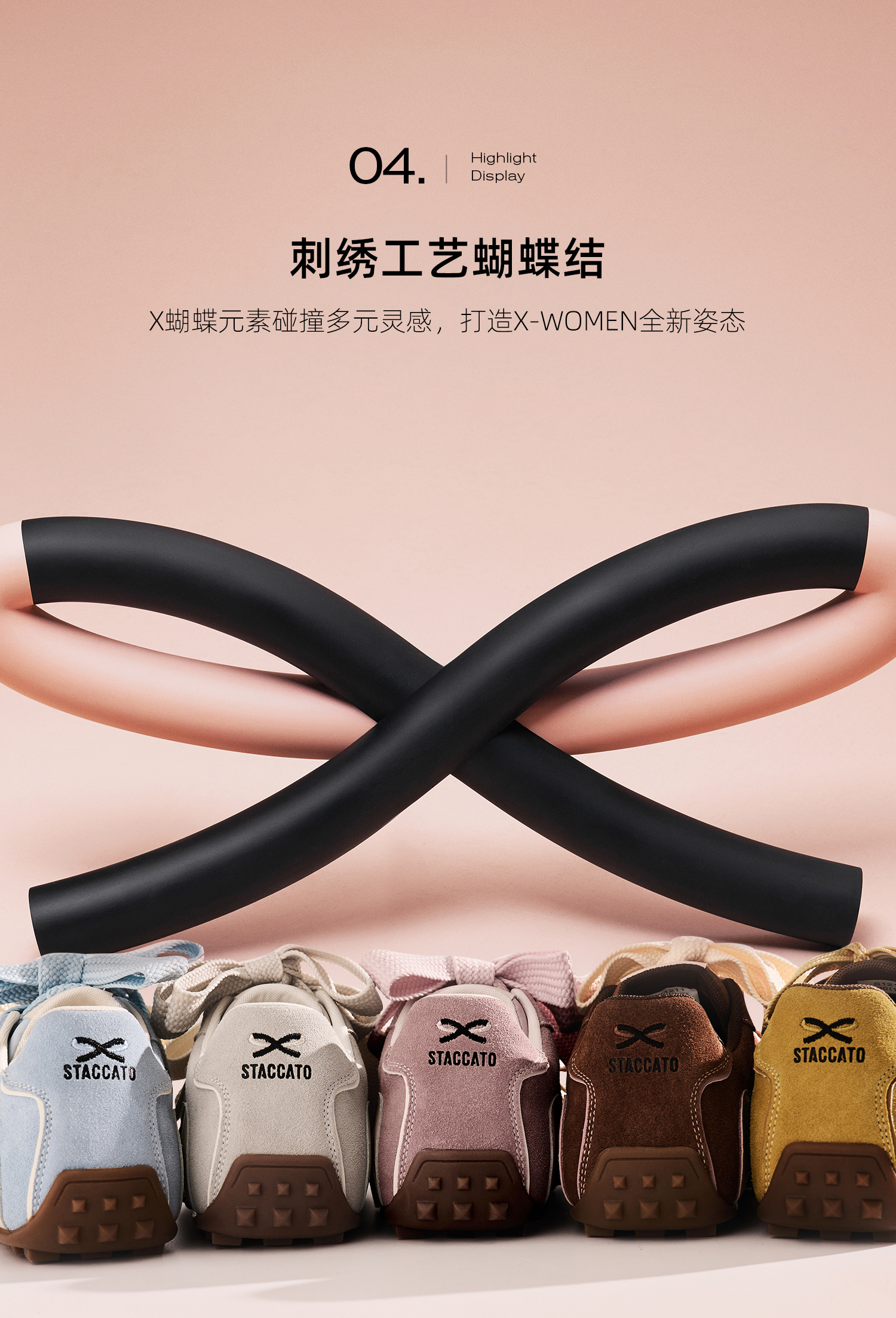 思加图(STACCATO),一个代表着年轻时尚、多元化的时装鞋履品牌,目标将时尚潮流带到女性的现实生活中。“STACCATO”是乐章上的音符,轻轻一点,谱出优美的旋律,为音乐带来多样性。穿上STACCATO单鞋的时代女性,踏出自信又轻松的脚步,犹如跳跃的音符,反映年轻与时尚的生活态度。目前品牌开设门店已超1100家,遍布中国、韩国、澳洲、新加坡、马来西亚、罗马尼亚、沙特阿拉伯等地。