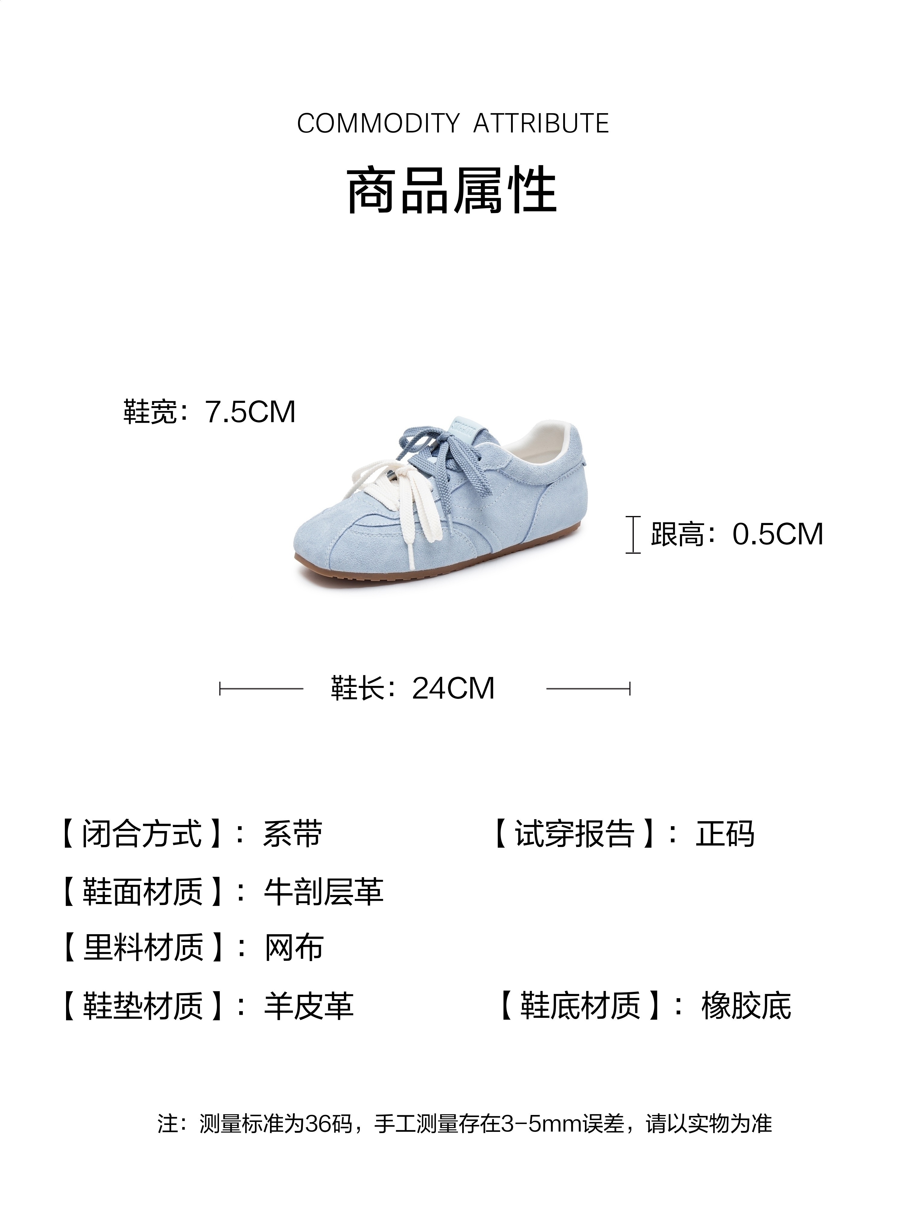 | 鞋跟形状:平底 | 鞋面材质:牛剖层革 | 参考鞋长(女):24CM | 参考鞋宽(女):7.5CM | 闭合方式:系带 |