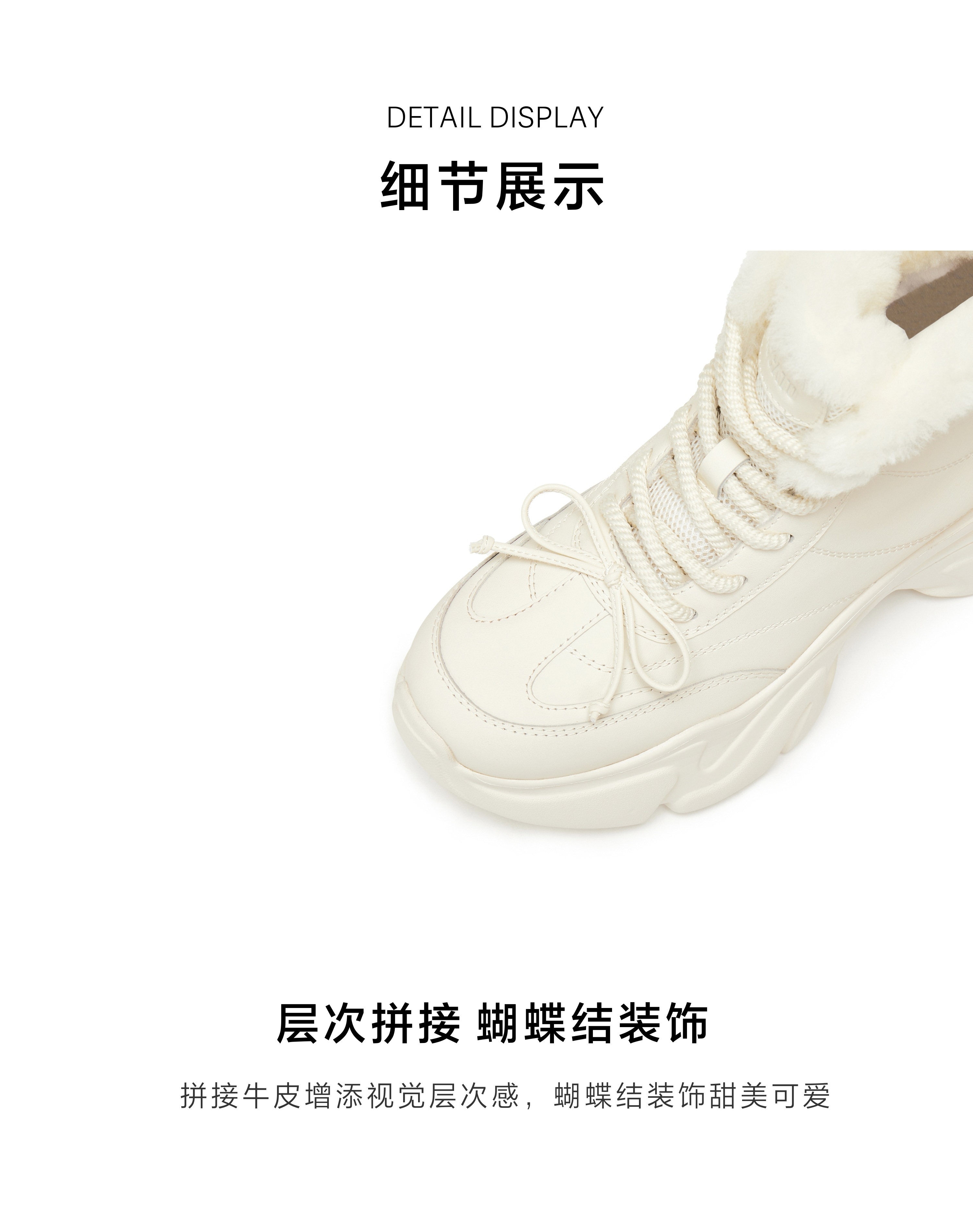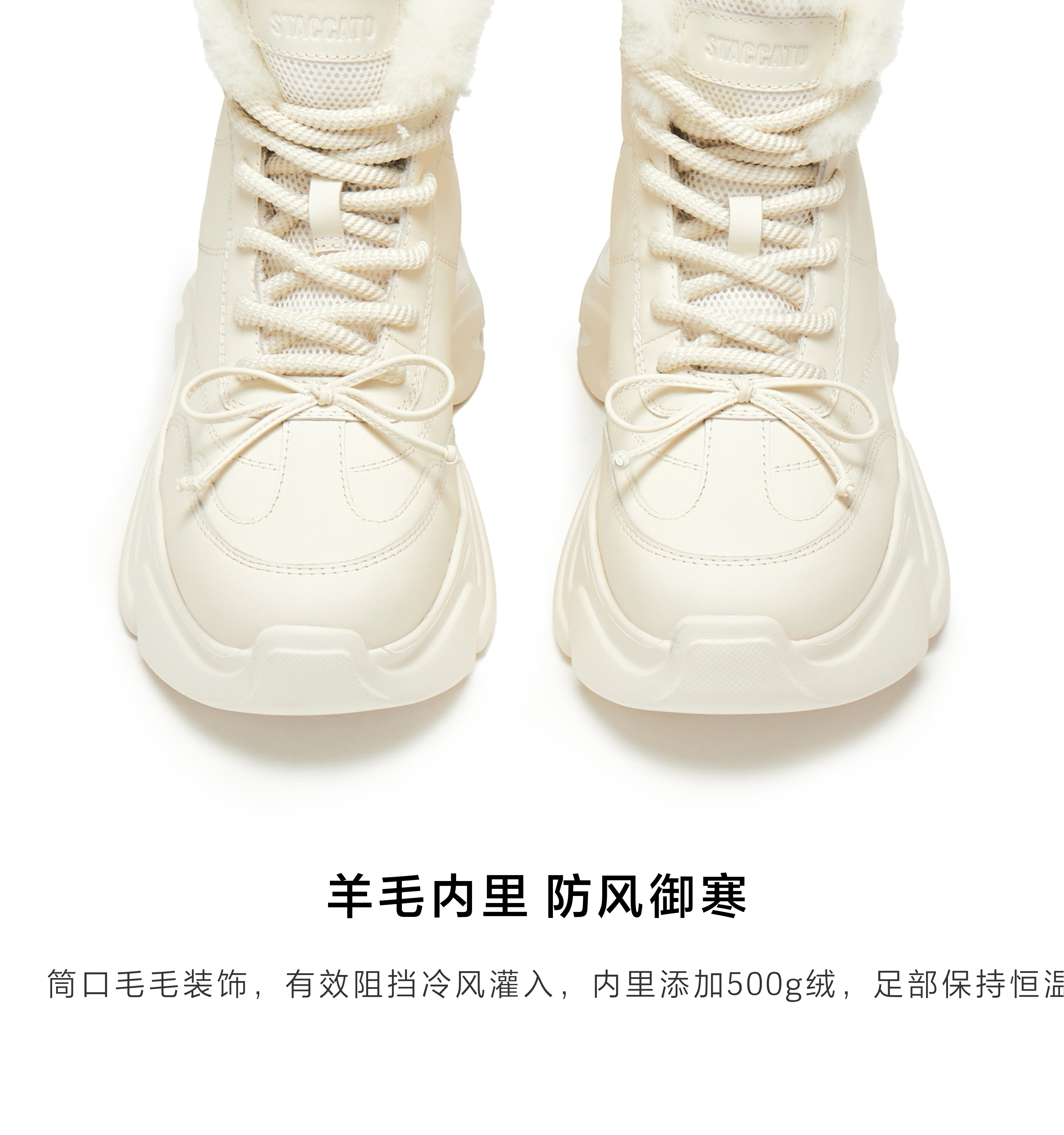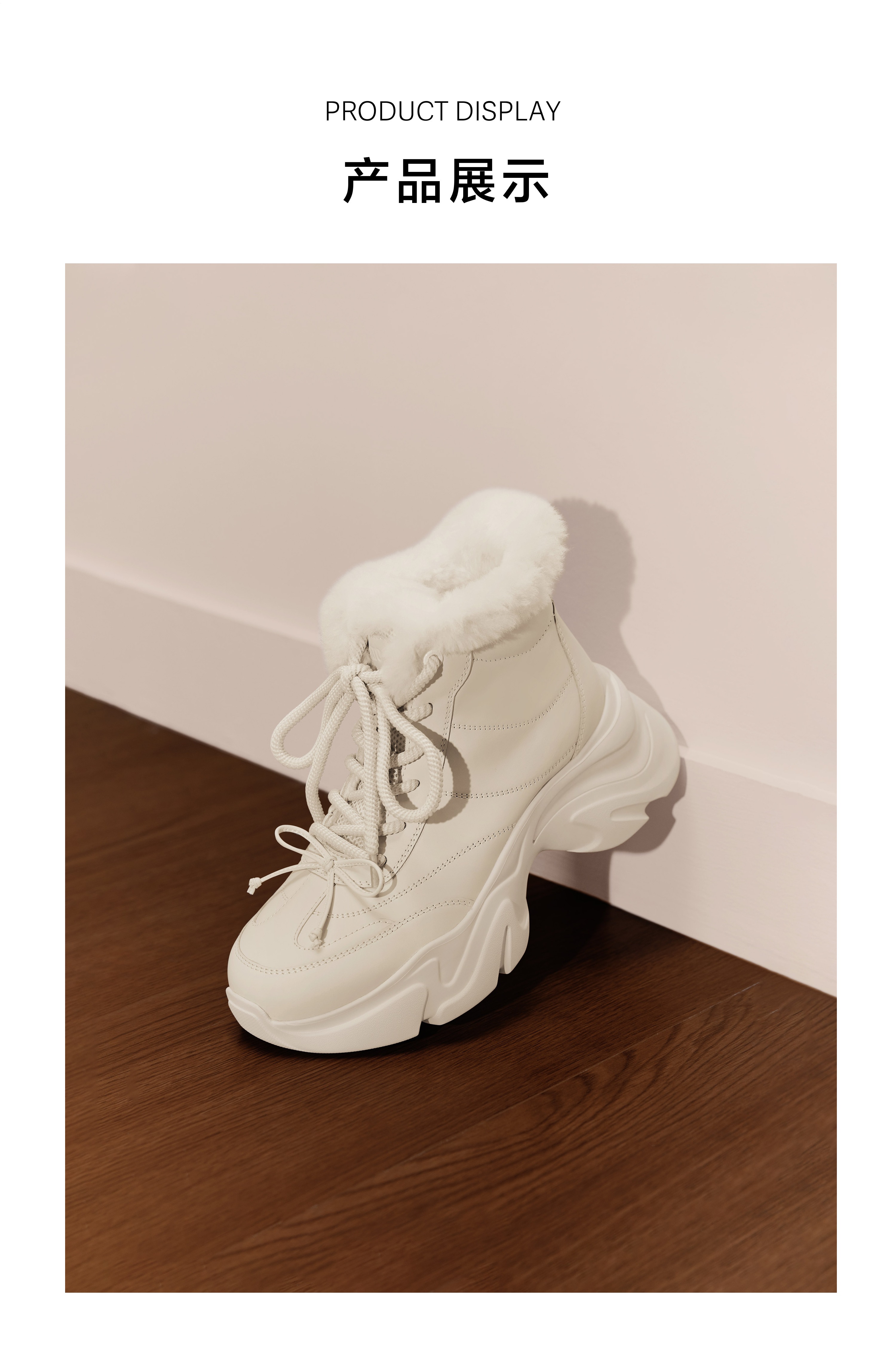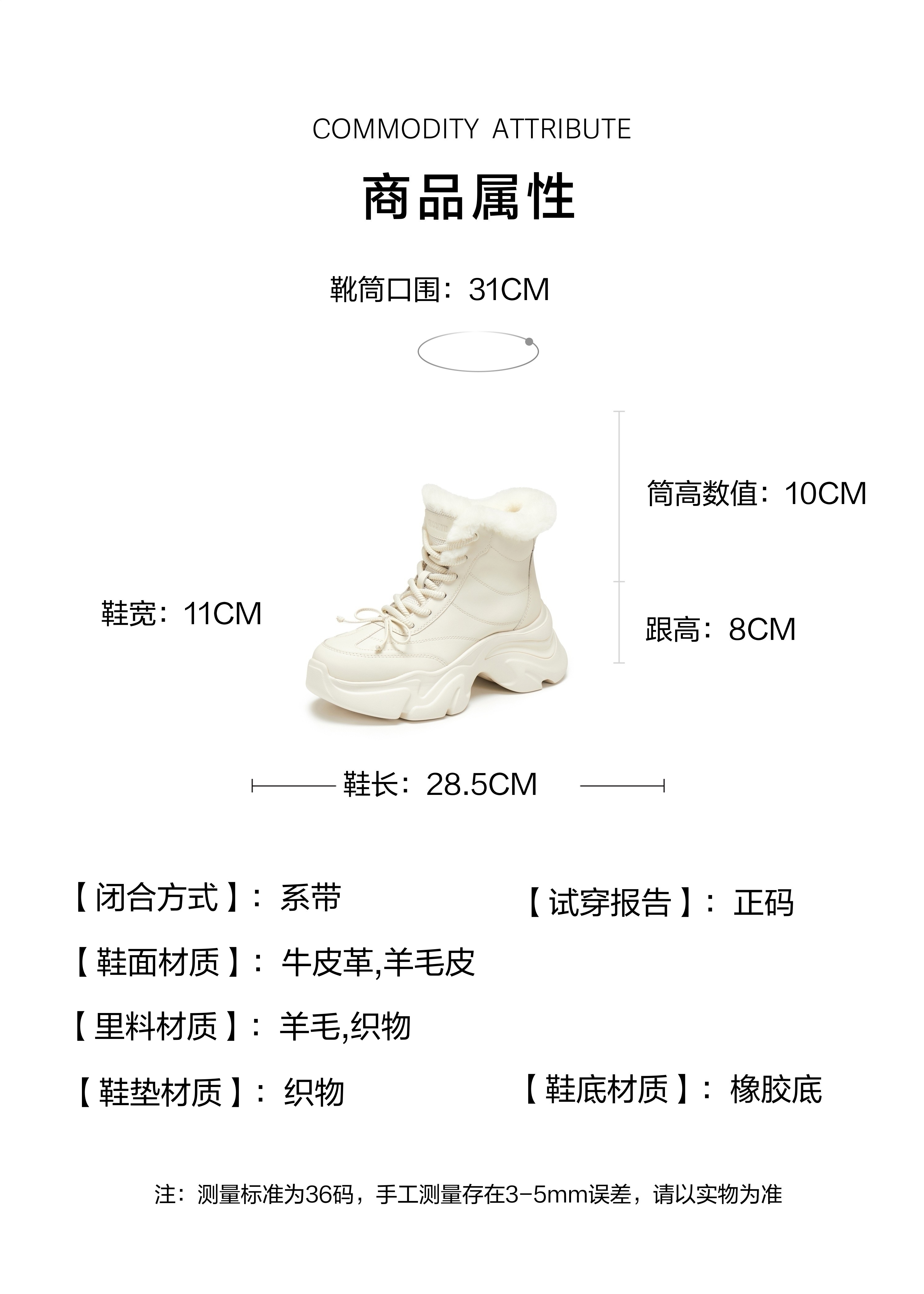 | 参考鞋宽(女):11CM | 风格:时尚潮流 | 鞋面内里材质:织物羊毛 | 色系:米色 | 跟高数值:8CM |