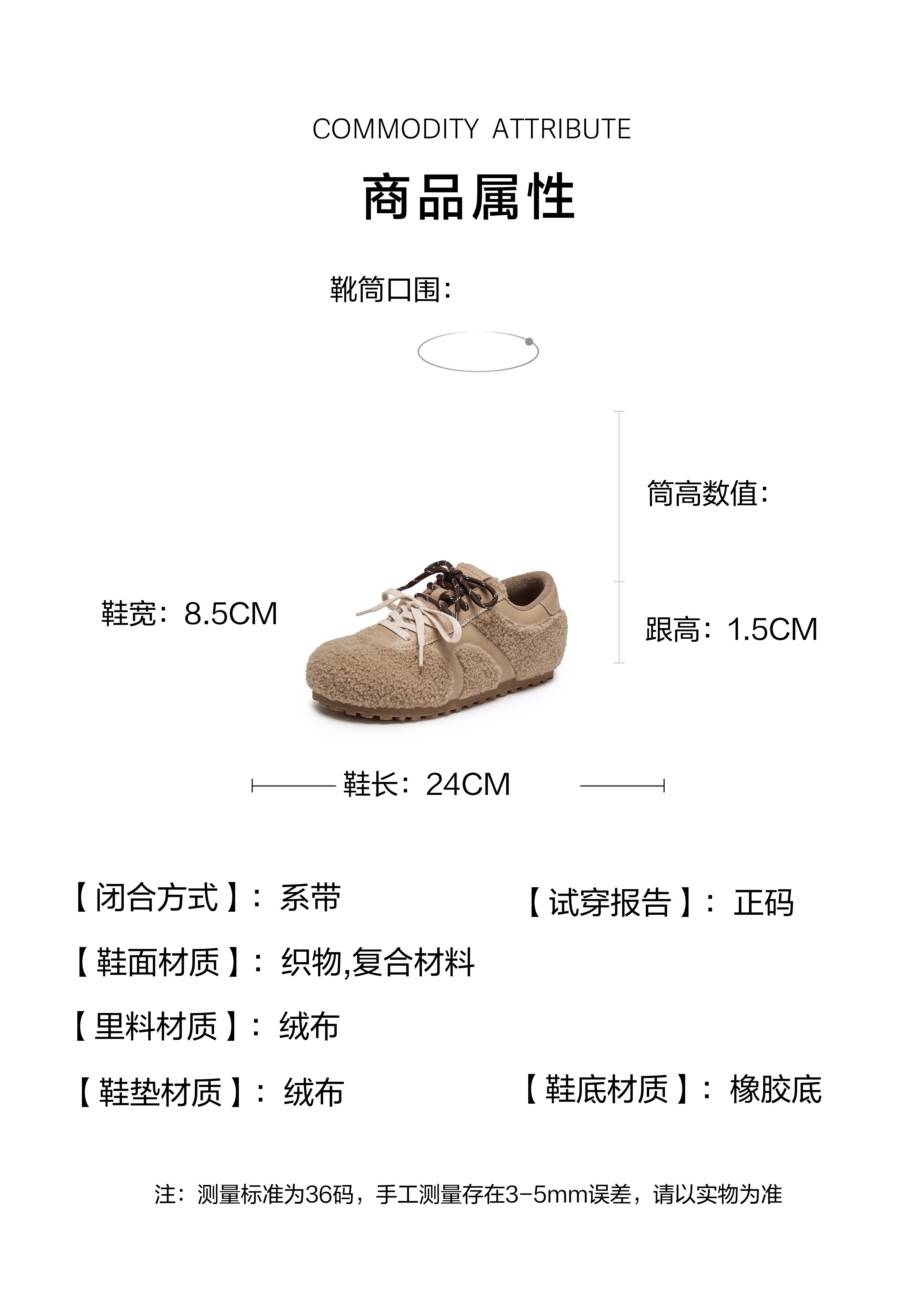 | 鞋帮:低帮 | 鞋头款式:圆头 | 鞋底材质:橡胶底 | 内增高:无 | 鞋跟形状:平底 |