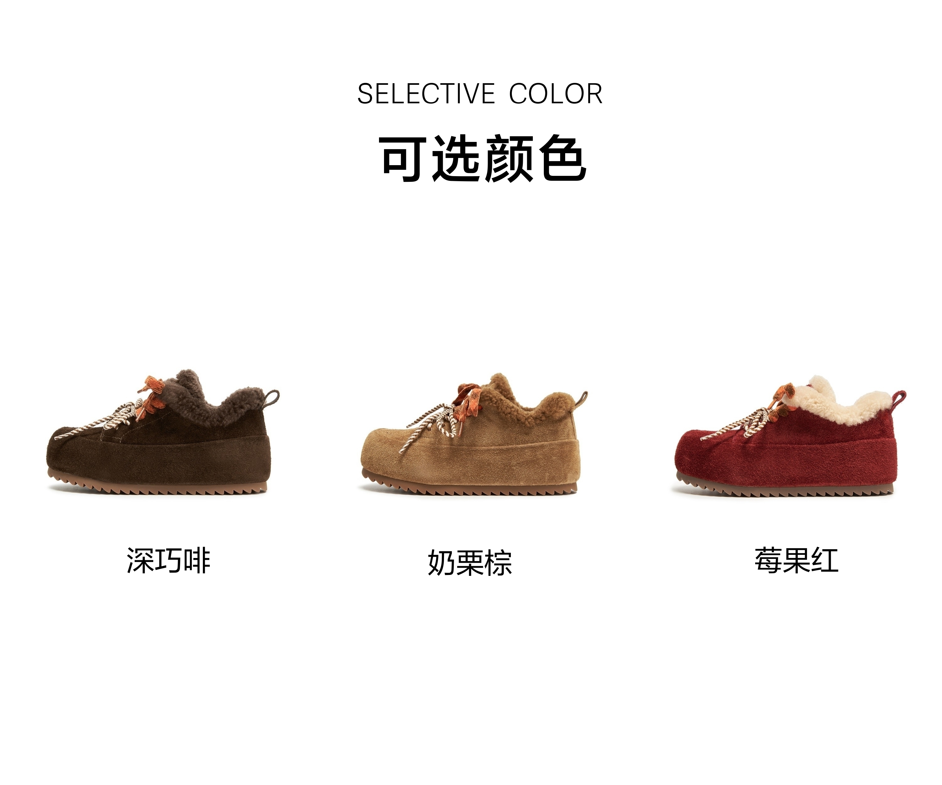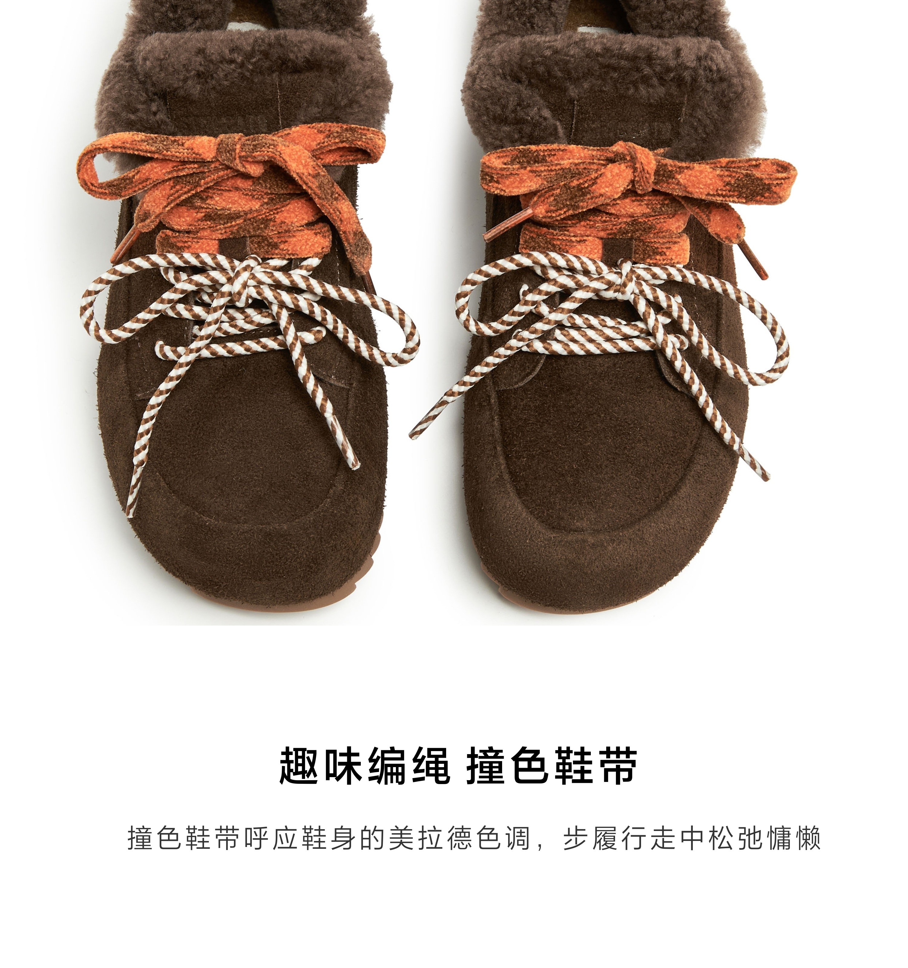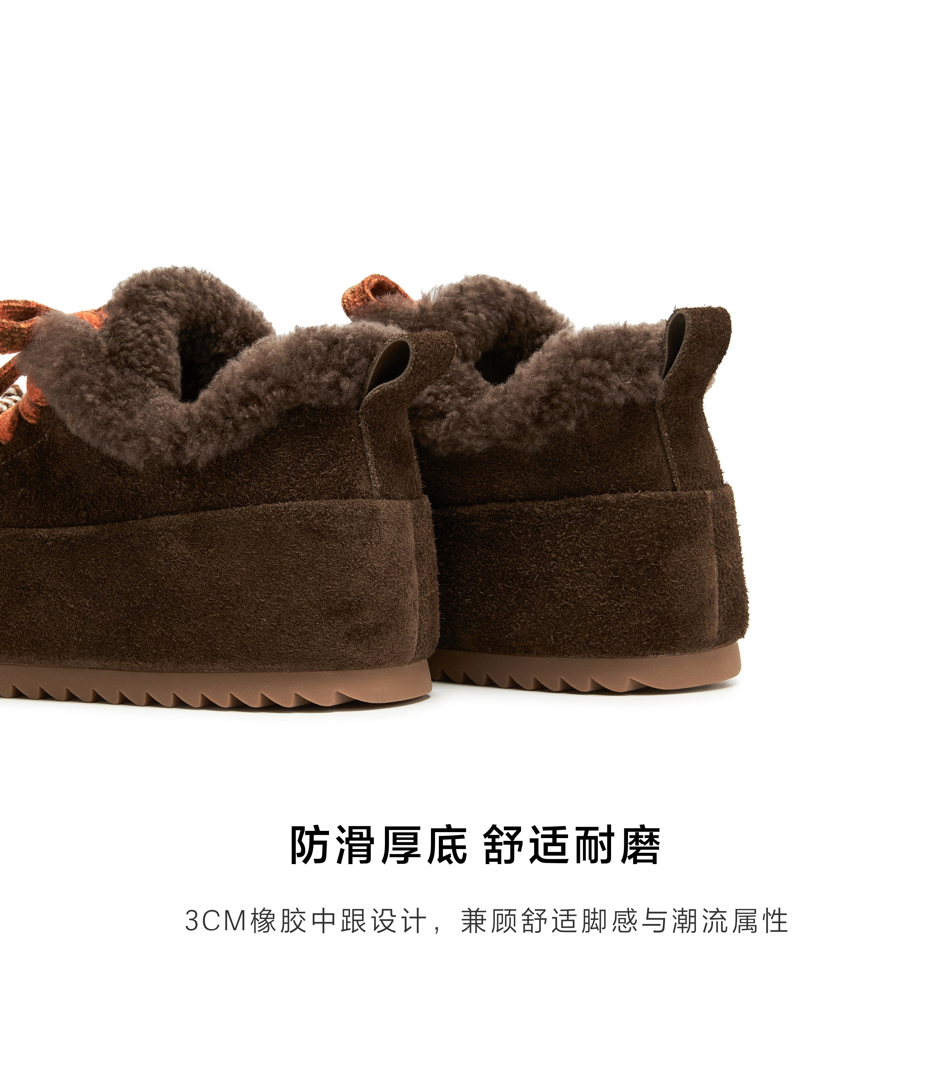 | 风格:时尚潮流 | 鞋面内里材质:人造毛绒 | 跟高数值:3CM | 色系:咖啡色 | 适用人群:成人 |