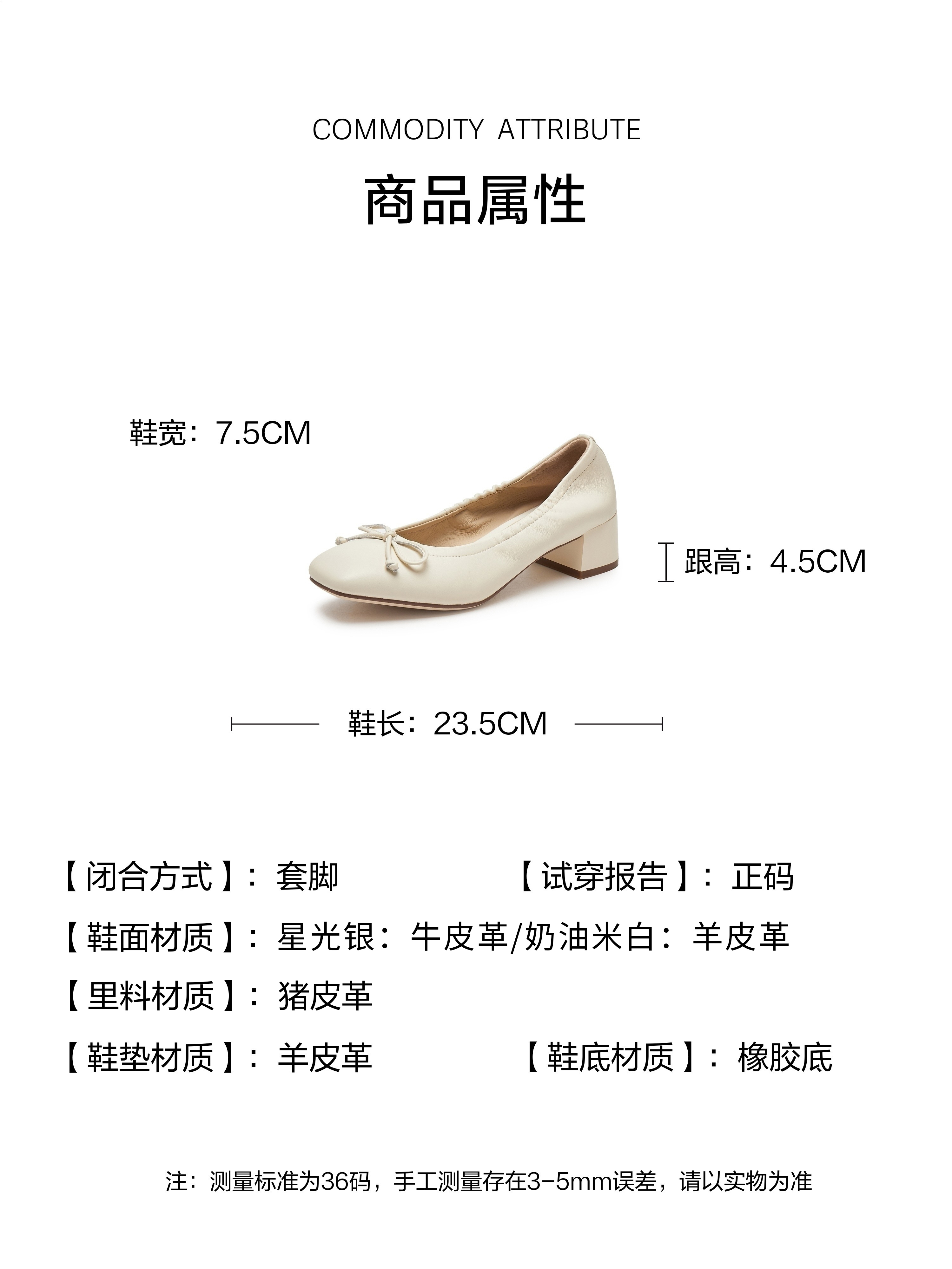 | 鞋类流行款式:浅口鞋 | 鞋头款式:方头 | 执行标准:舒适上班鞋Q/LR001-2023 | 跟高范围:中跟鞋(3-5CM) | 鞋面图案:纯色 |