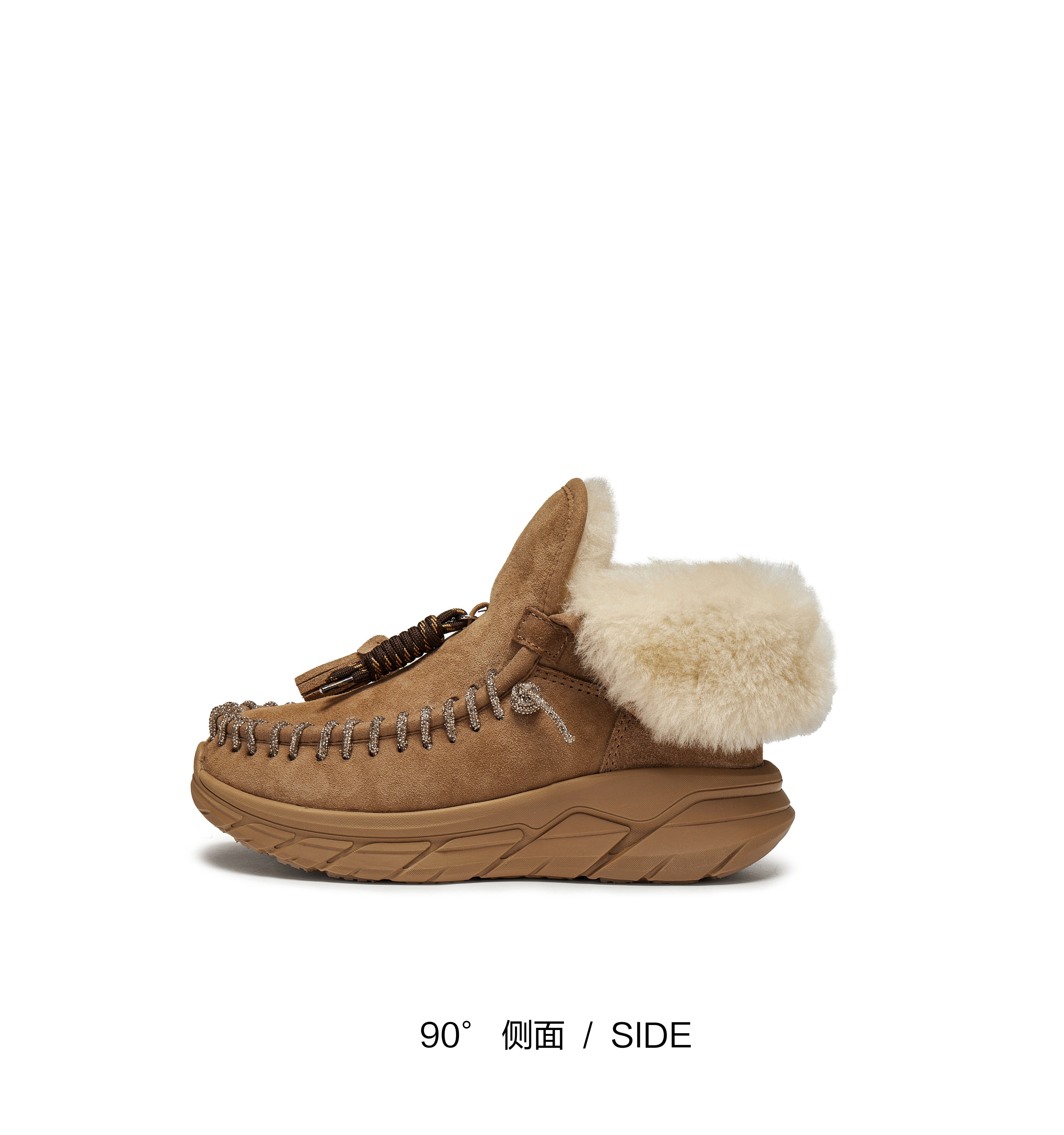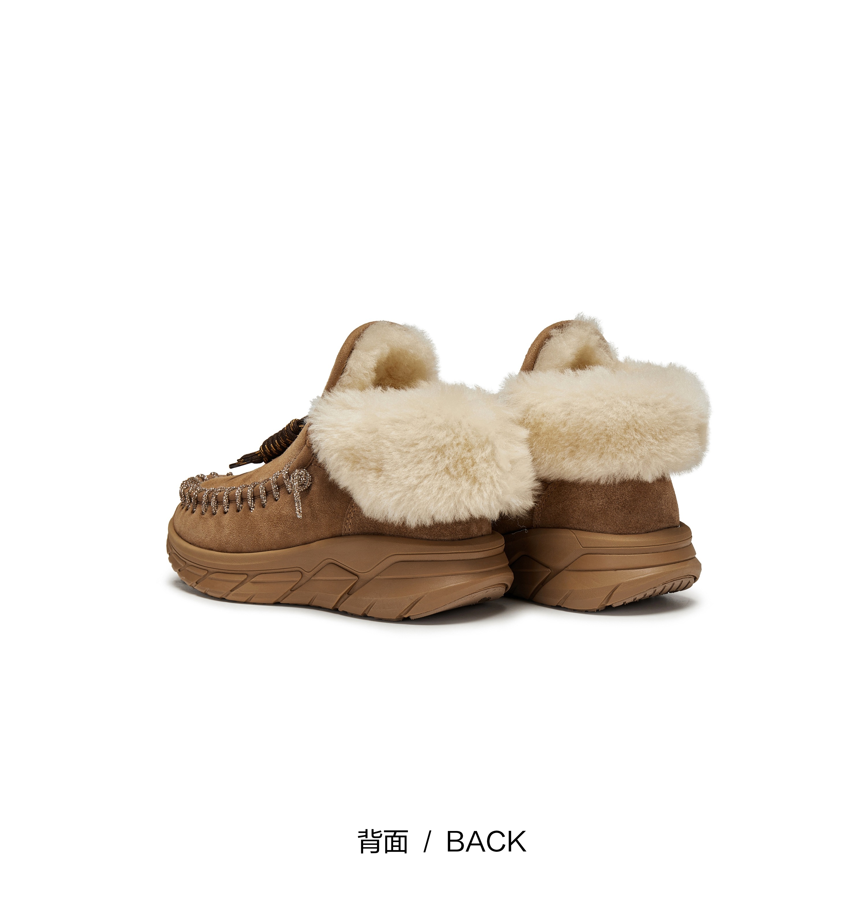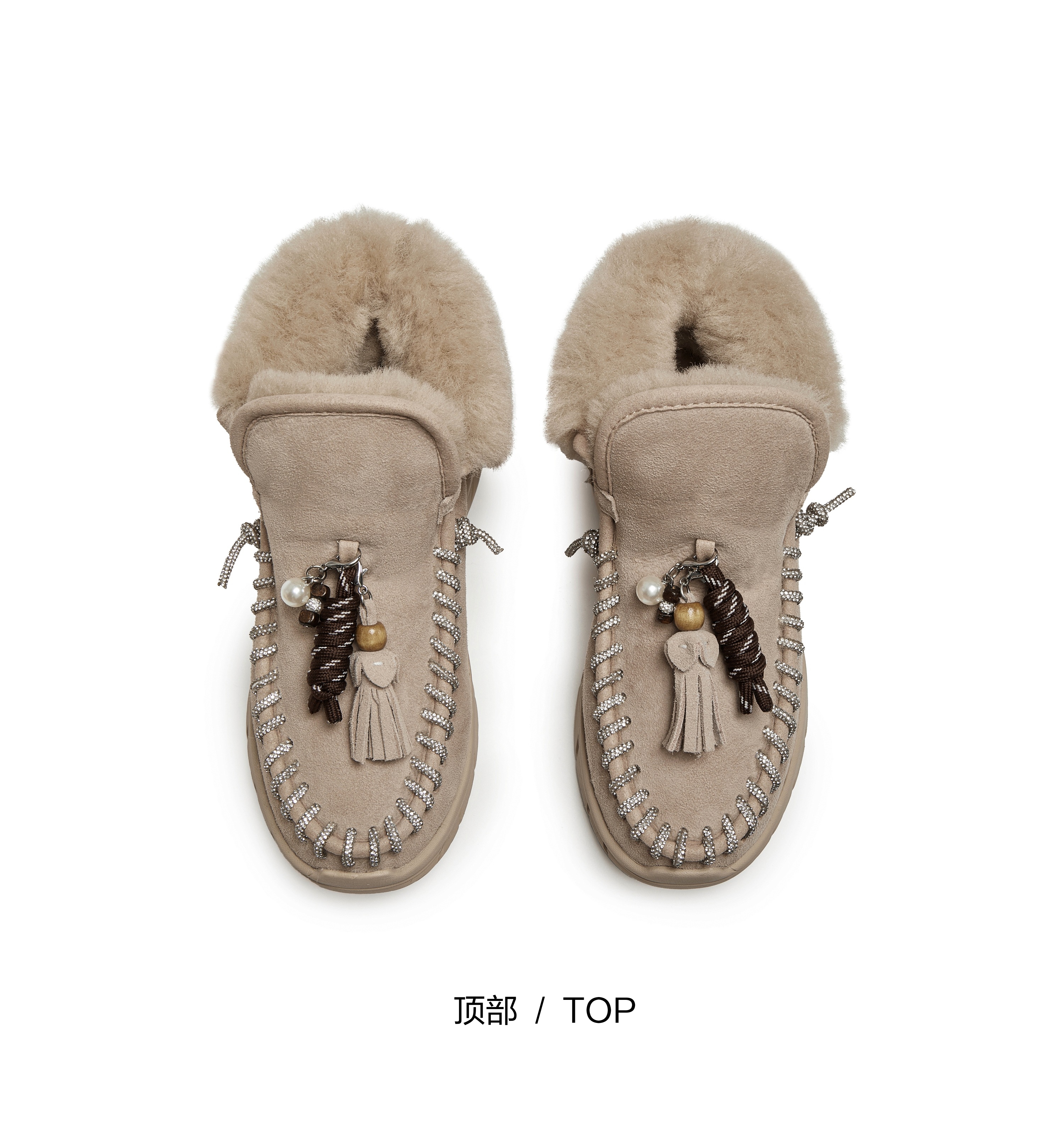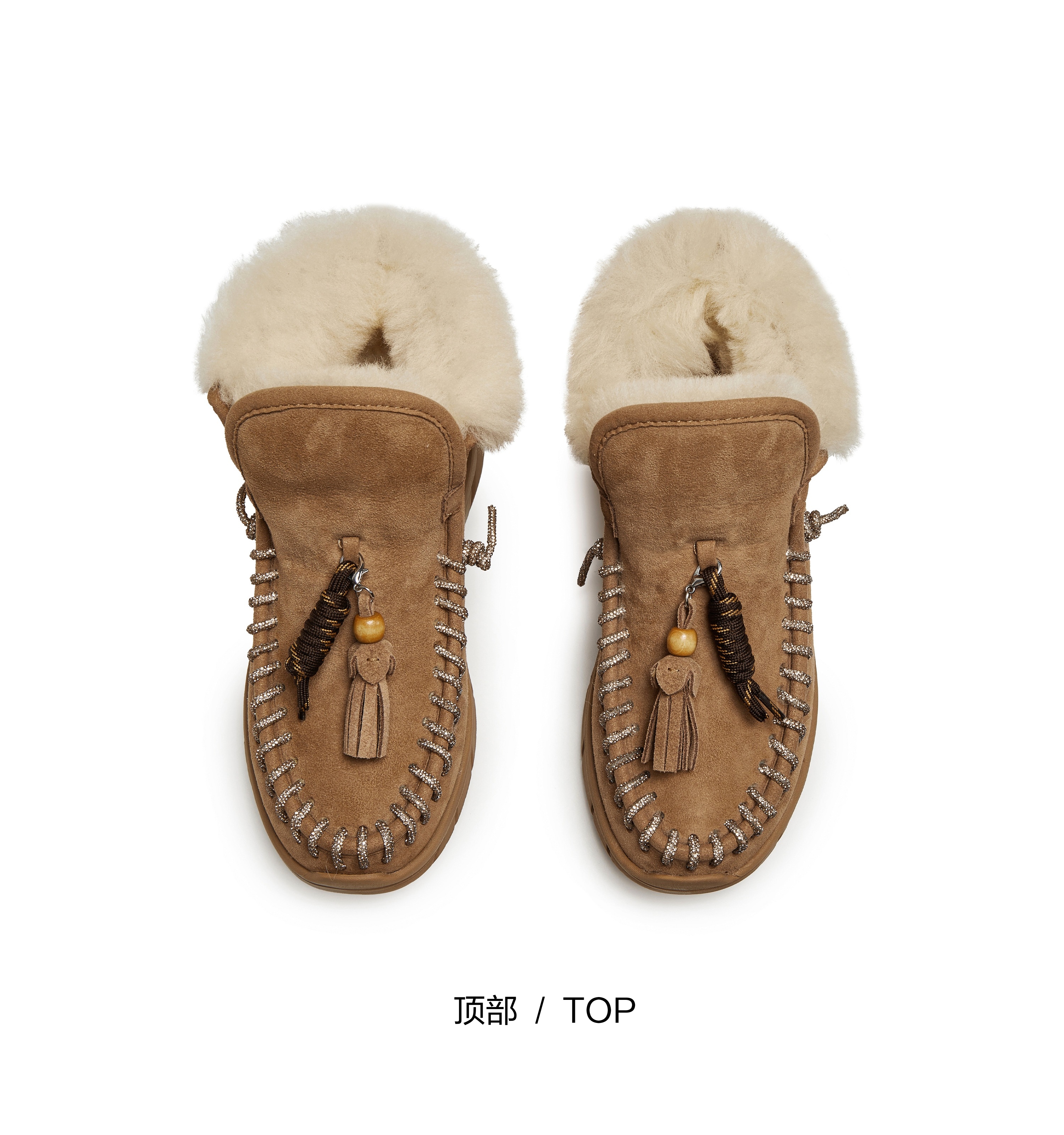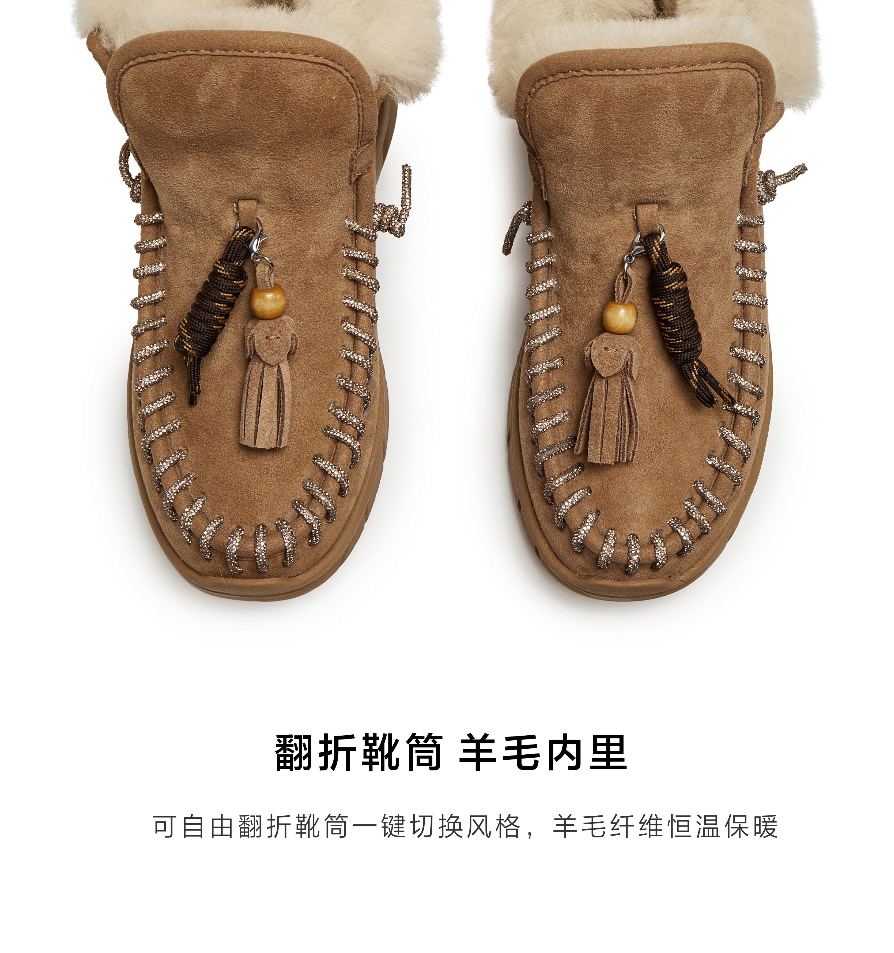 | 帮面材质:羊毛革牛剖层革 | 配跟:无 | 靴筒口围:30CM | 上市时间:2025年冬季 | 鞋类流行款式:雪地靴 |