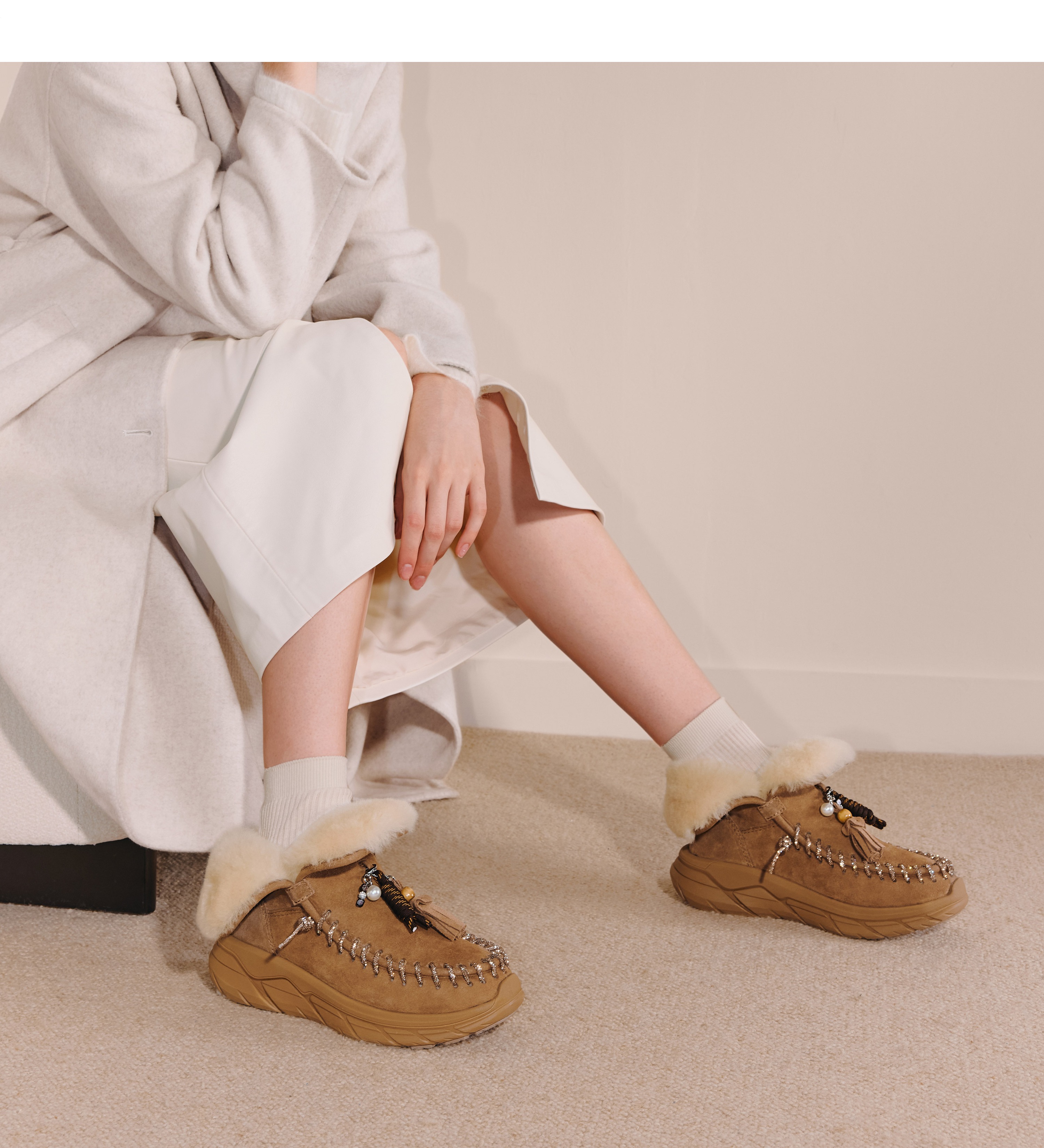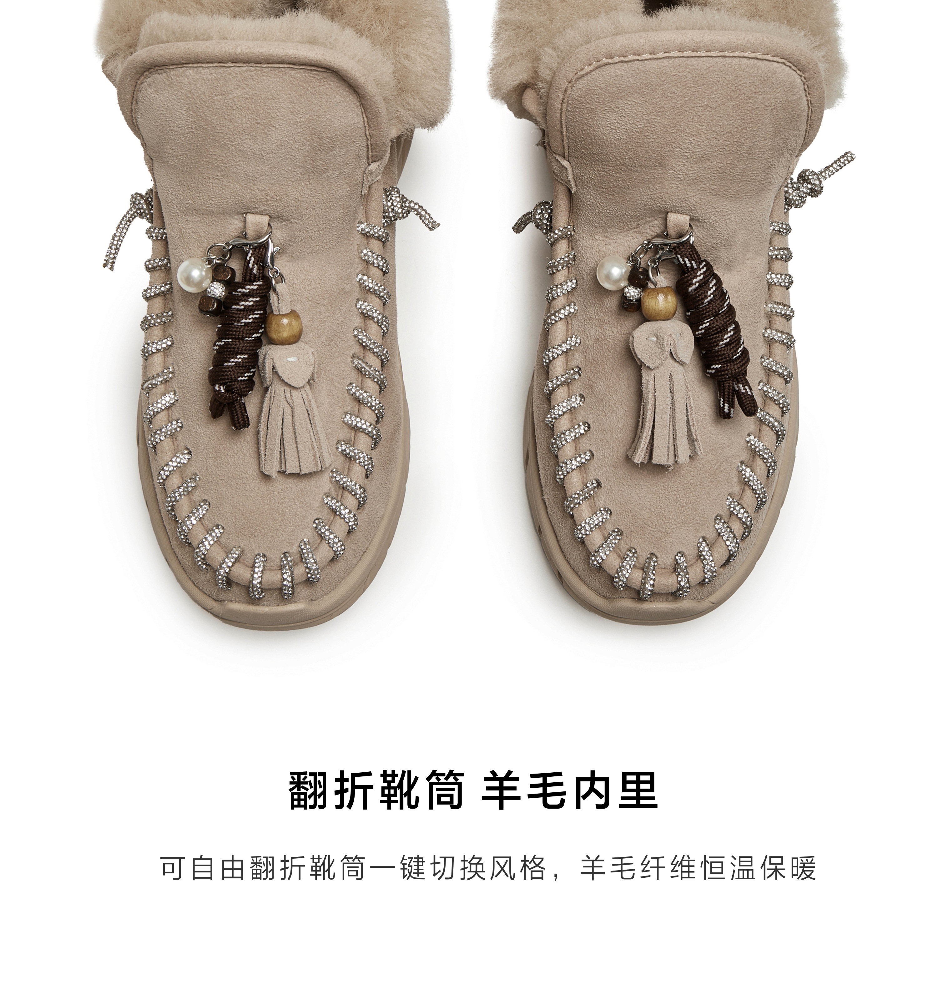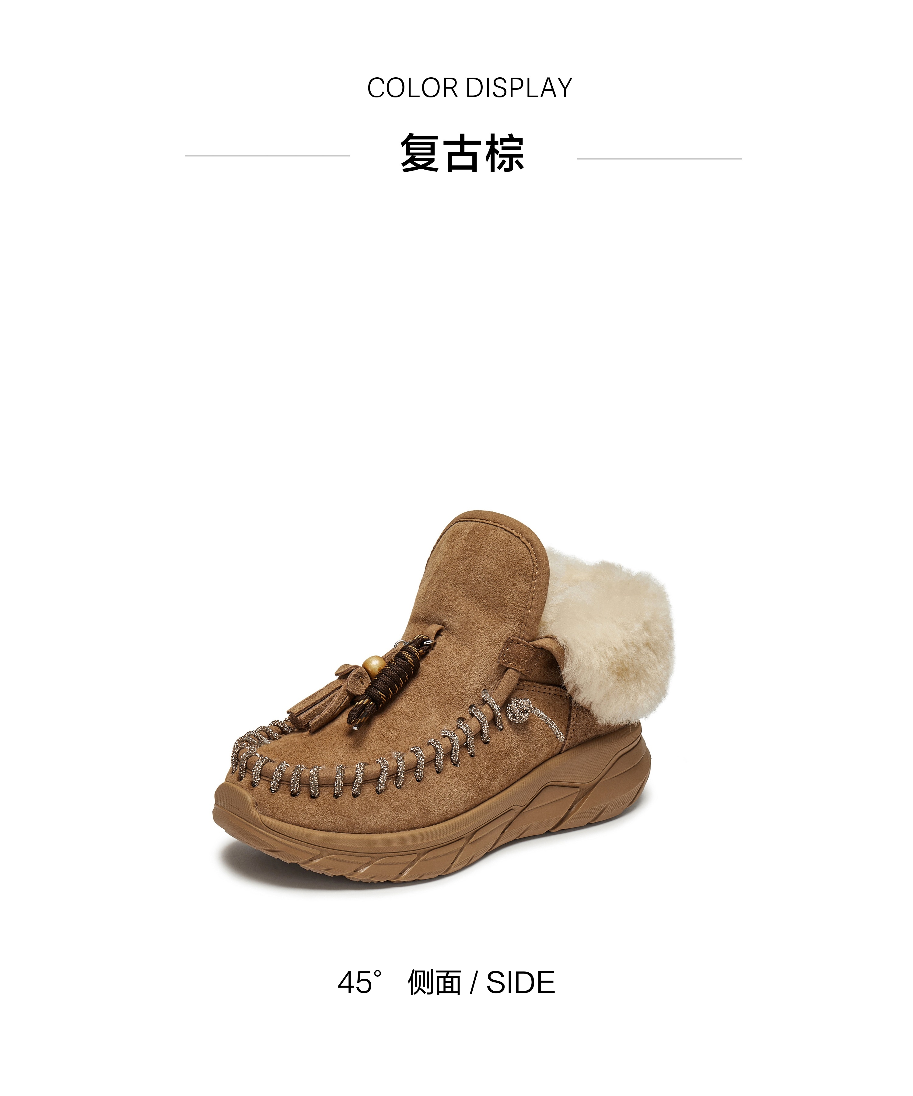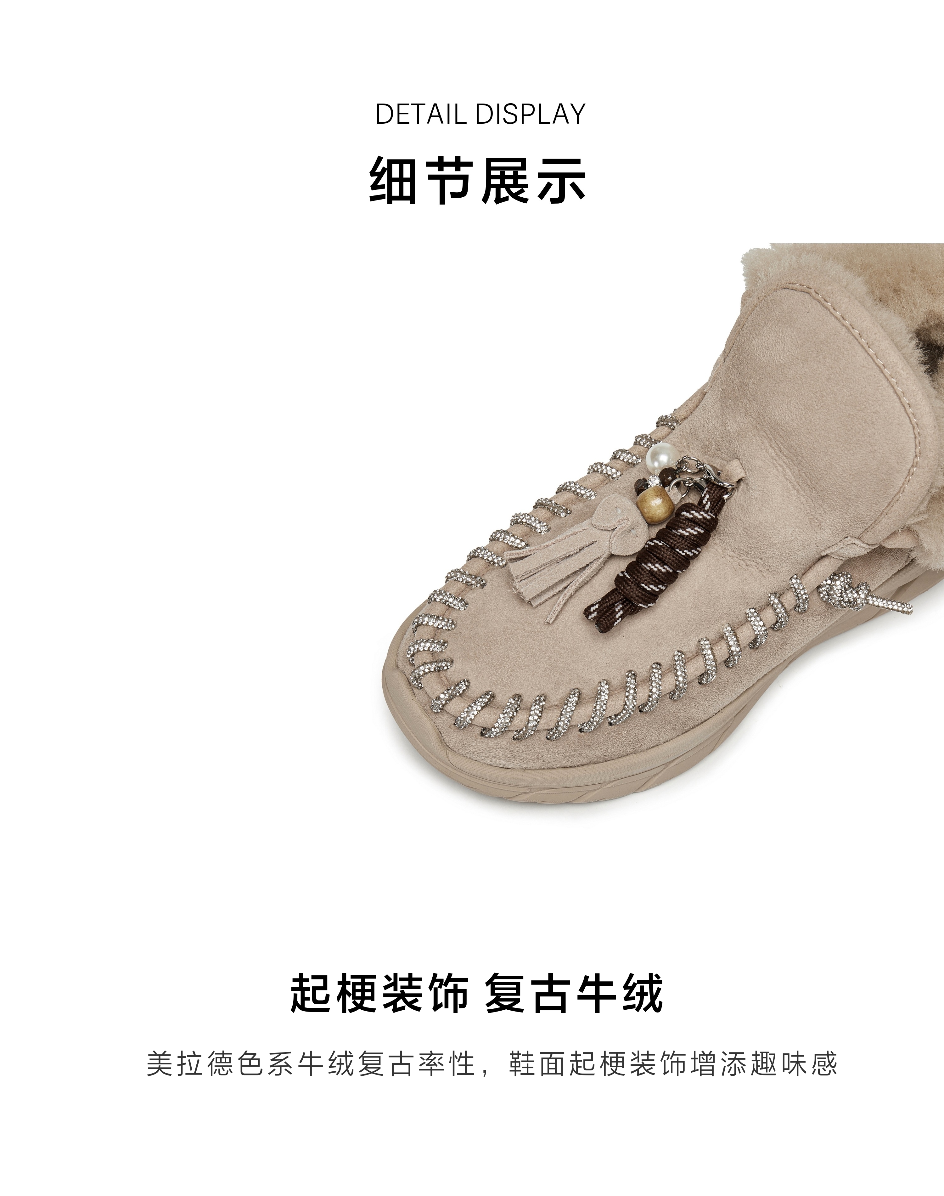 | 帮面材质:羊毛革牛剖层革 | 配跟:无 | 靴筒口围:30CM | 上市时间:2025年冬季 | 鞋类流行款式:雪地靴 |
