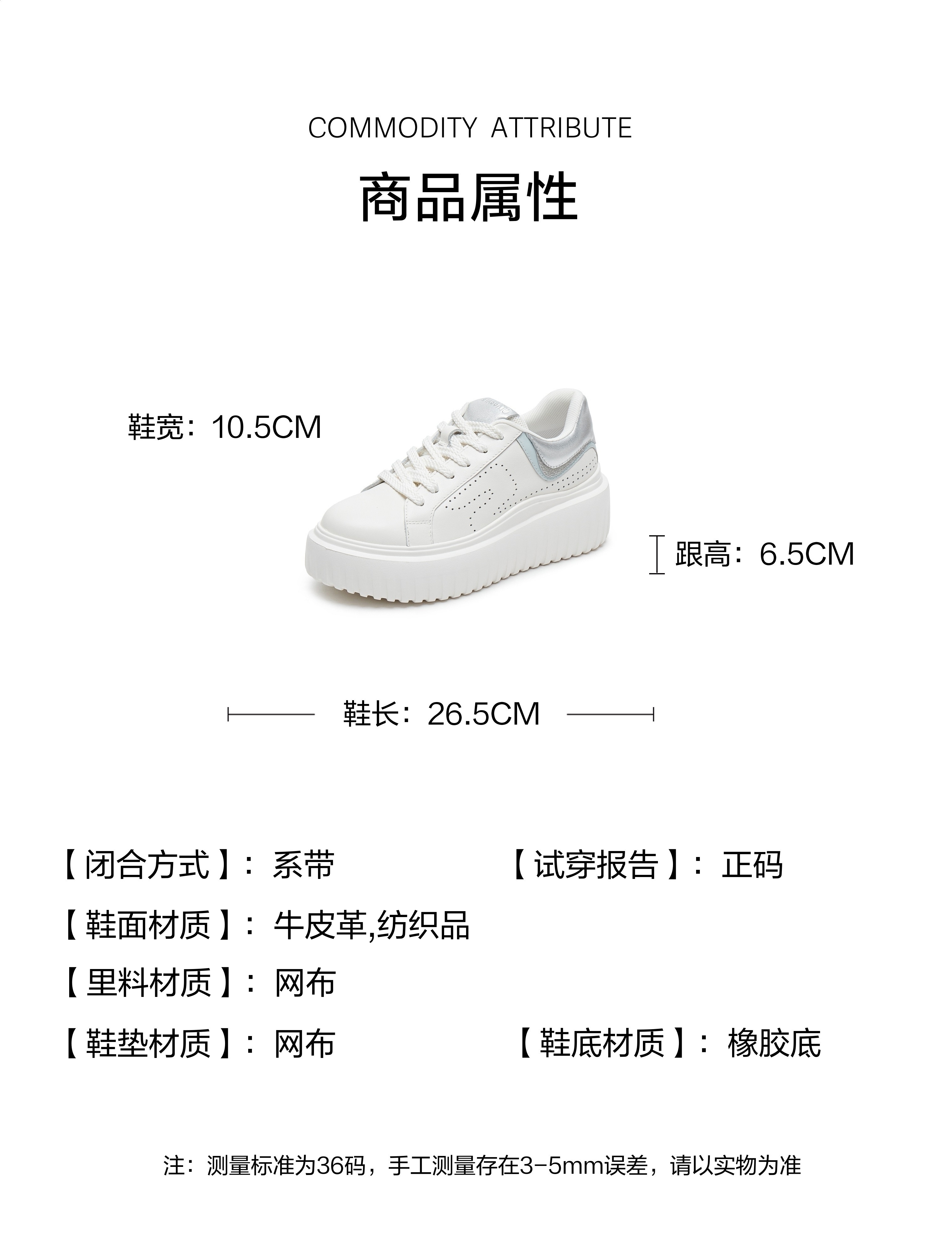 | 参考鞋长(女):26.5CM | 参考鞋宽(女):10.5CM | 风格:时尚潮流 | 年份:2025年 | 色系:米白 |