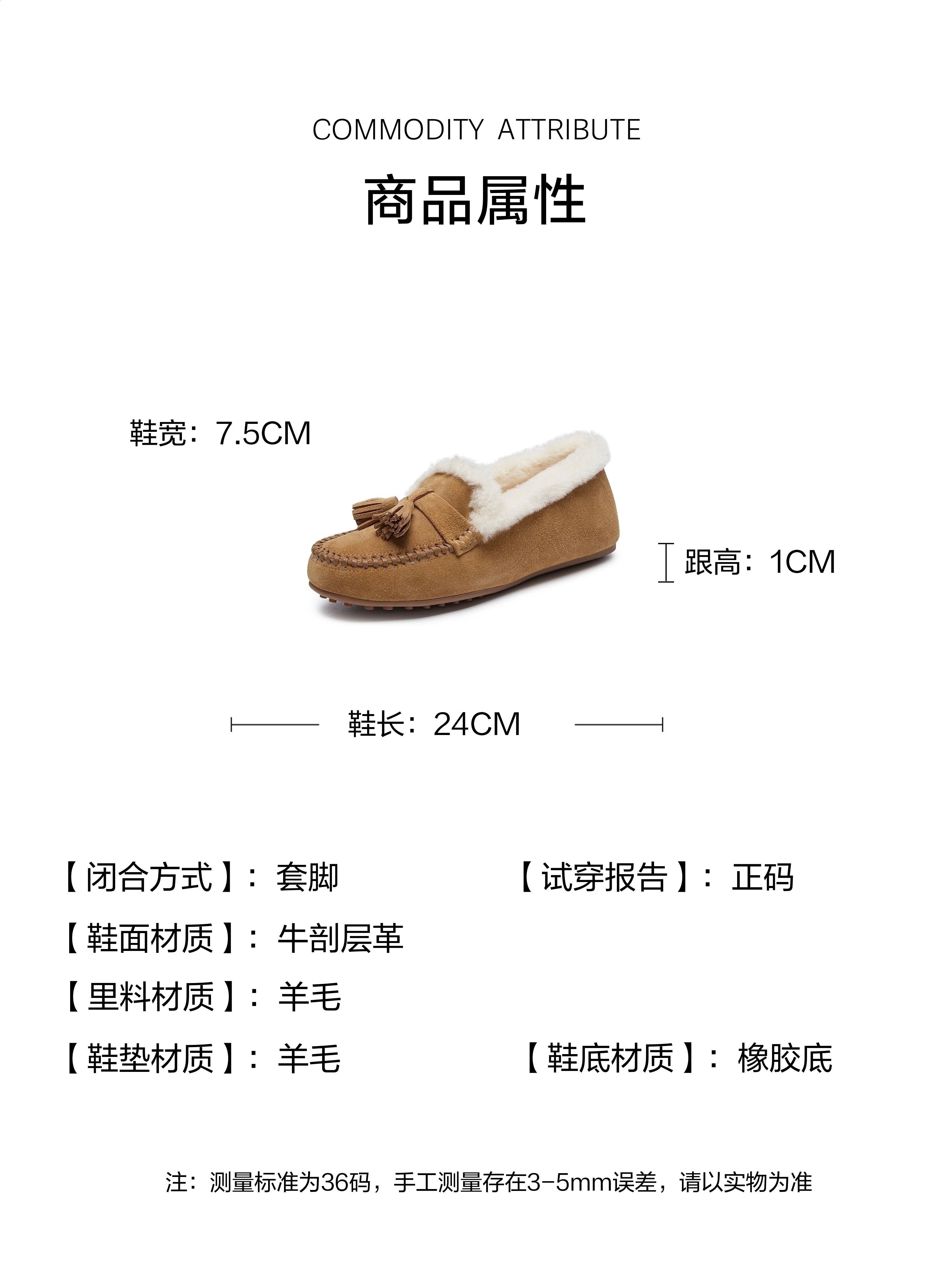 | 参考标准尺码:36码 | 跟高数值:1CM | 性别:女子 | 里料材质:羊毛 | 制鞋工艺:胶贴皮鞋 |