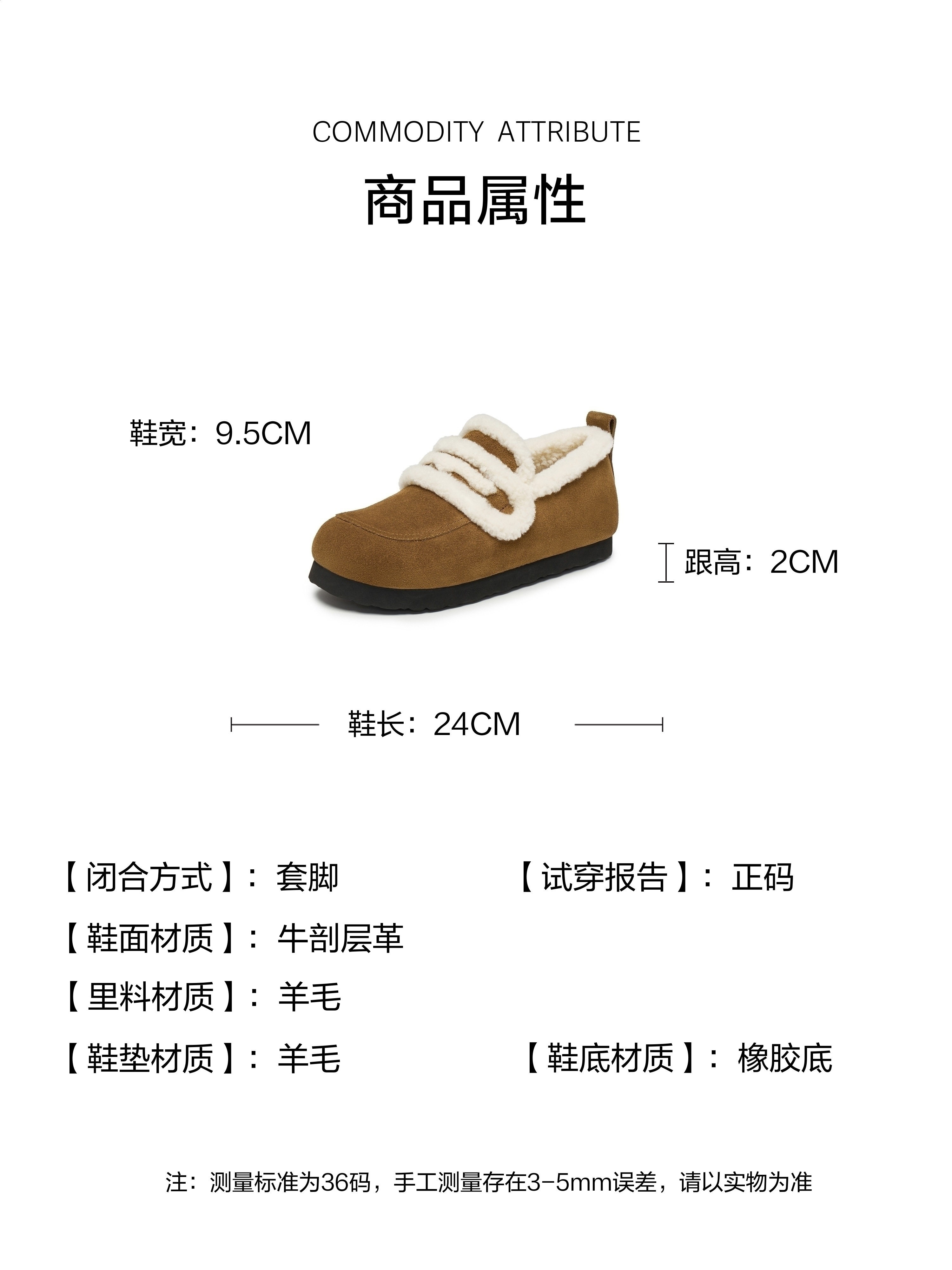 | 色系:棕色 | 参考标准尺码:36码 | 跟高数值:2CM | 性别:女子 | 里料材质:羊毛 |