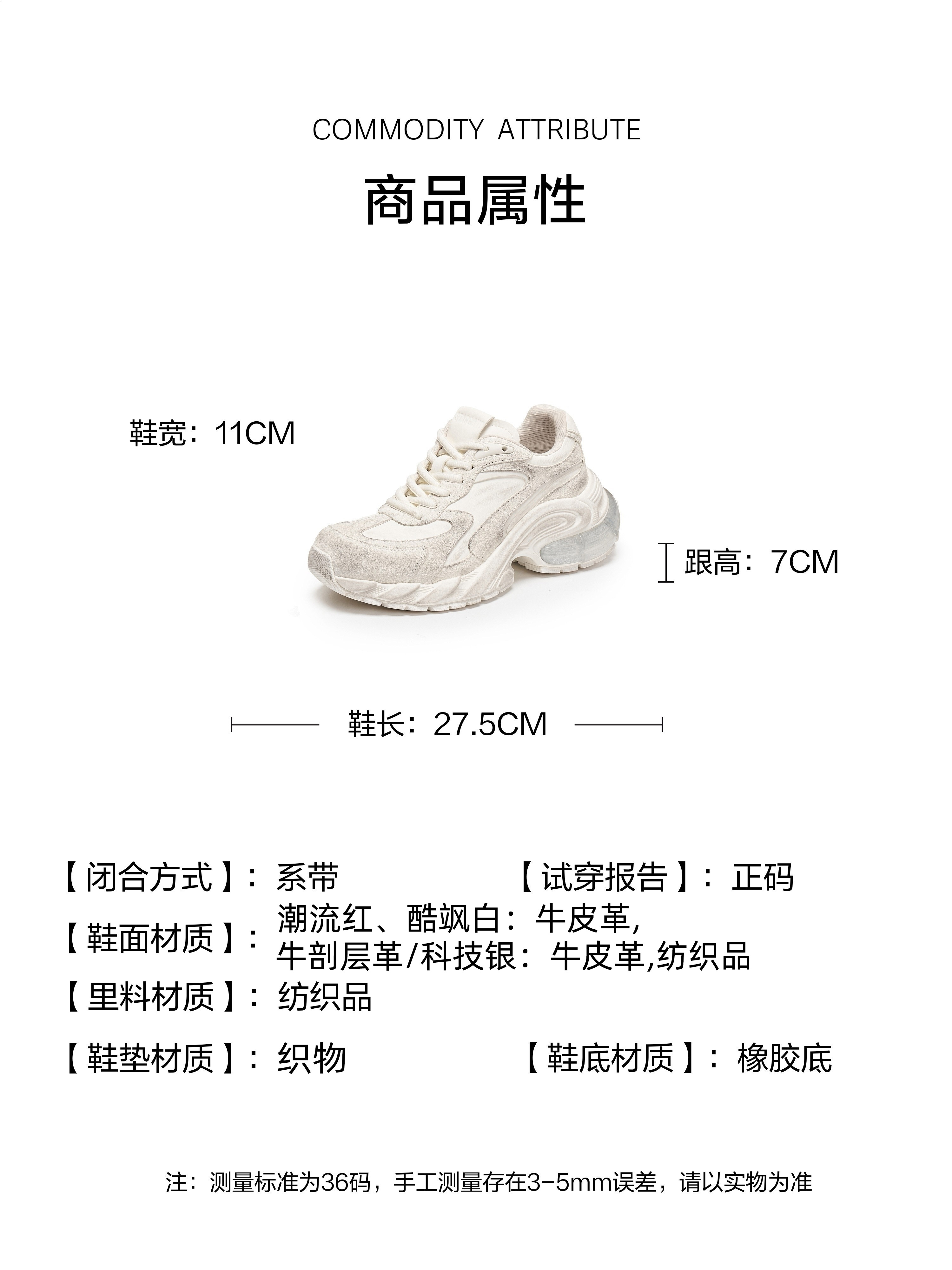 | 鞋跟形状:厚底 | 鞋面材质:牛剖层革牛皮革 | 流行元素:撞色 | 参考鞋长(女):27.5CM | 参考鞋宽(女):11CM |