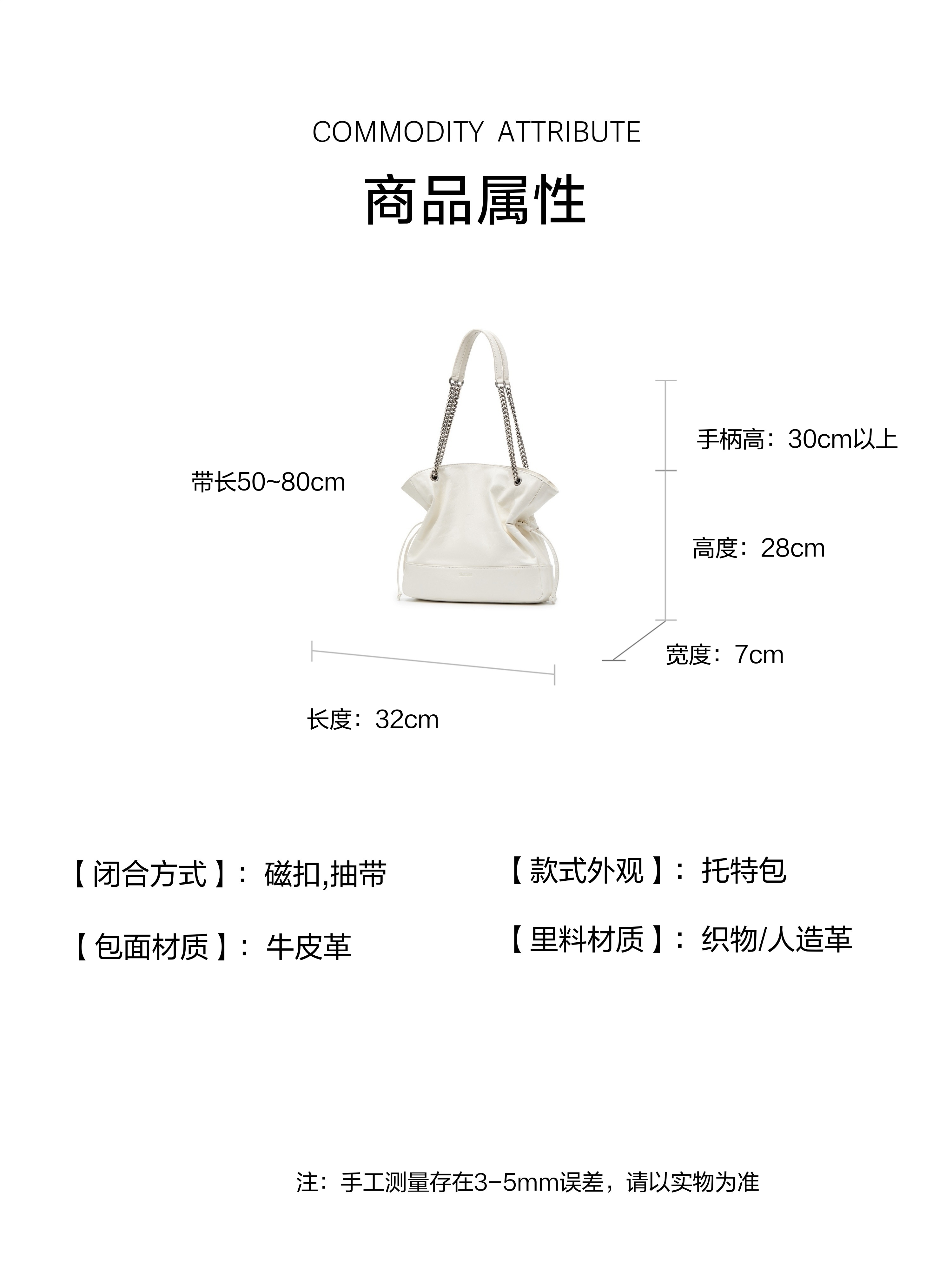| 闭合方式:磁扣抽带 | 所在区域:电子商务 | 是否防水:否 | 风格分类:托特包 | 上市时间:2025年春季 |