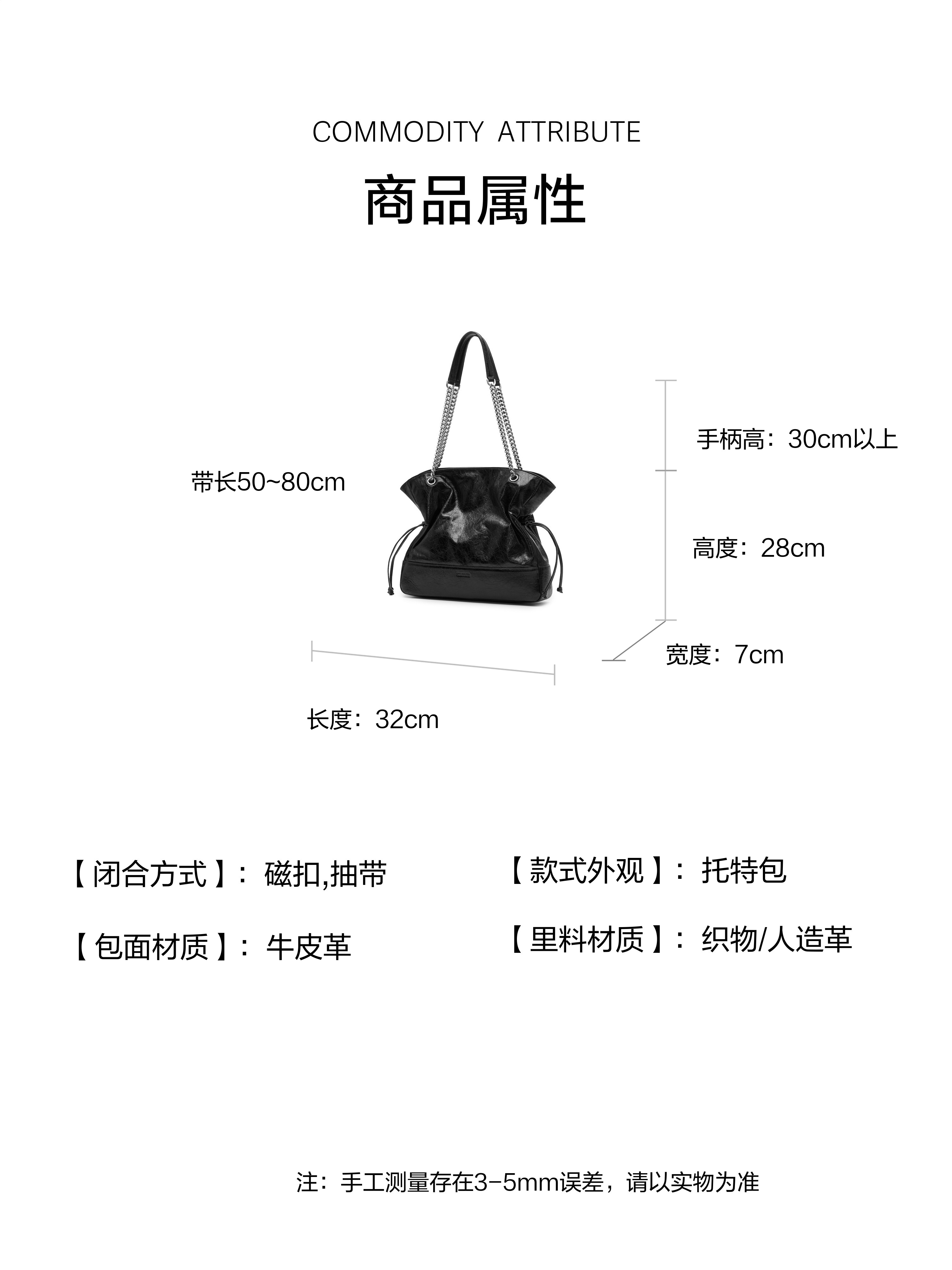 | 闭合方式:抽带磁扣 | 所在区域:电子商务 | 是否防水:否 | 风格分类:托特包 | 上市时间:2025年春季 |