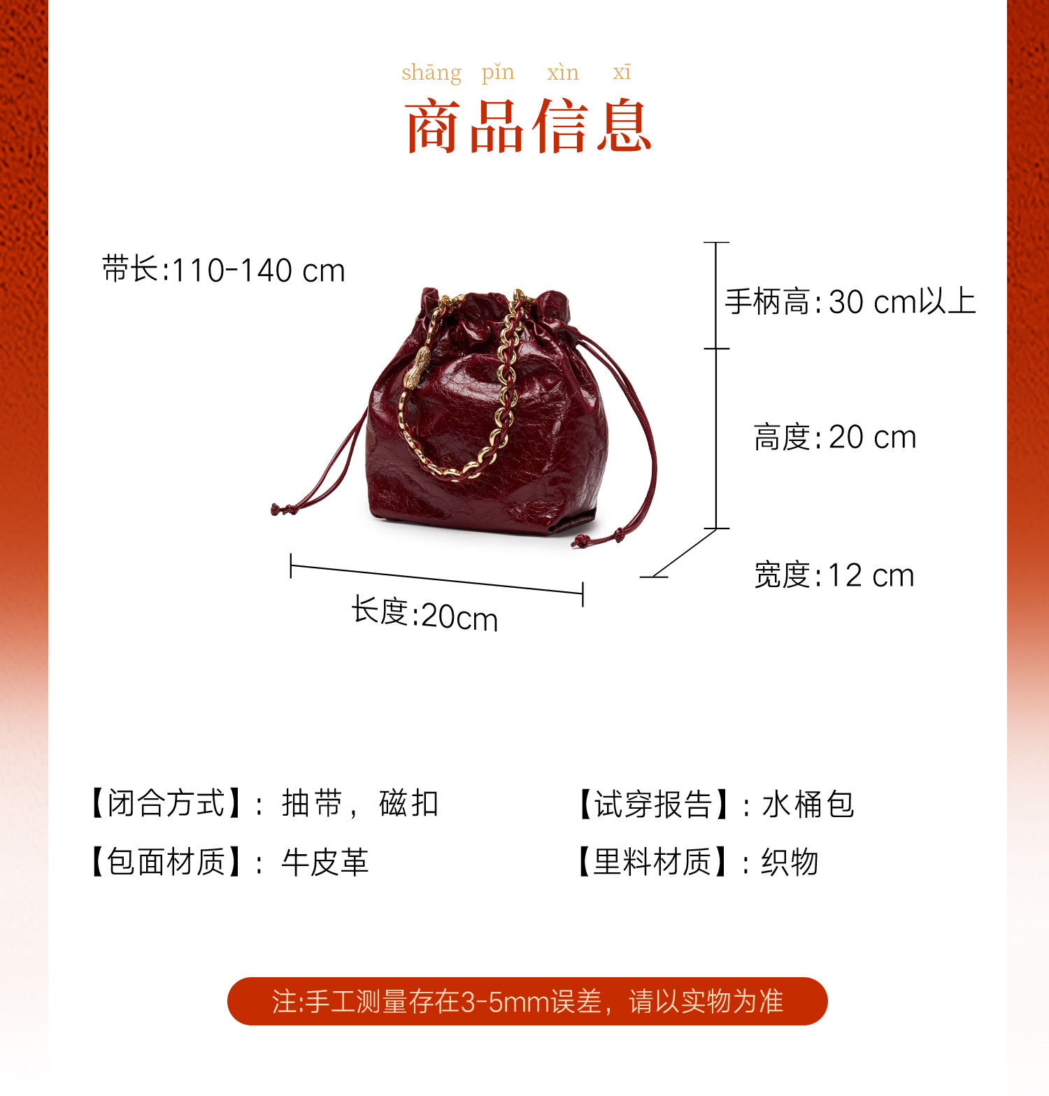 | 是否防水:否 | 里料材质:织物 | 手柄高:30cm以上 | 上市时间:2025年春季 | 款式季节:春季 |