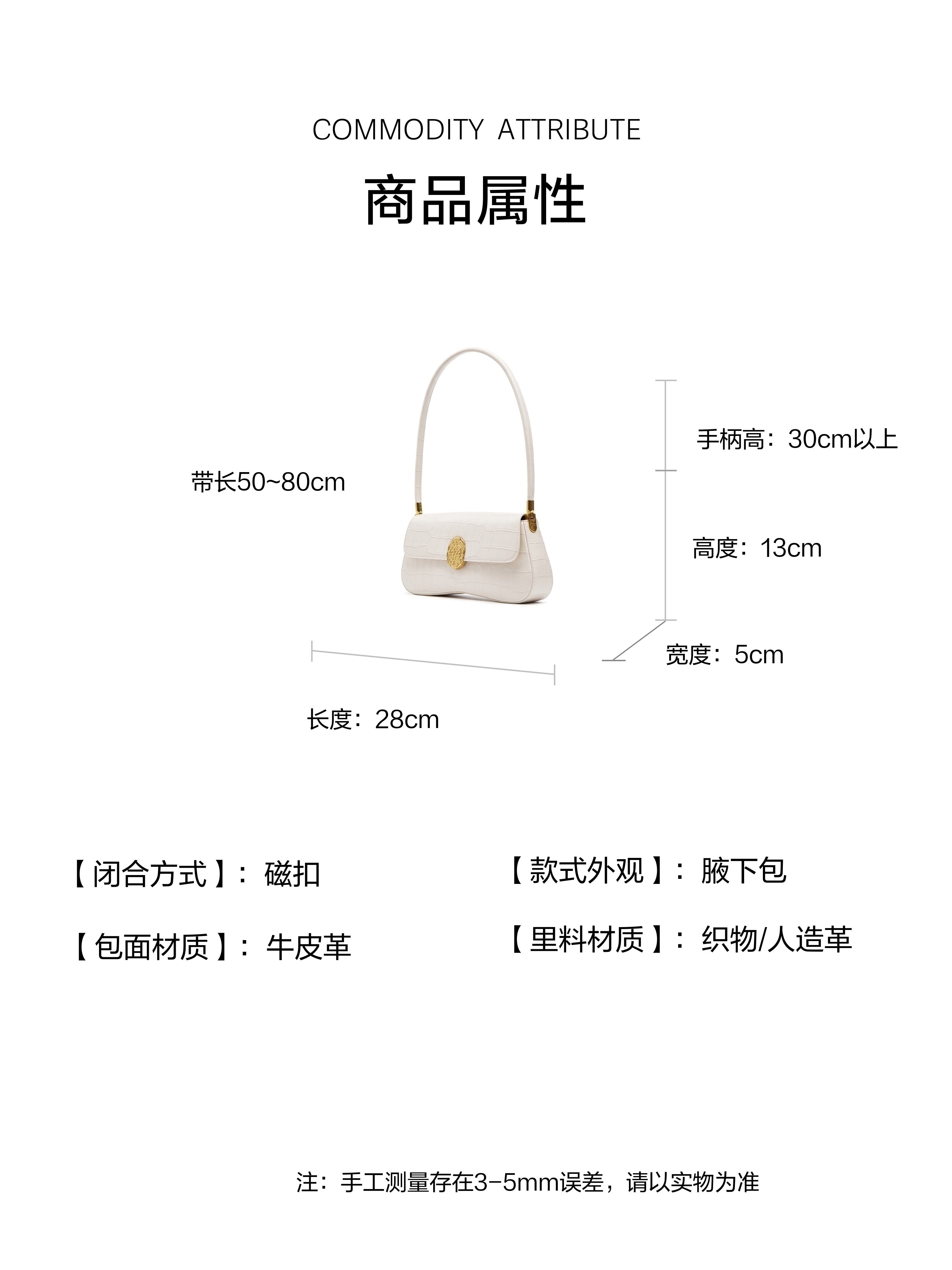 | 包的规格:28cm*5cm*13cm | 闭合方式:磁扣 | 背带方式:手提/单肩 | 内部结构:拉链暗袋 | 风格:时尚潮流 |