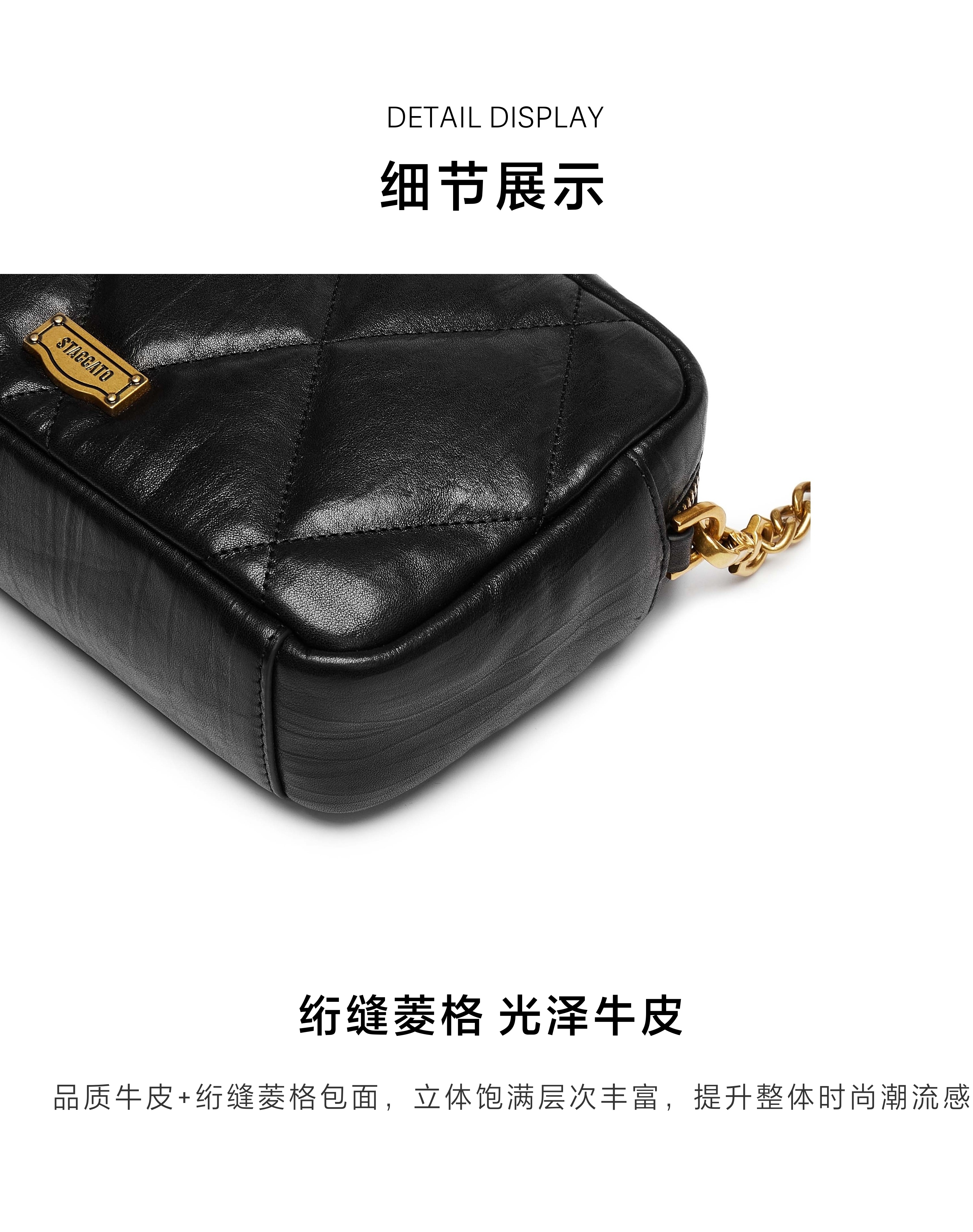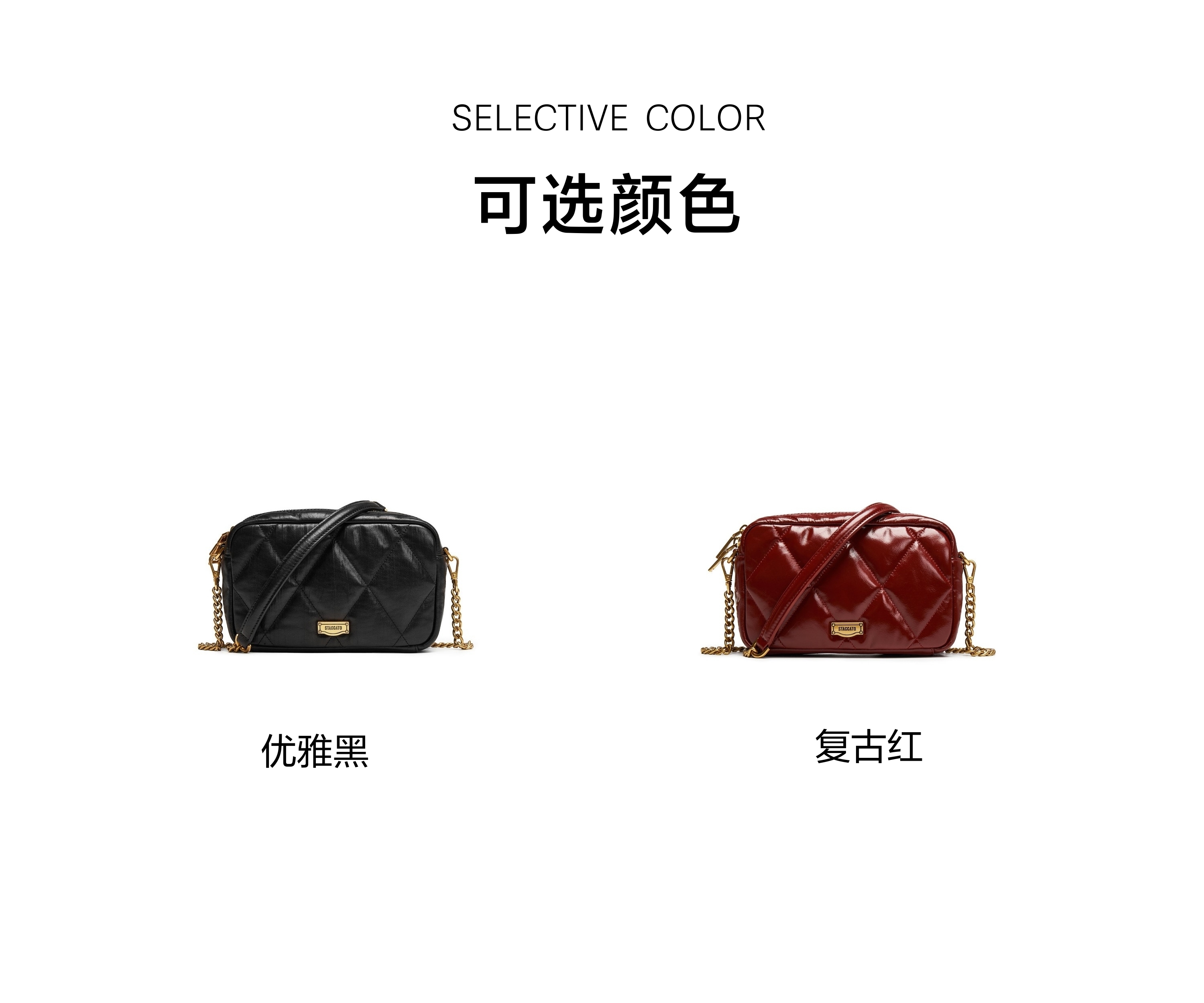 | 流行元素:车缝菱格 | 包的规格:21cm*6cm*13cm | 内部结构:拉链暗袋 | 背带方式:单肩/斜挎 | 风格:时尚潮流 |