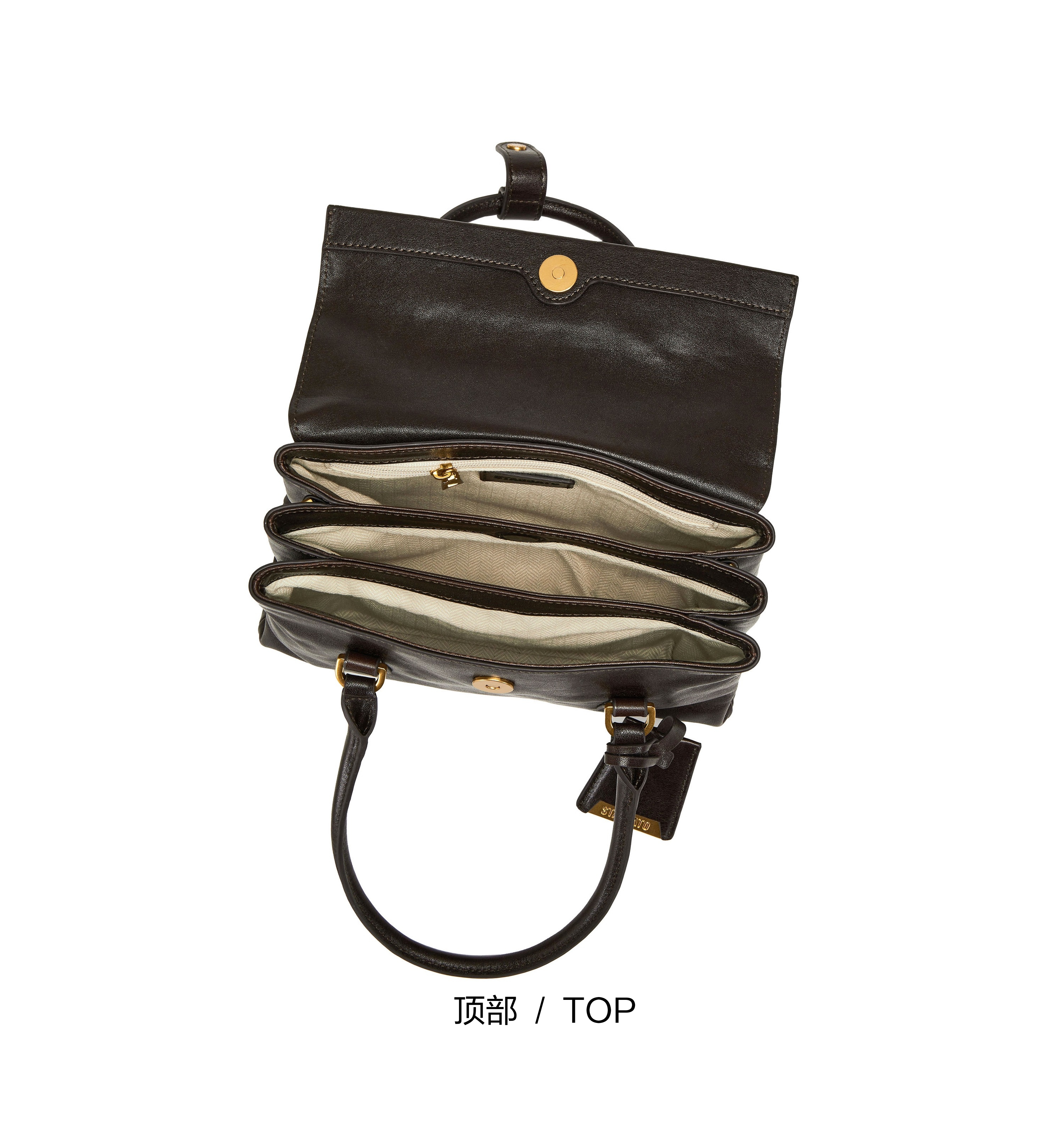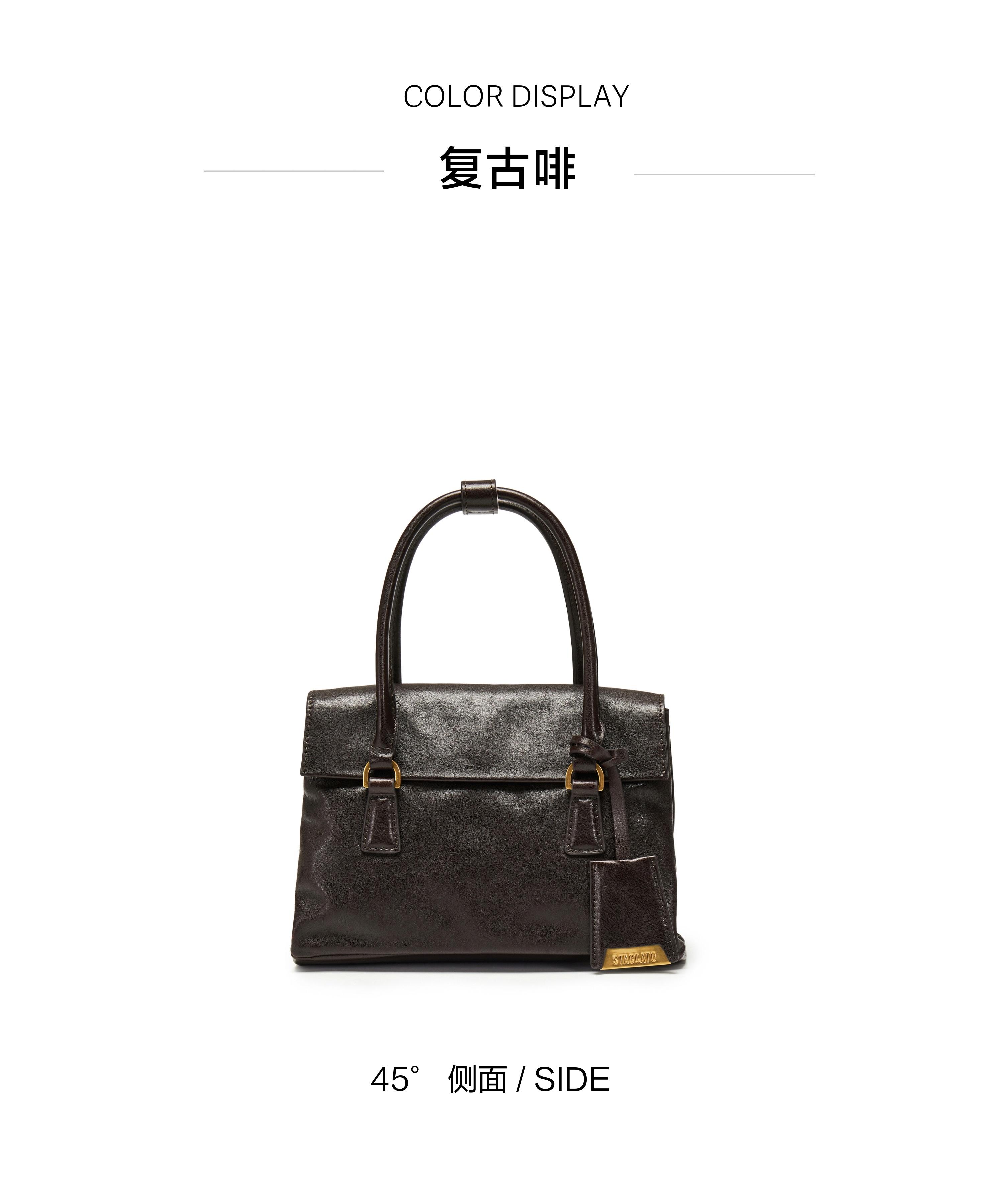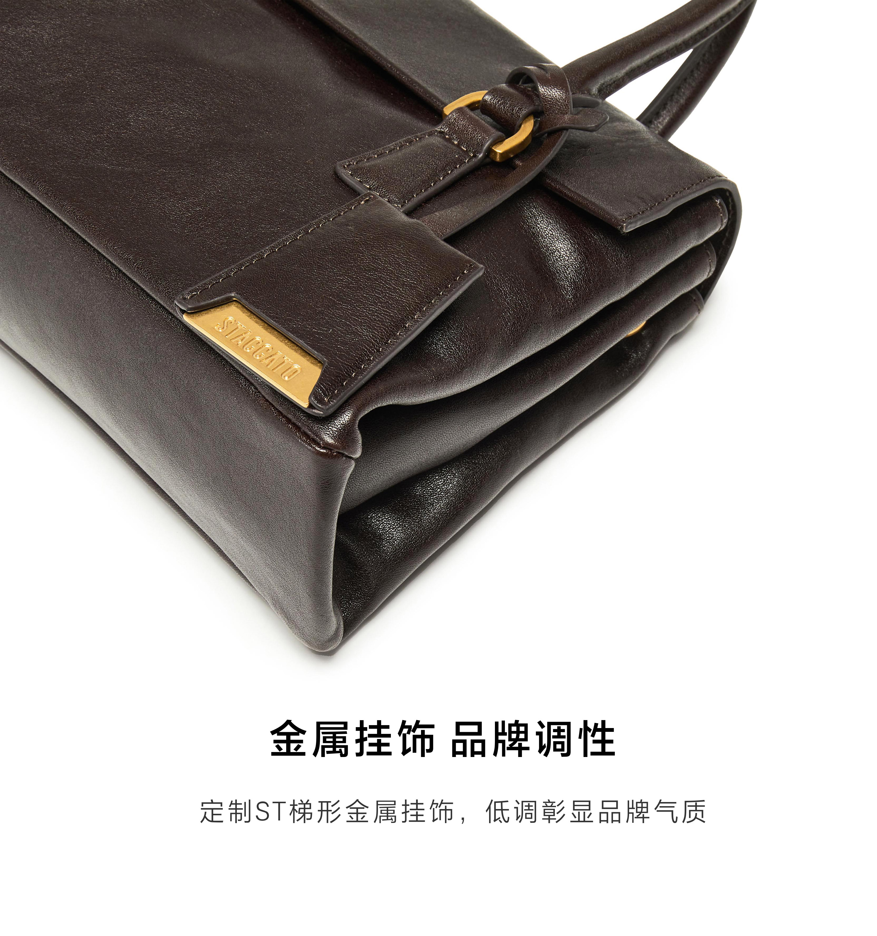 | 内部结构:拉链暗袋 | 背带方式:单肩/斜挎 | 风格:英伦学院 | 色系:咖啡色 | 适用场景:逛街日常上班 |