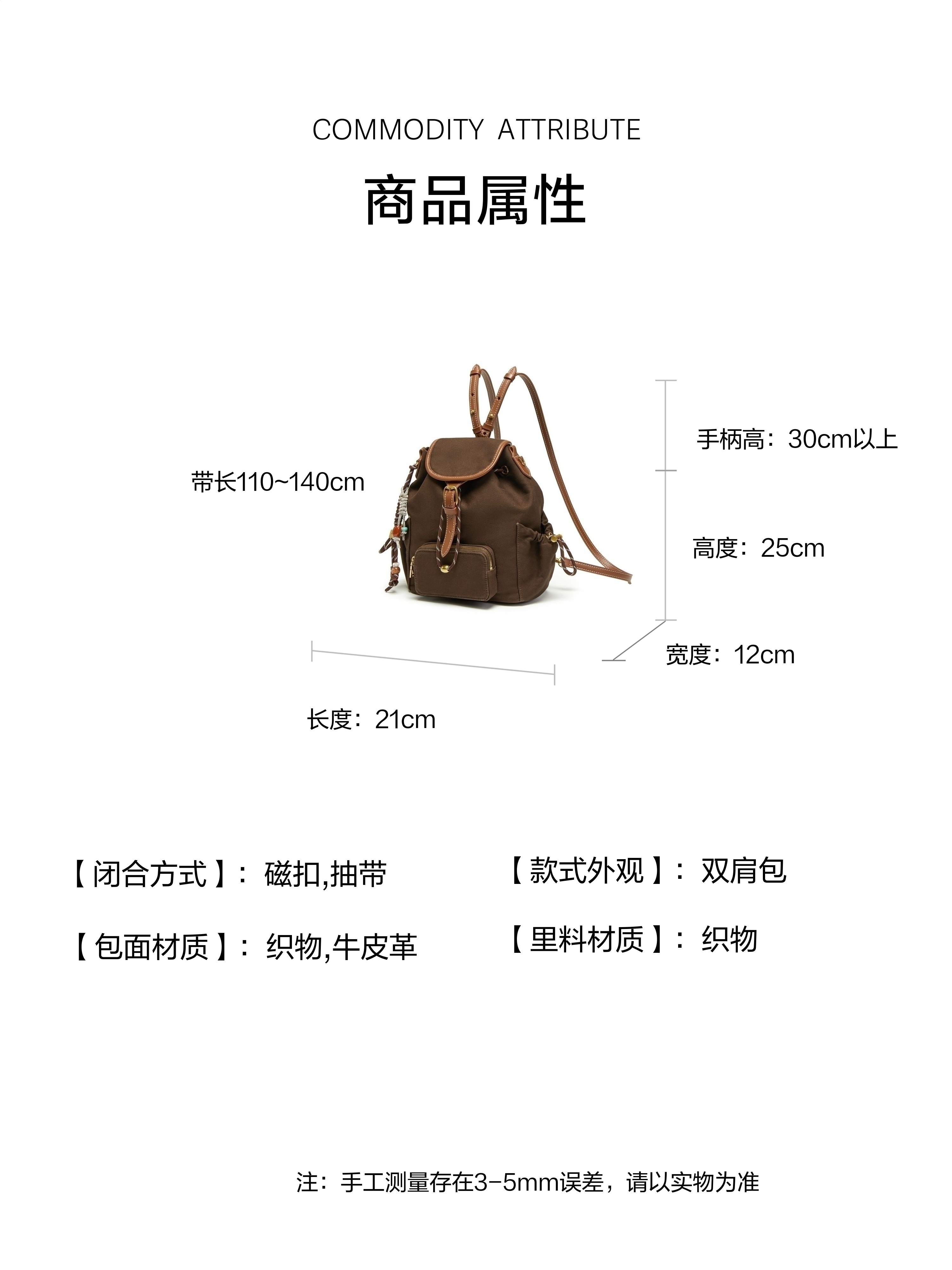| 色系:咖啡色 | 适用场景:逛街日常上班 | 开袋方式:拉绳 | 性别:女子 | 是否防水:否 |