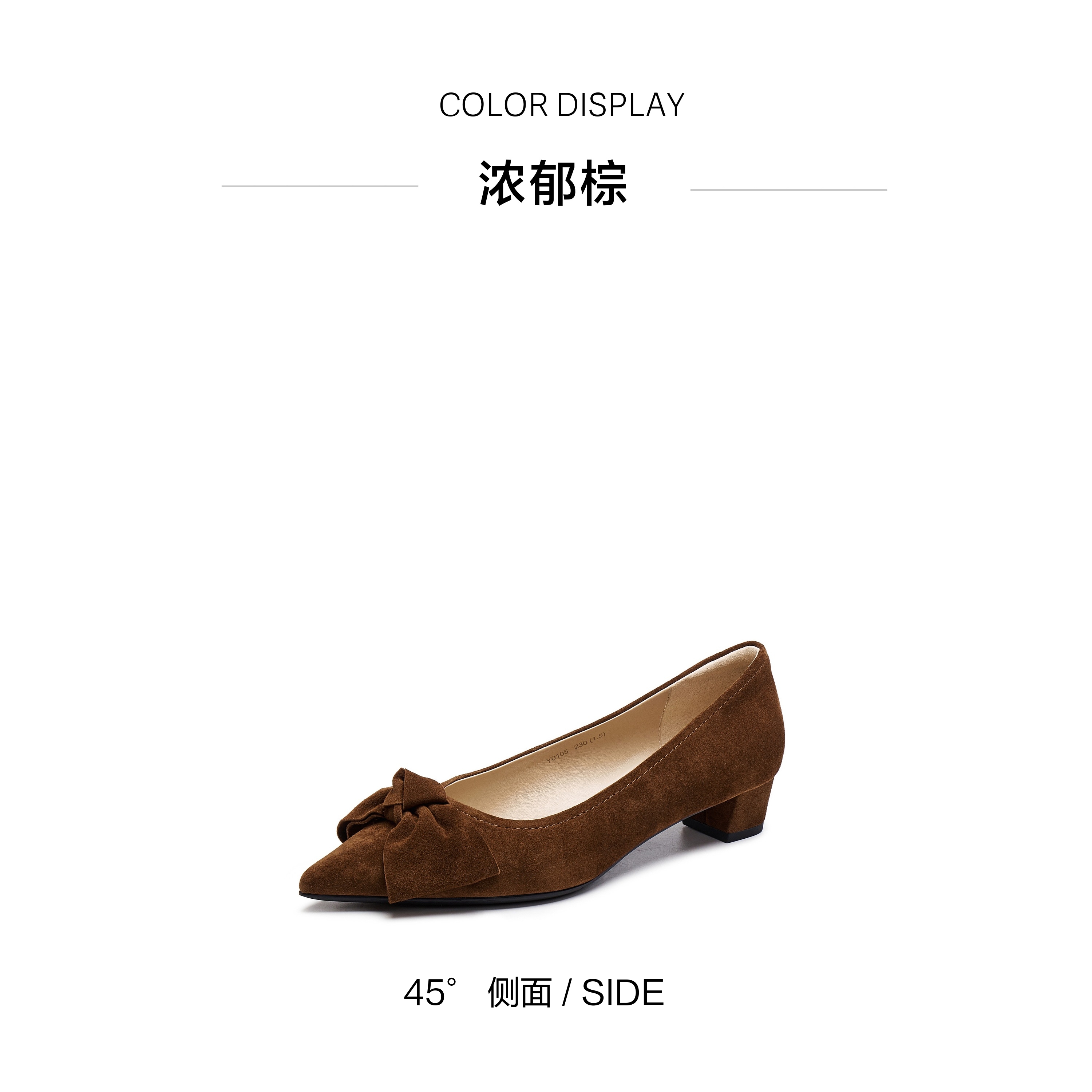 | 鞋头款式:尖头 | 鞋底材质:橡胶底 | 鞋面图案:纯色 | 内增高:无 | 鞋跟形状:粗跟 |