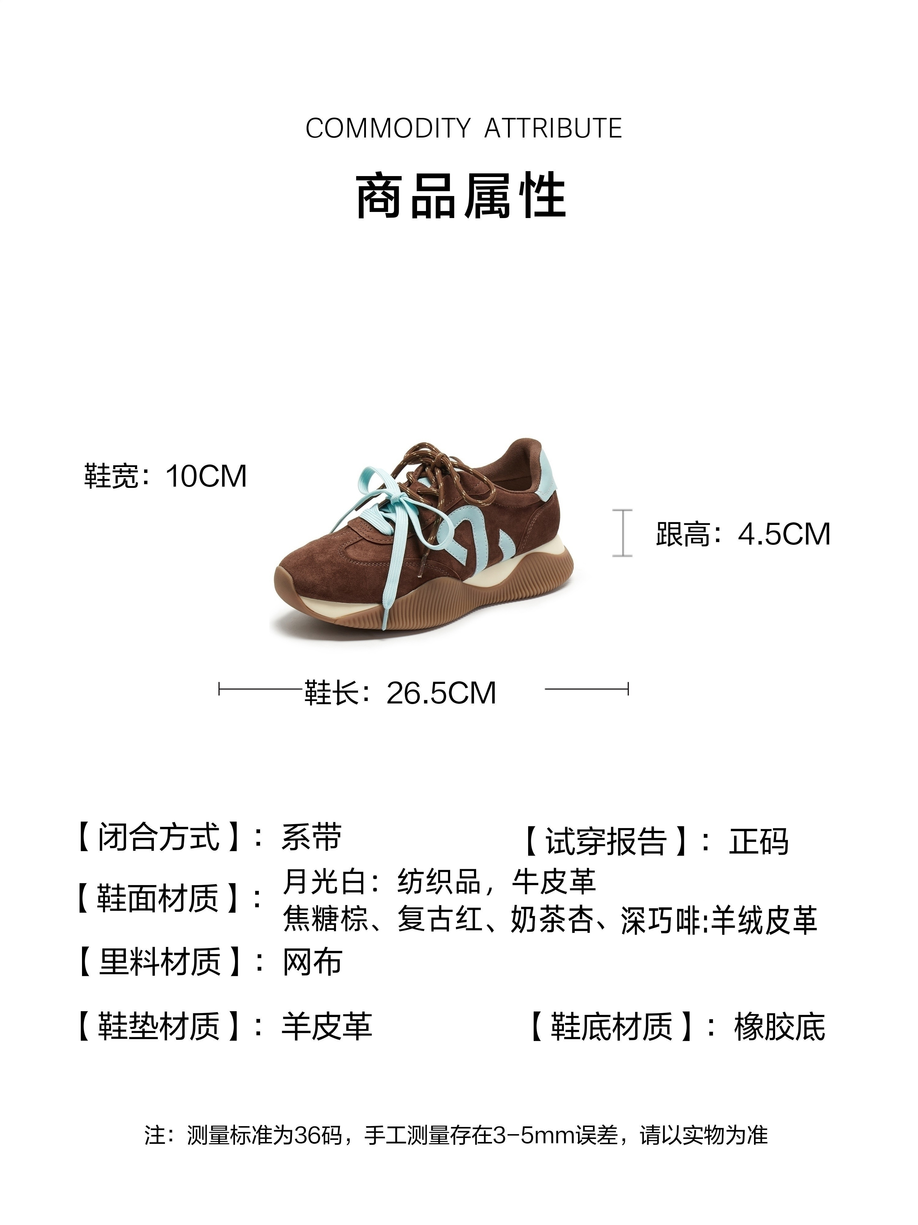| 鞋跟形状:厚底 | 鞋面材质:羊绒皮革 | 参考鞋长(女):26.5CM | 参考鞋宽(女):10CM | 闭合方式:系带 |