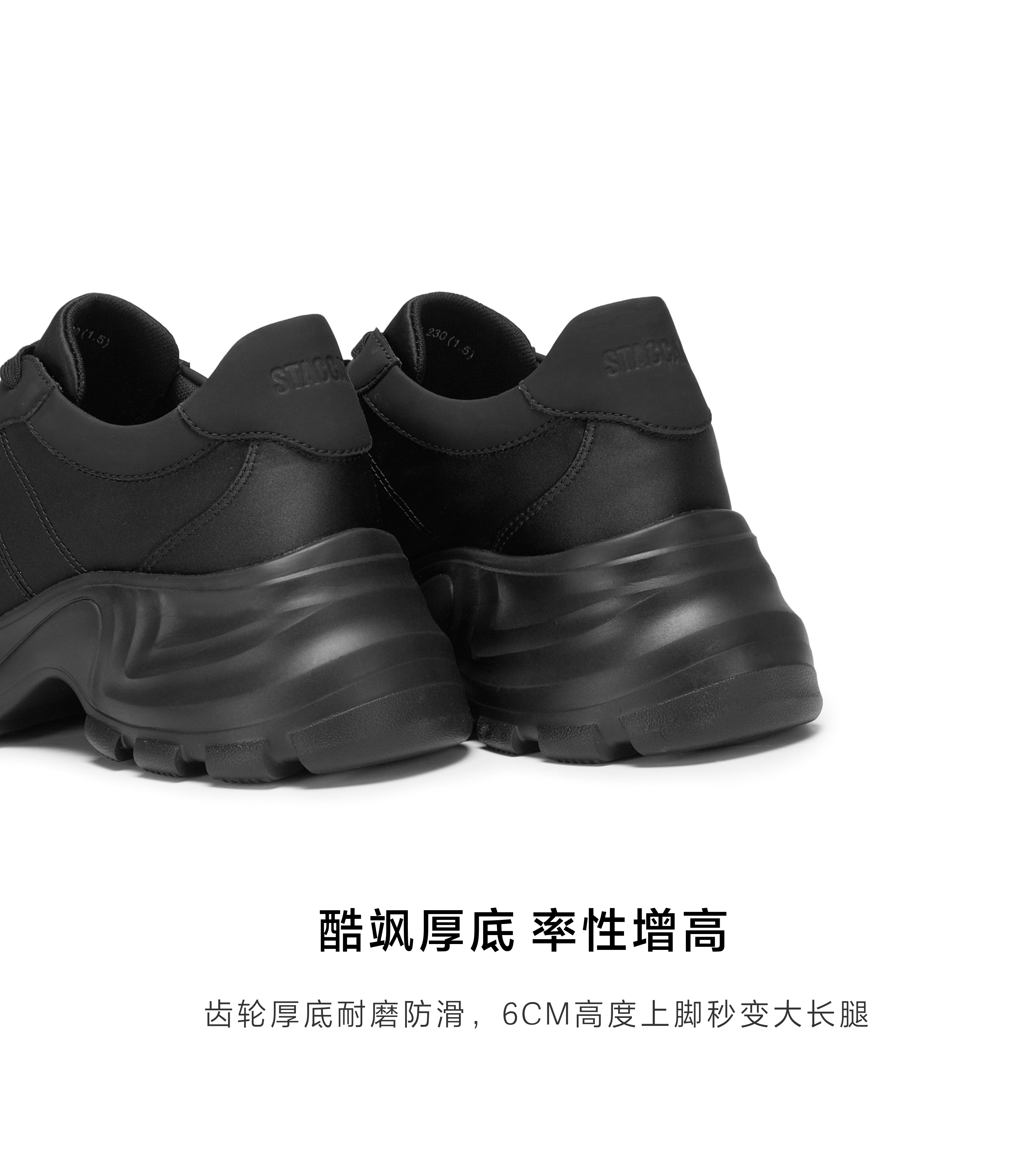 | 闭合方式:系带 | 风格:时尚潮流 | 色系:黑色 | 跟高数值:6CM | 适用人群:成人 |