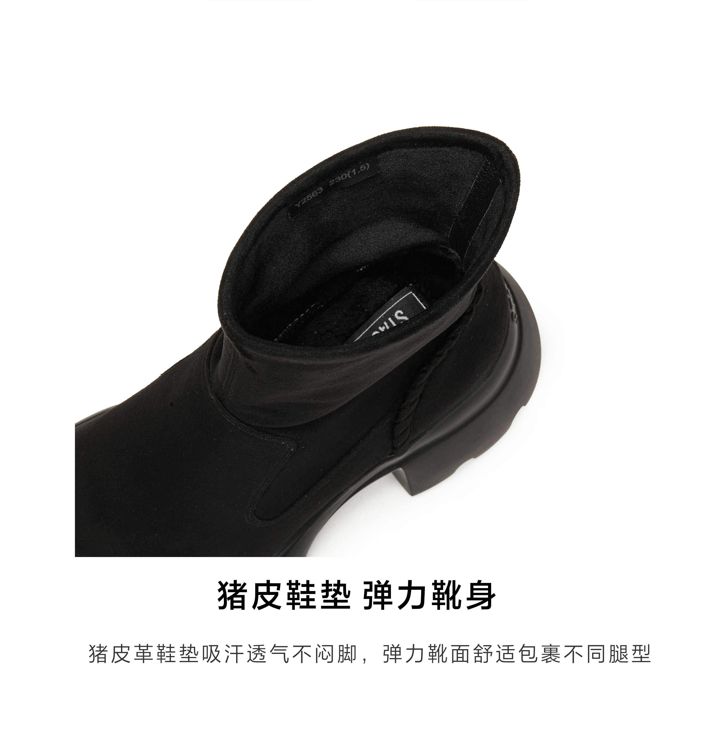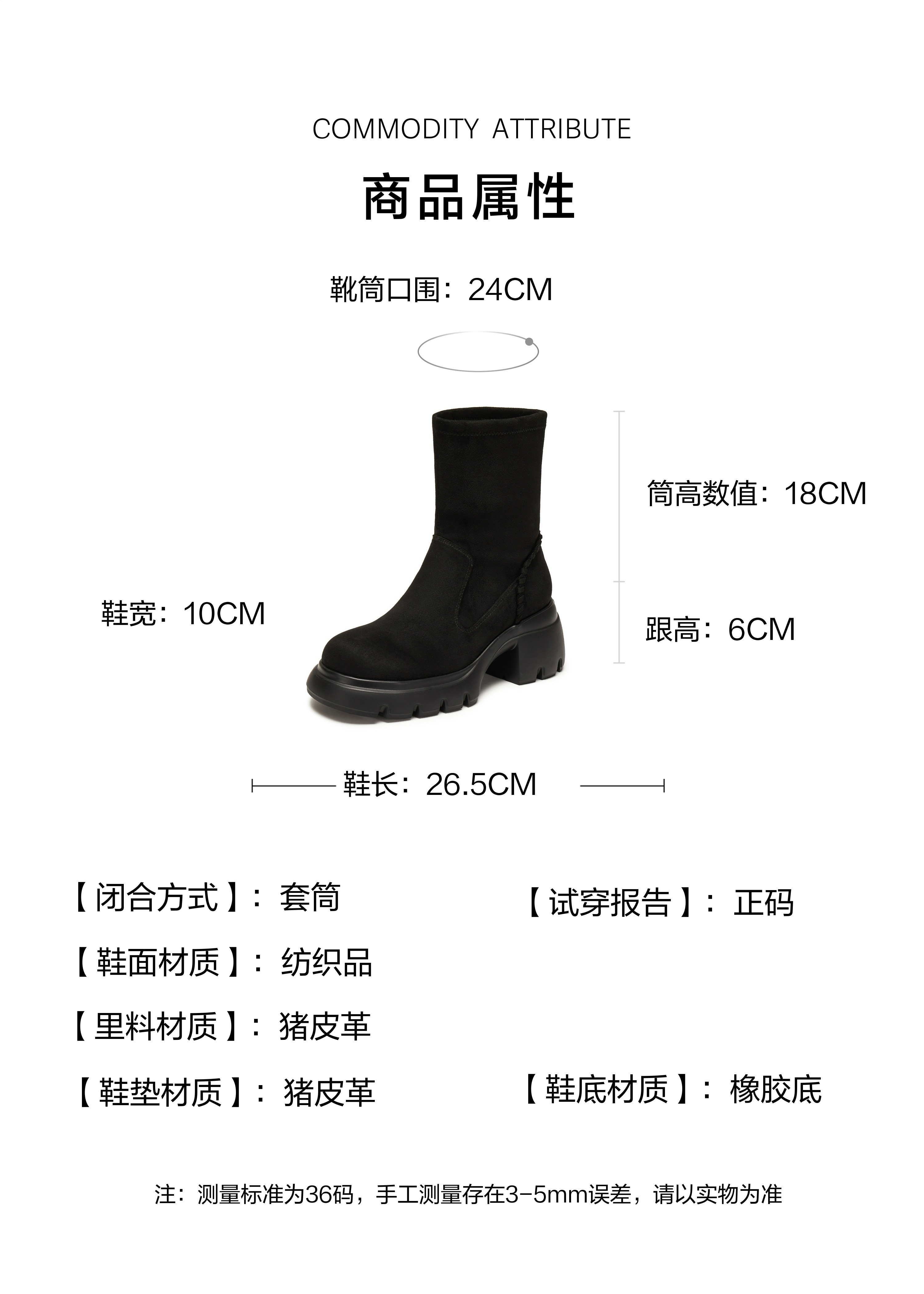 | 靴筒口围:24CM | 配跟:无 | 上市时间:2025年冬季 | 鞋类流行款式:弹力靴 | 鞋头款式:圆头 |