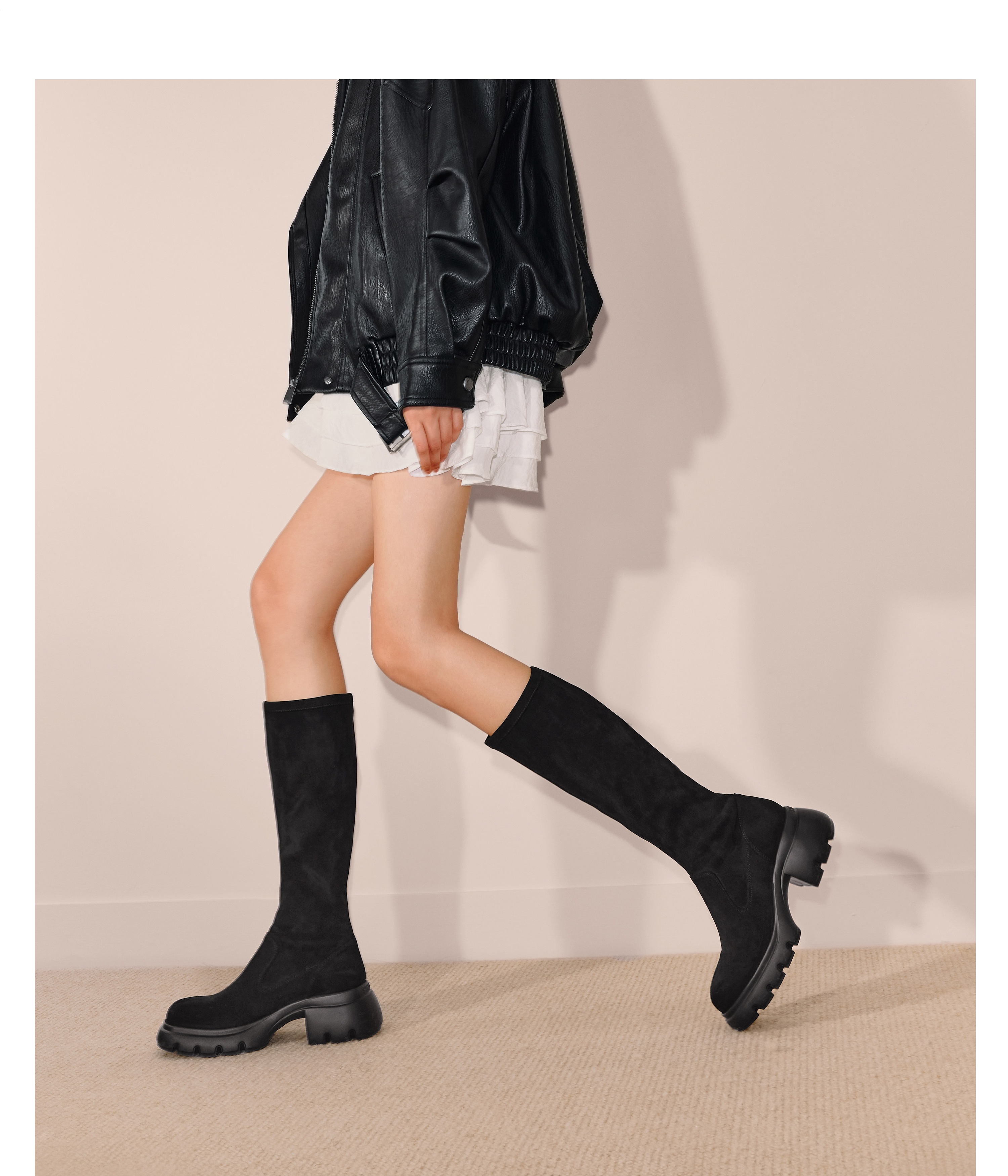 | 配跟:无 | 靴筒口围:30CM | 上市时间:2025年冬季 | 鞋类流行款式:弹力靴 | 鞋头款式:圆头 |