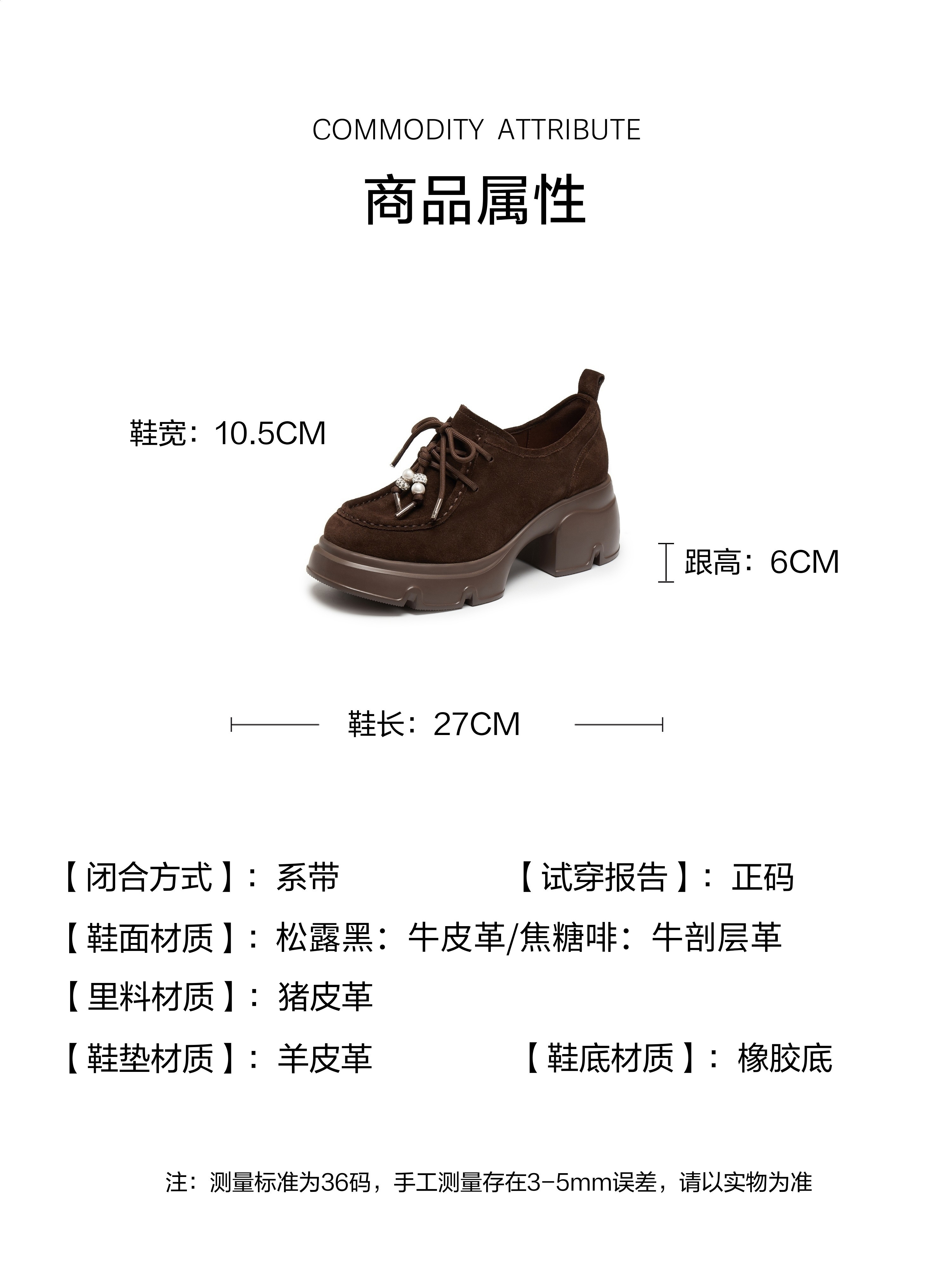 | 闭合方式:系带 | 风格:时尚潮流 | 色系:黑色 | 跟高数值:6CM | 配跟:无 |
