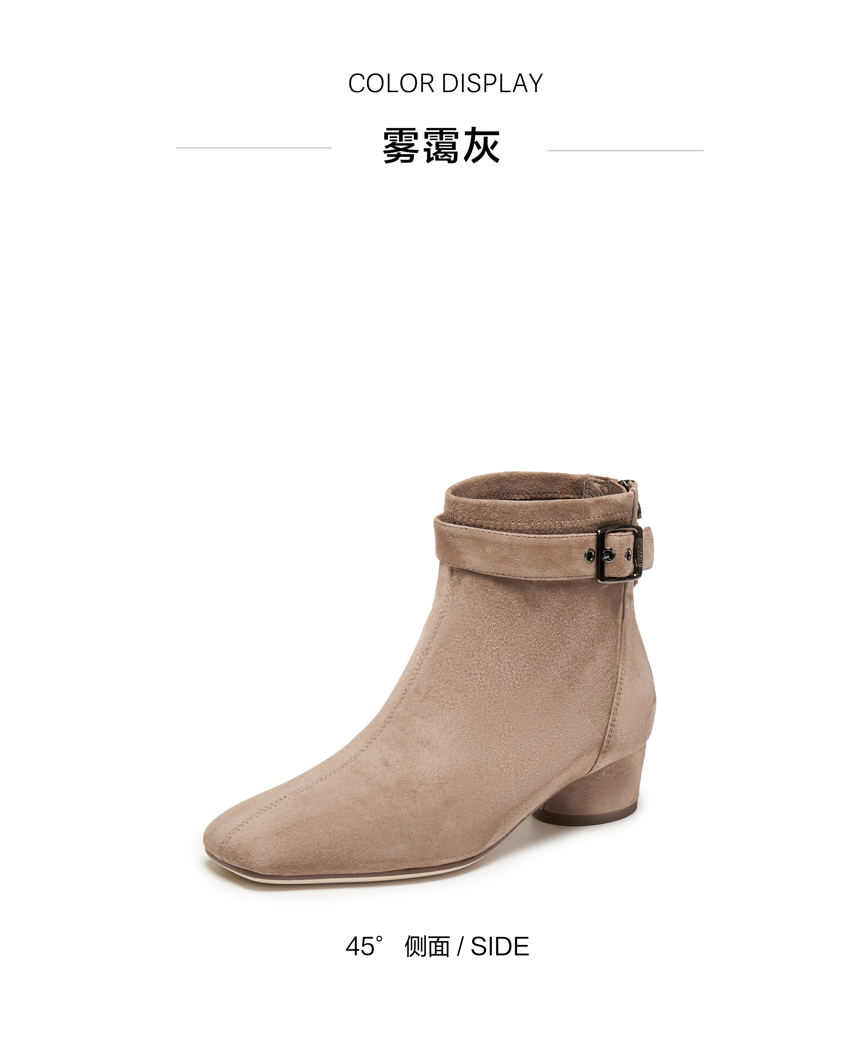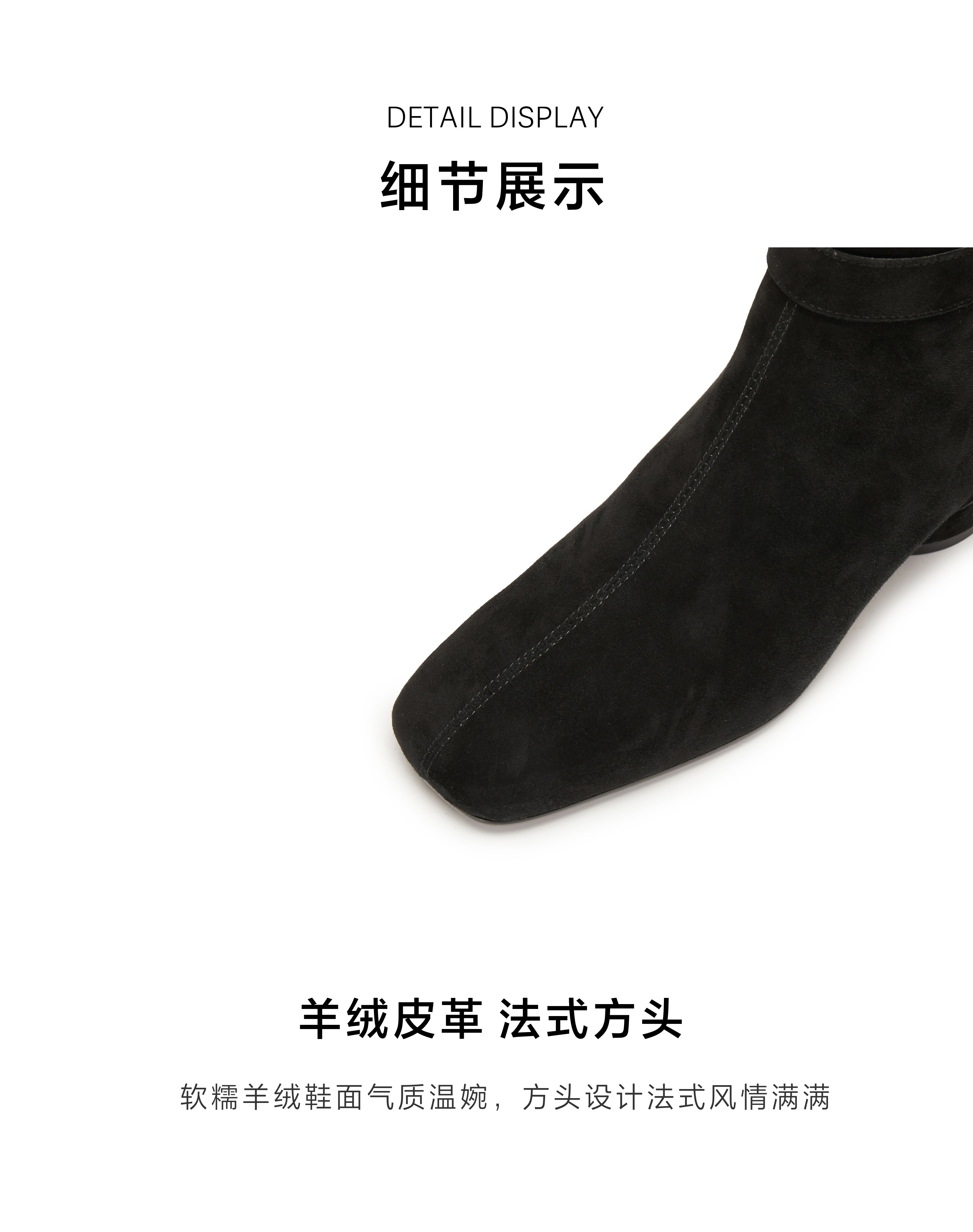 | 鞋头款式:方头 | 鞋面图案:纯色 | 鞋跟形状:圆形跟 | 参考鞋长(女):24CM | 流行元素:绒面 |