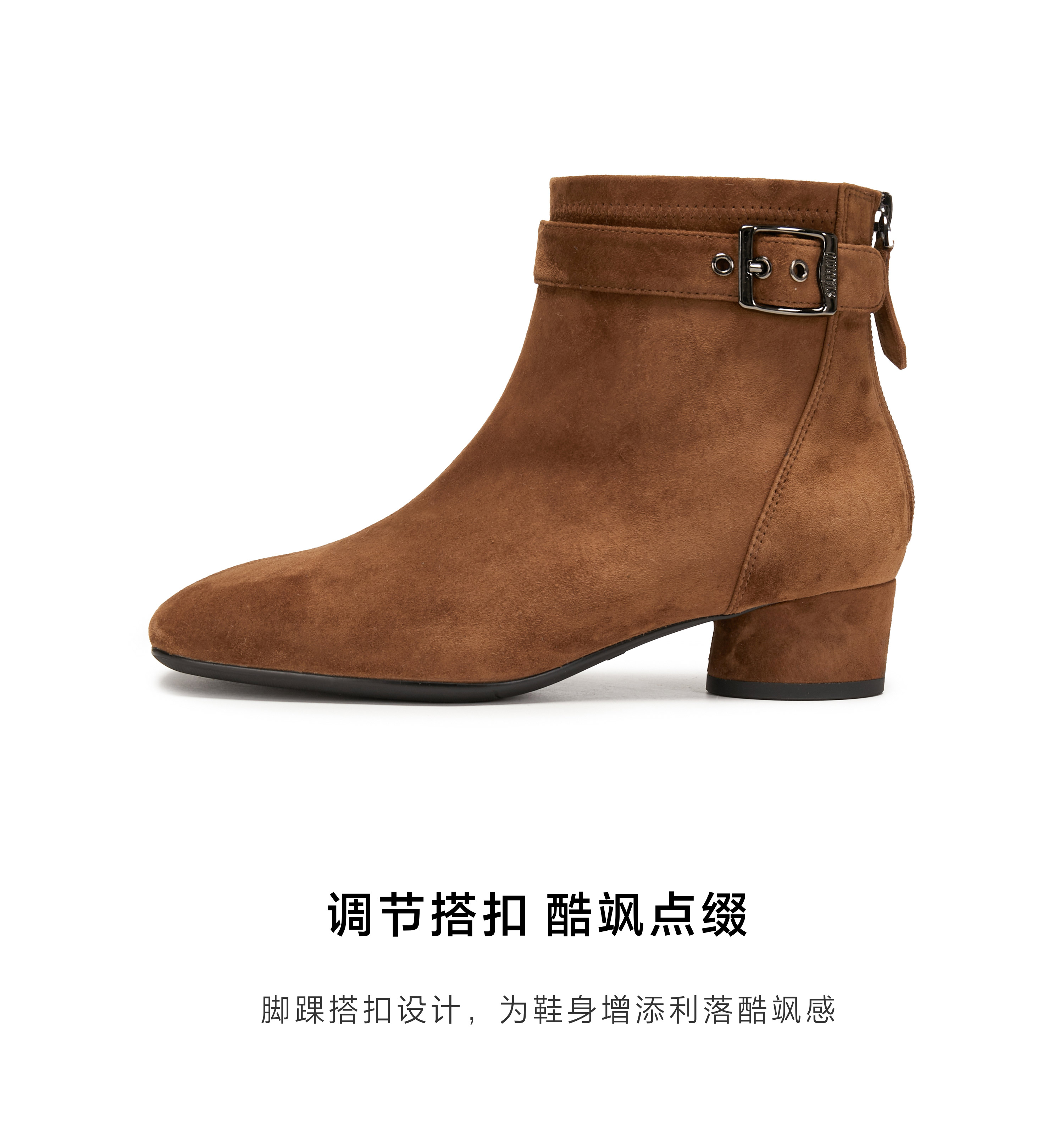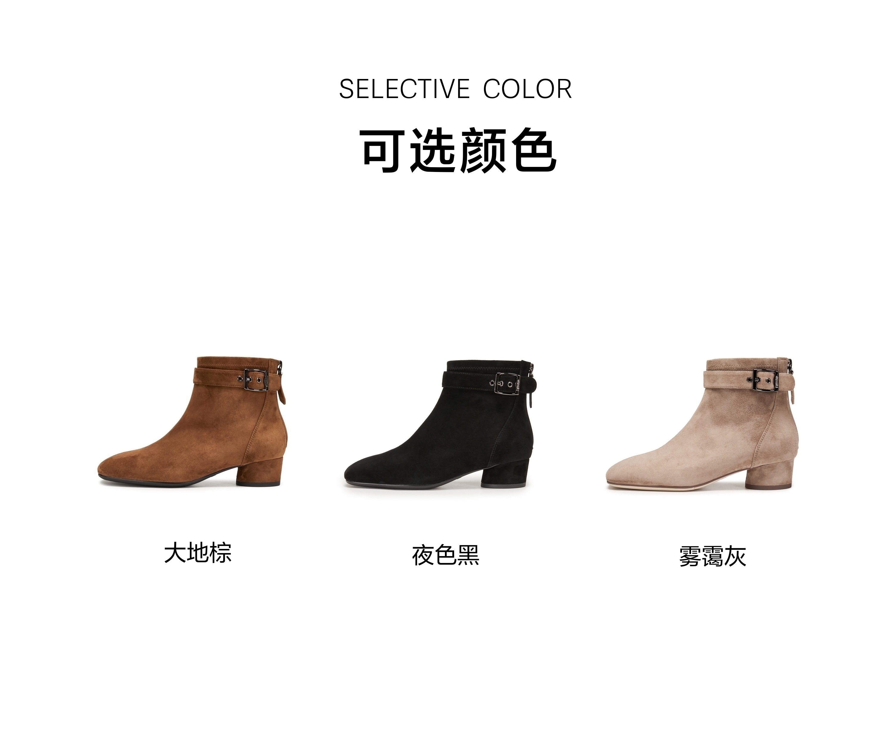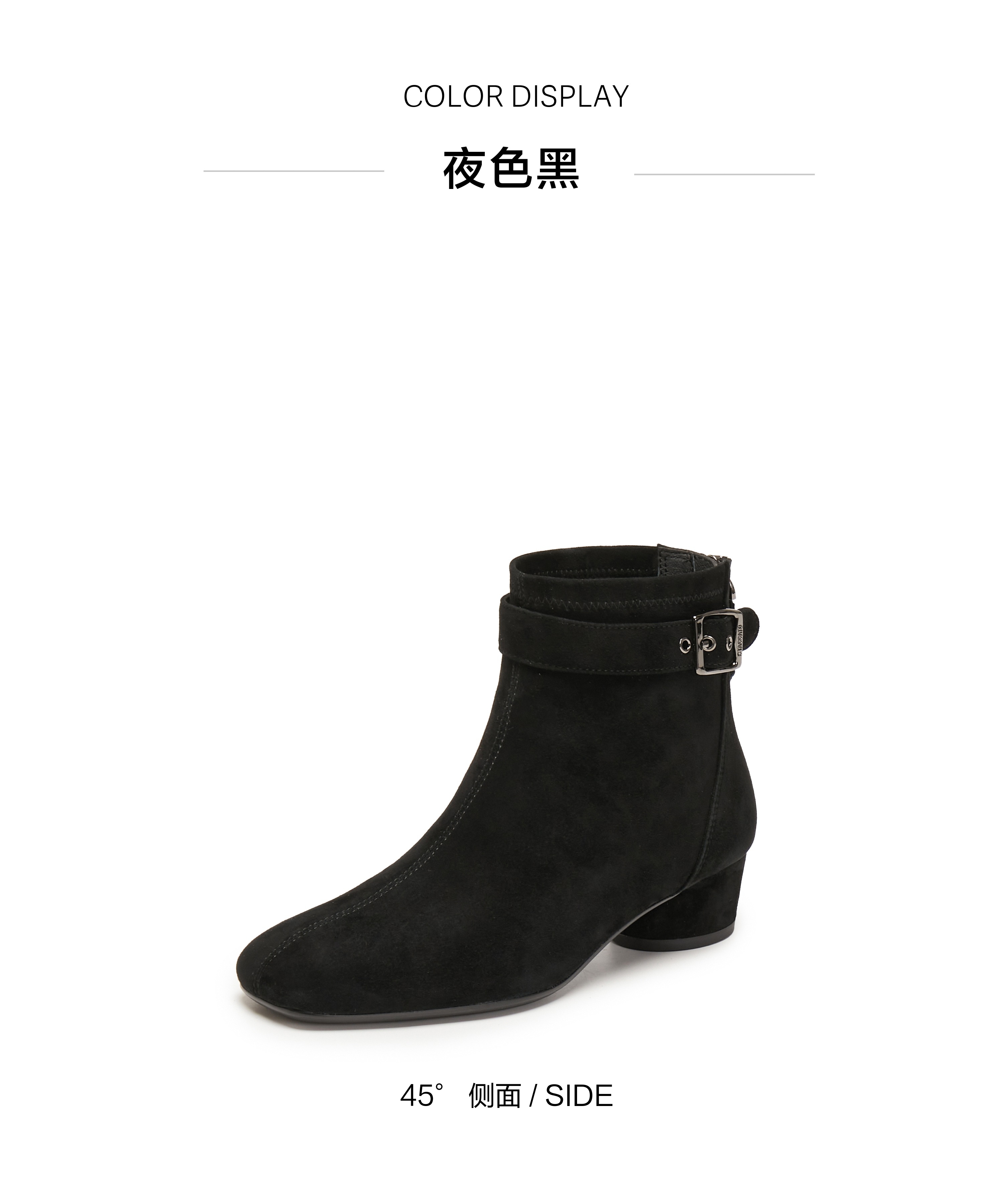 | 鞋头款式:方头 | 鞋面图案:纯色 | 鞋跟形状:圆形跟 | 参考鞋长(女):24CM | 流行元素:绒面 |